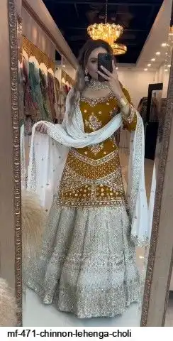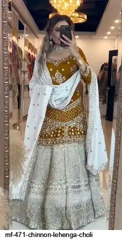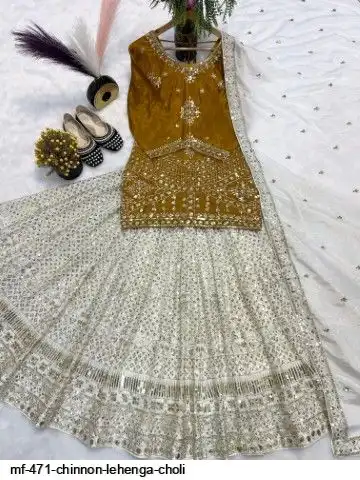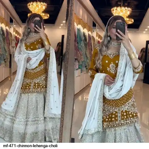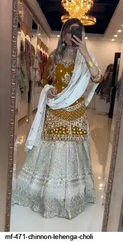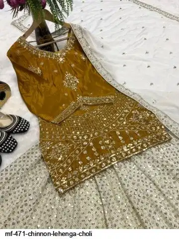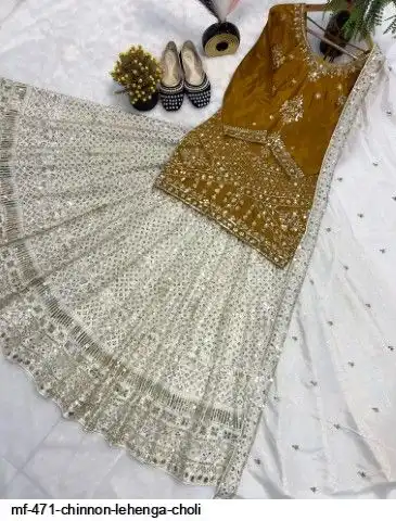 Dupatta Fabric :- Chinnon Silk With Sequence Fancy Less Border Work (dupatta size 2.30 meter)