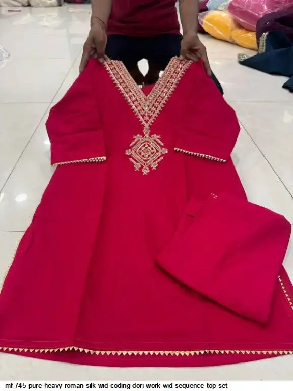 TOP:- PURE HEAVY ROMAN SILK WID CODING DORI WORK WID SEQUENCE