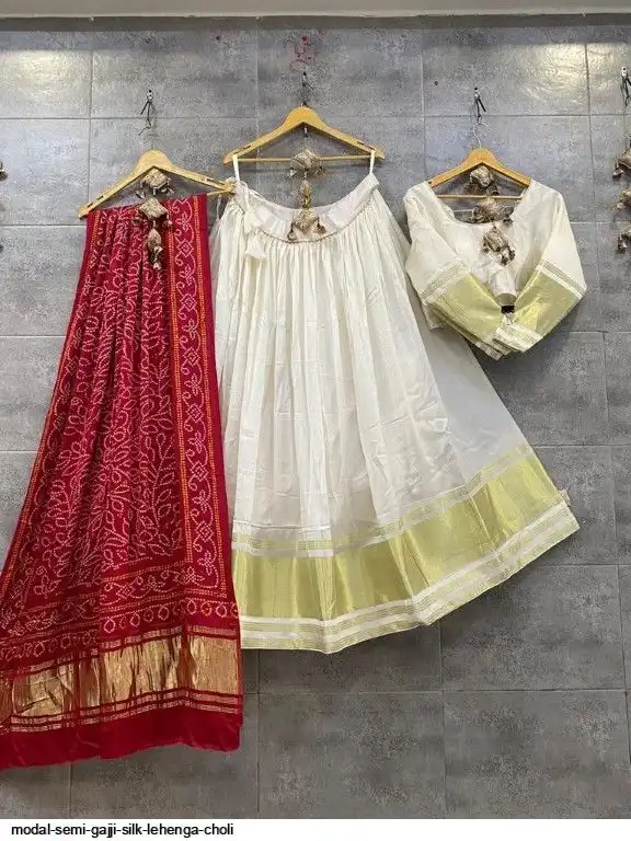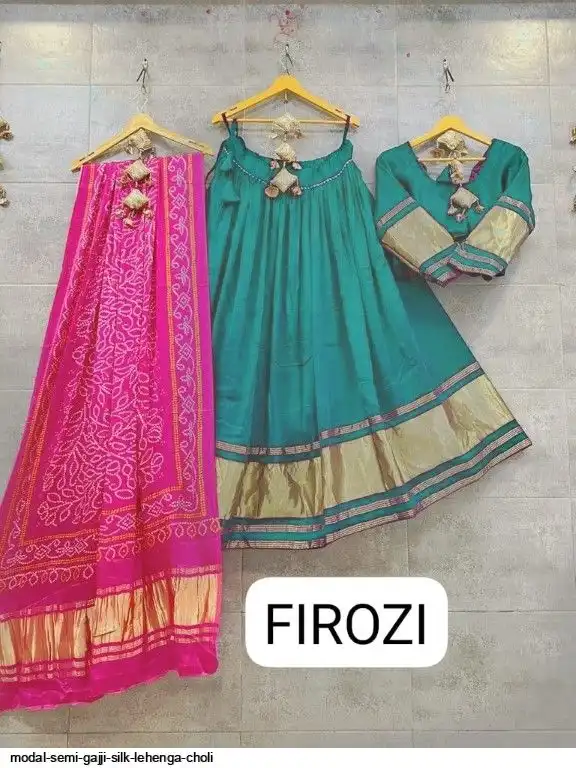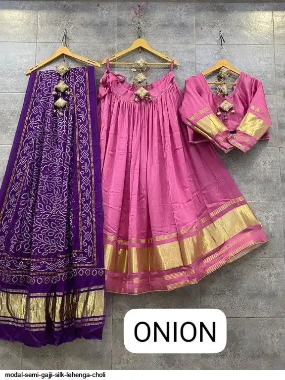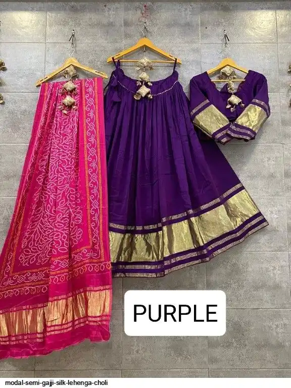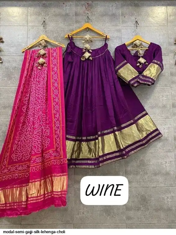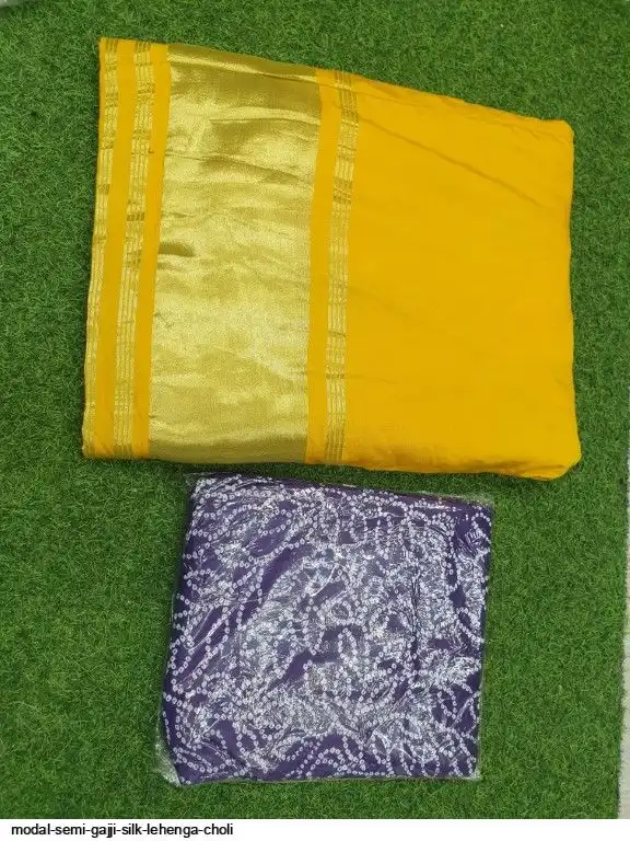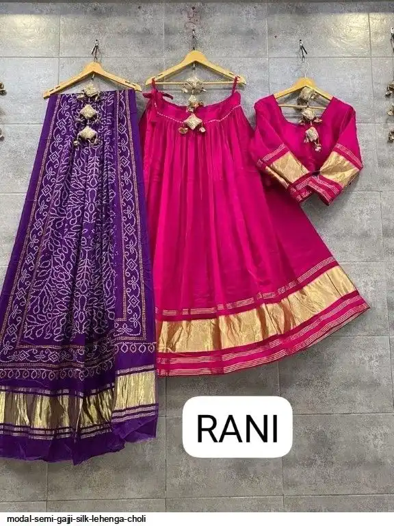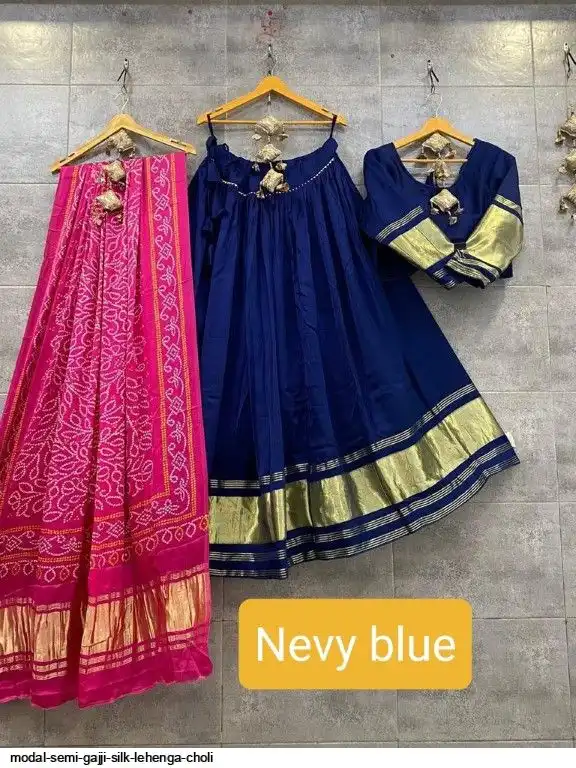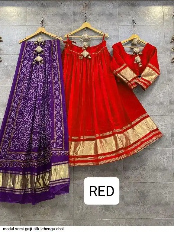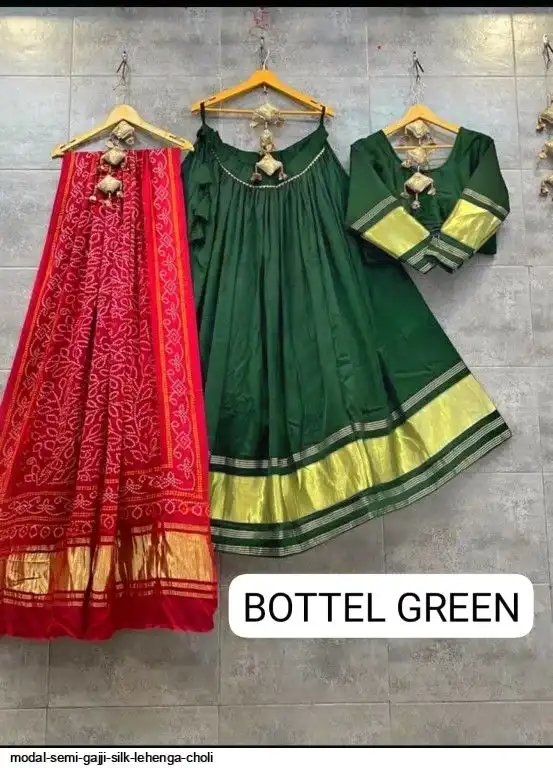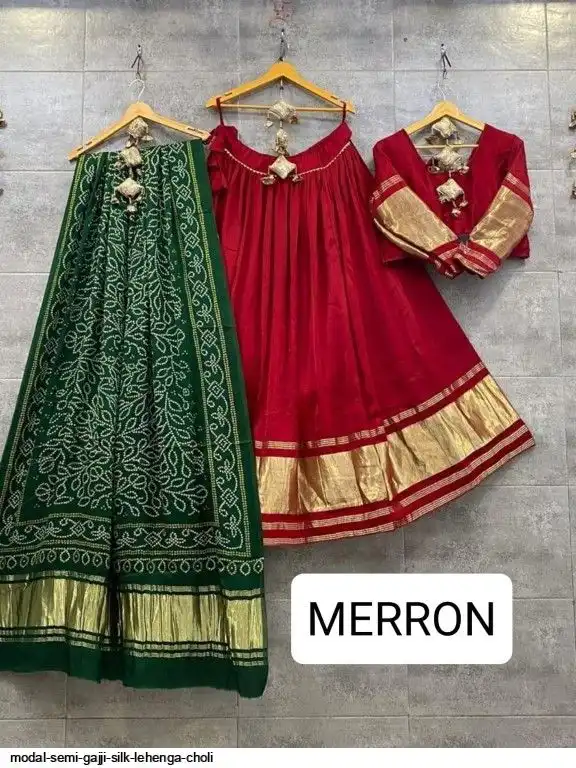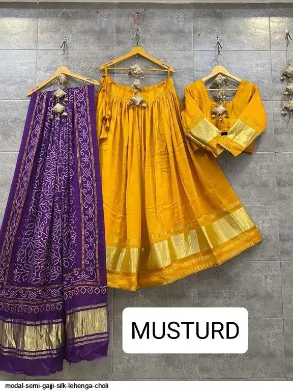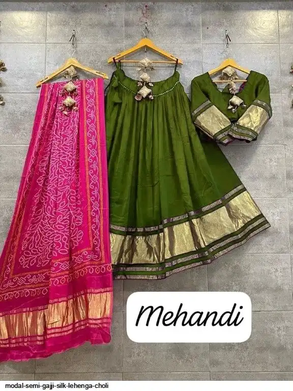 *Lehenga Fabric * : Modal Semi Gajji silk _ with lagadi patta, Full stich, Size - upto 44, length - 44