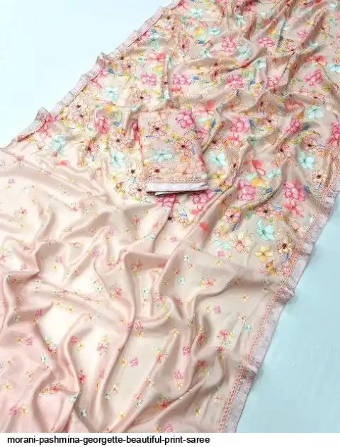 Fabric - Pashmina Georgette Fabric Beautiful Digital Print And Attached Embroidery Weaving Border With Flower Digital Printed Blouse