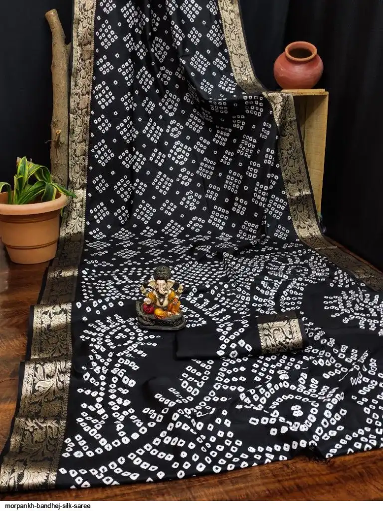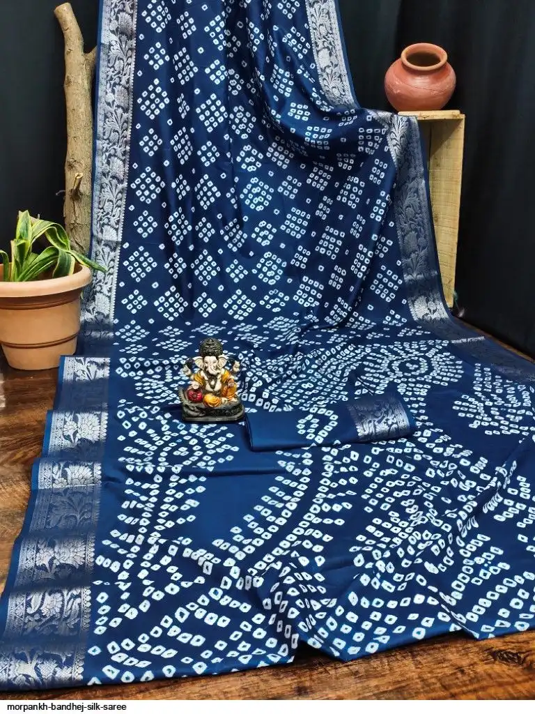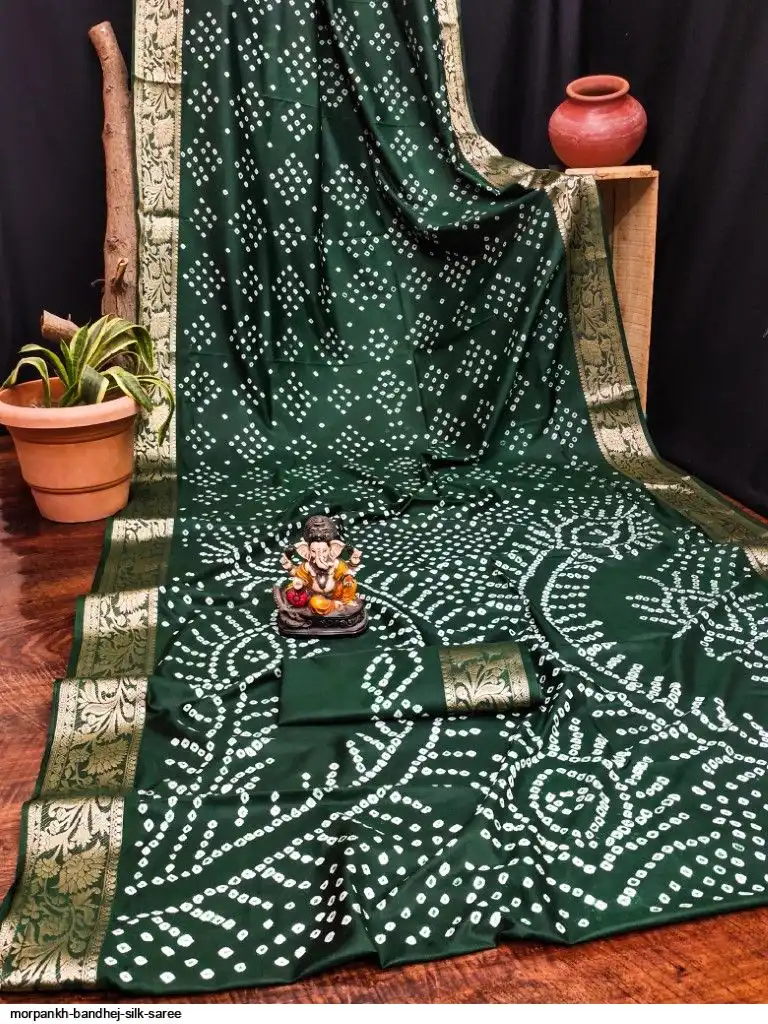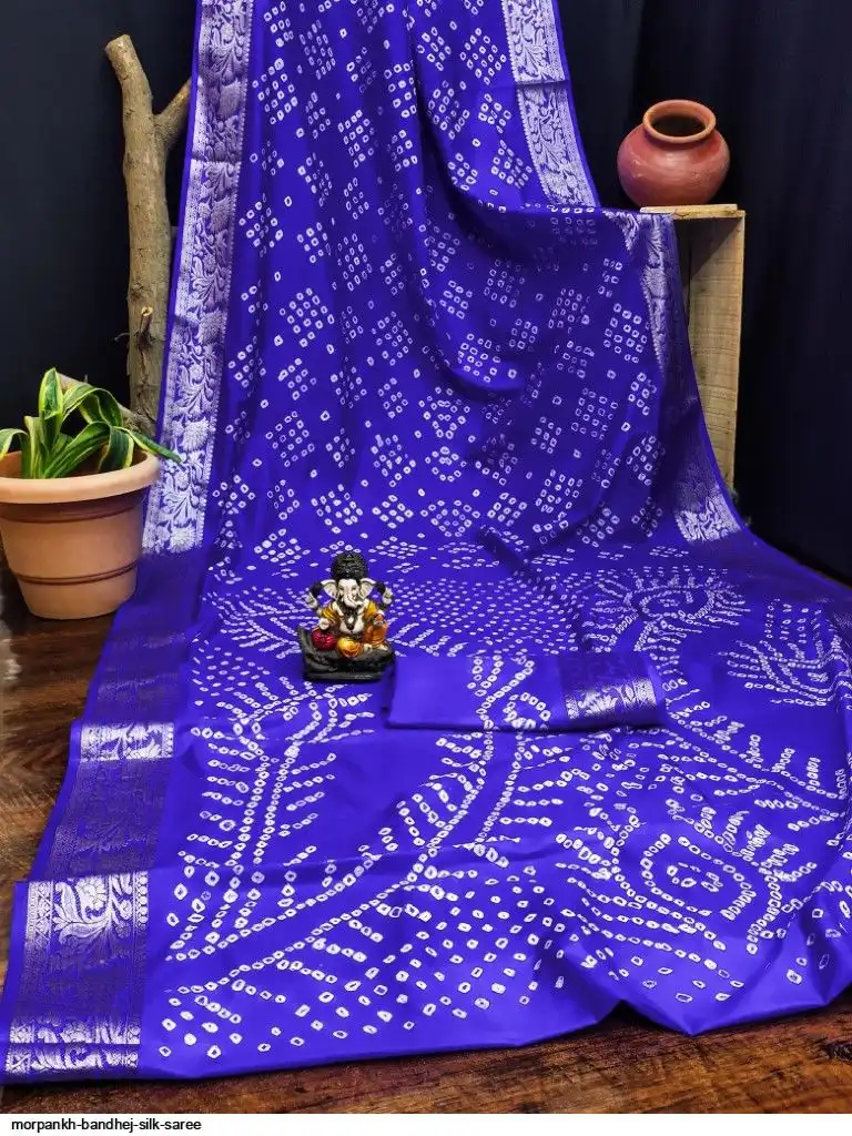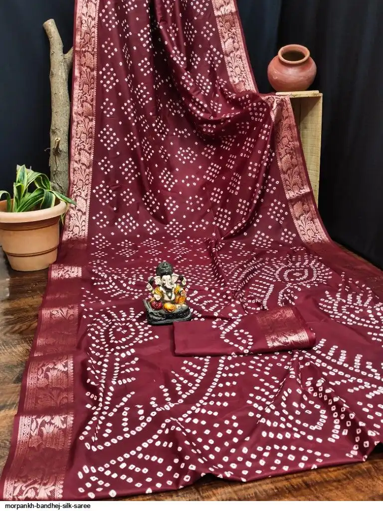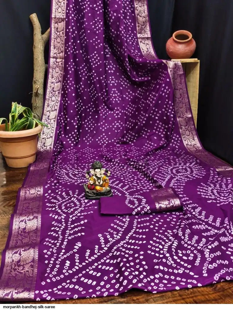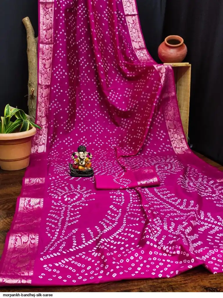 Pure Bandhej Silk Saree Made By Original Bandhej With Zari Weaving Border With Designer Morpankh Bandhej Rich Pallu Saree With Beautiful Bandhej Design
