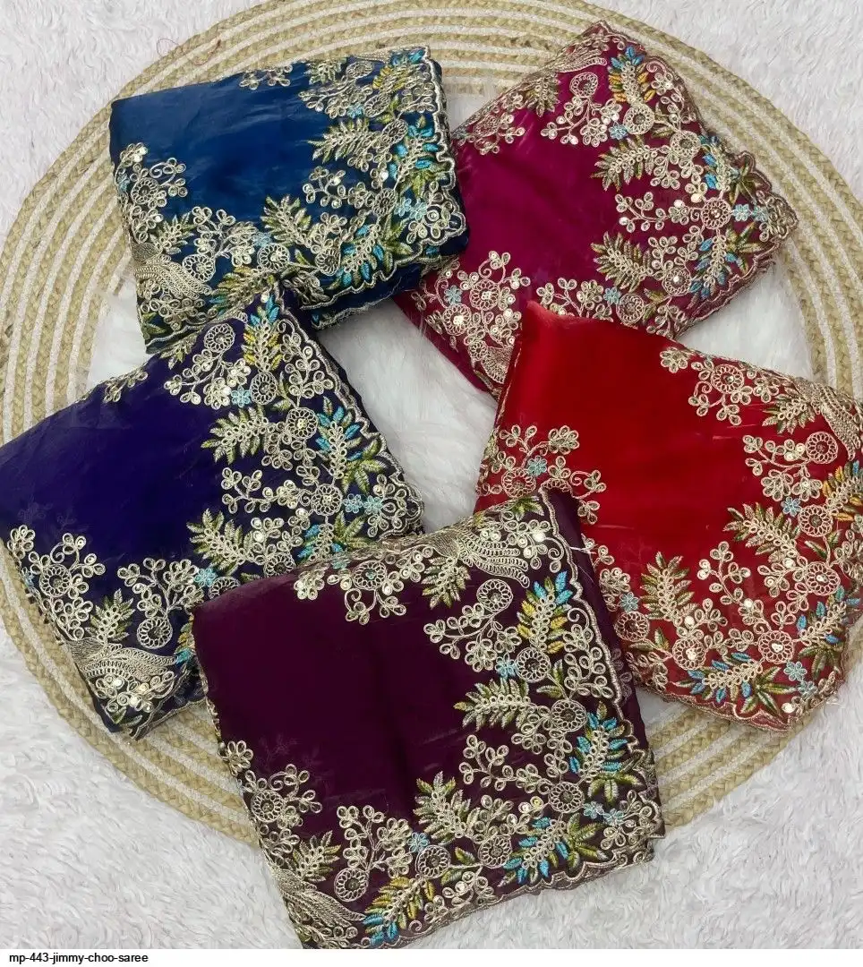 Saree Fabric : Pure Soft Jimmy Cho with Heavy Embroidery Multi Treads , Coding & Sequins Work & Fancy Cutwork In saree
