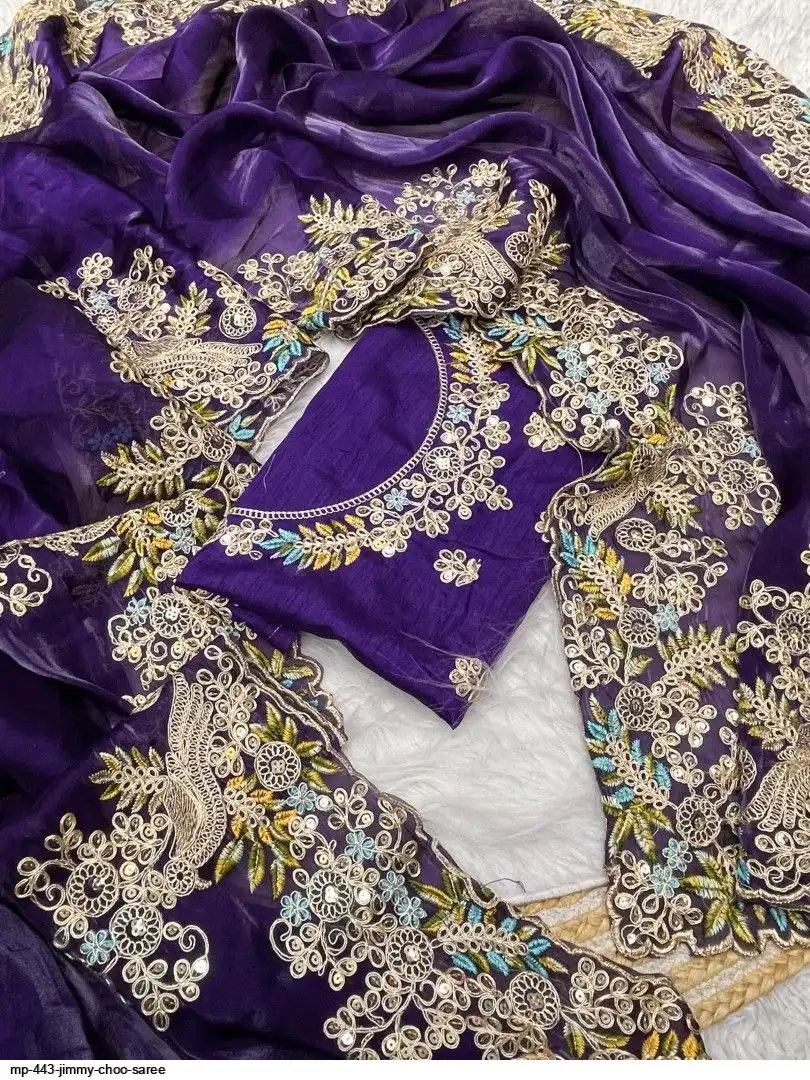 Saree Fabric : Pure Soft Jimmy Cho with Heavy Embroidery Multi Treads , Coding & Sequins Work & Fancy Cutwork In saree