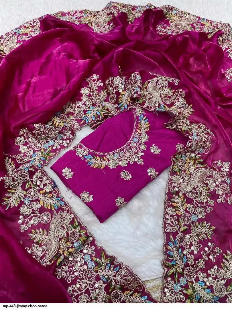 Saree Fabric : Pure Soft Jimmy Cho with Heavy Embroidery Multi Treads , Coding & Sequins Work & Fancy Cutwork In saree