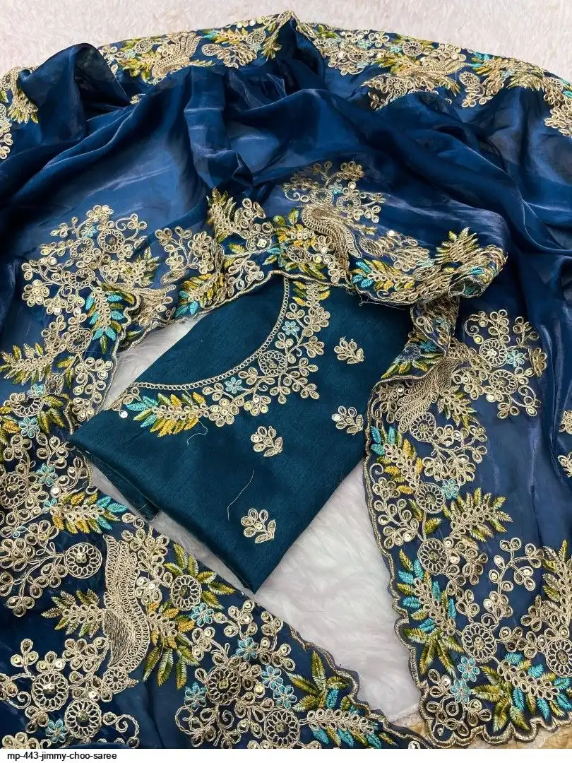 Saree Fabric : Pure Soft Jimmy Cho with Heavy Embroidery Multi Treads , Coding & Sequins Work & Fancy Cutwork In saree
