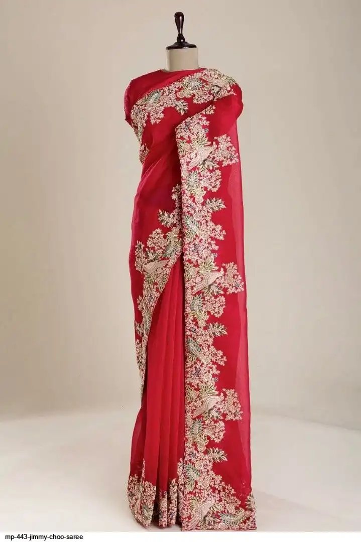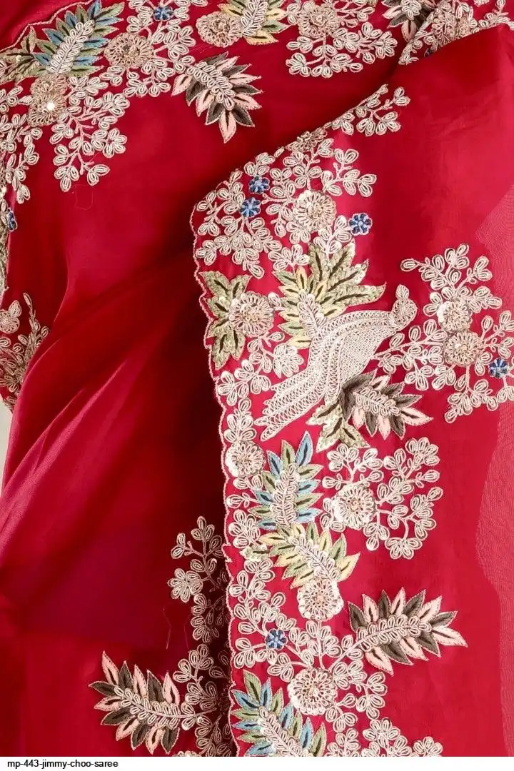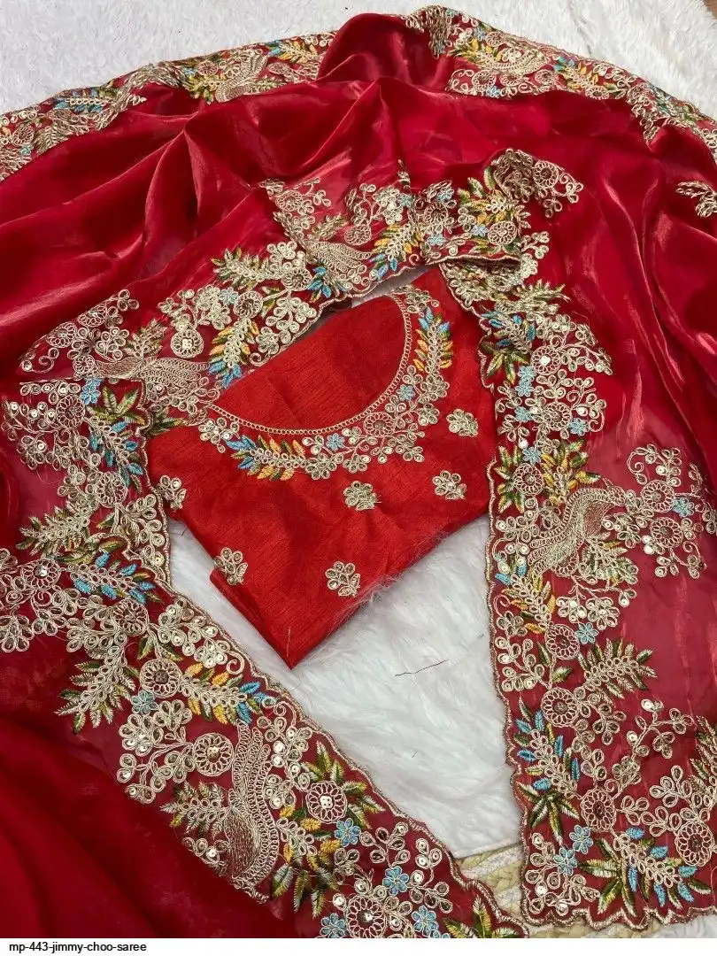 Saree Fabric : Pure Soft Jimmy Cho with Heavy Embroidery Multi Treads , Coding & Sequins Work & Fancy Cutwork In saree