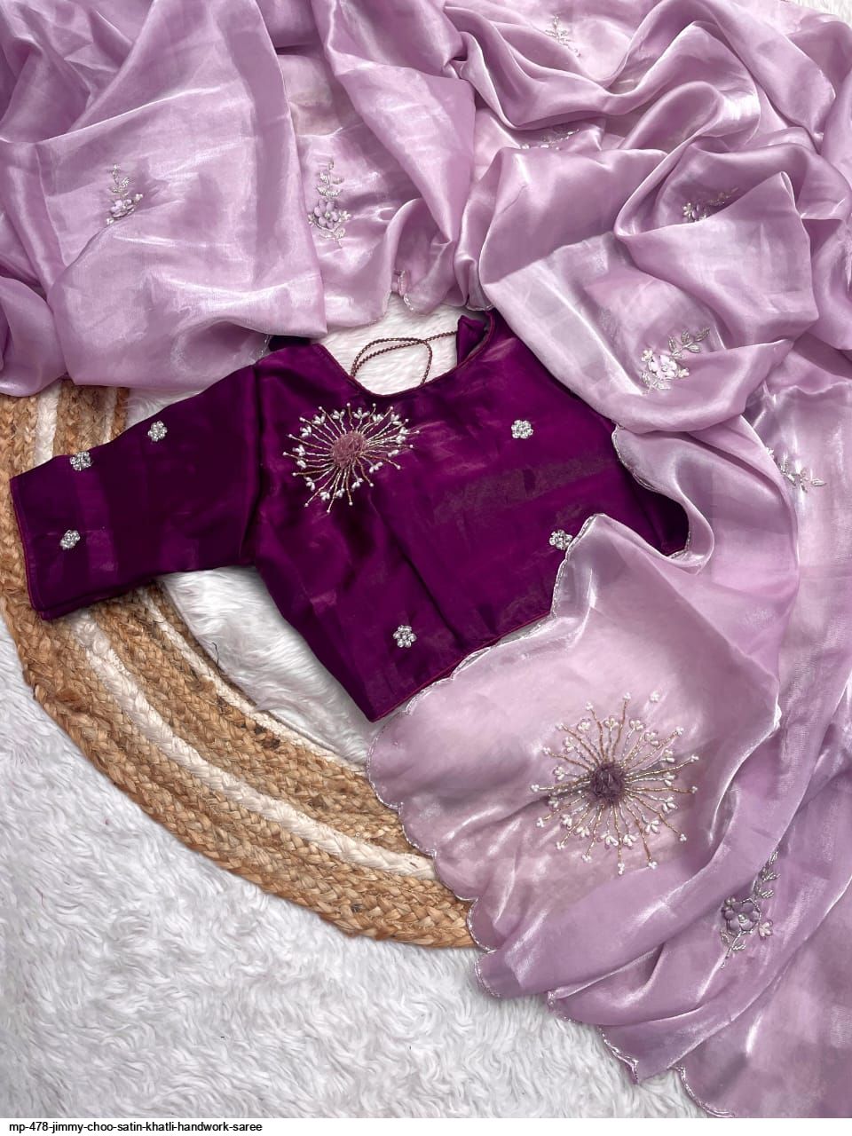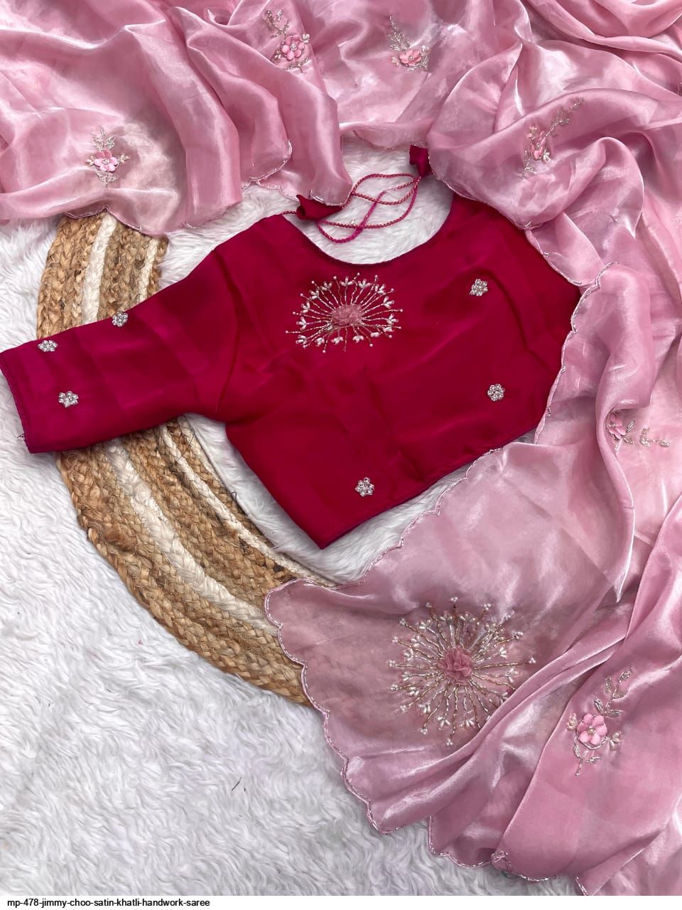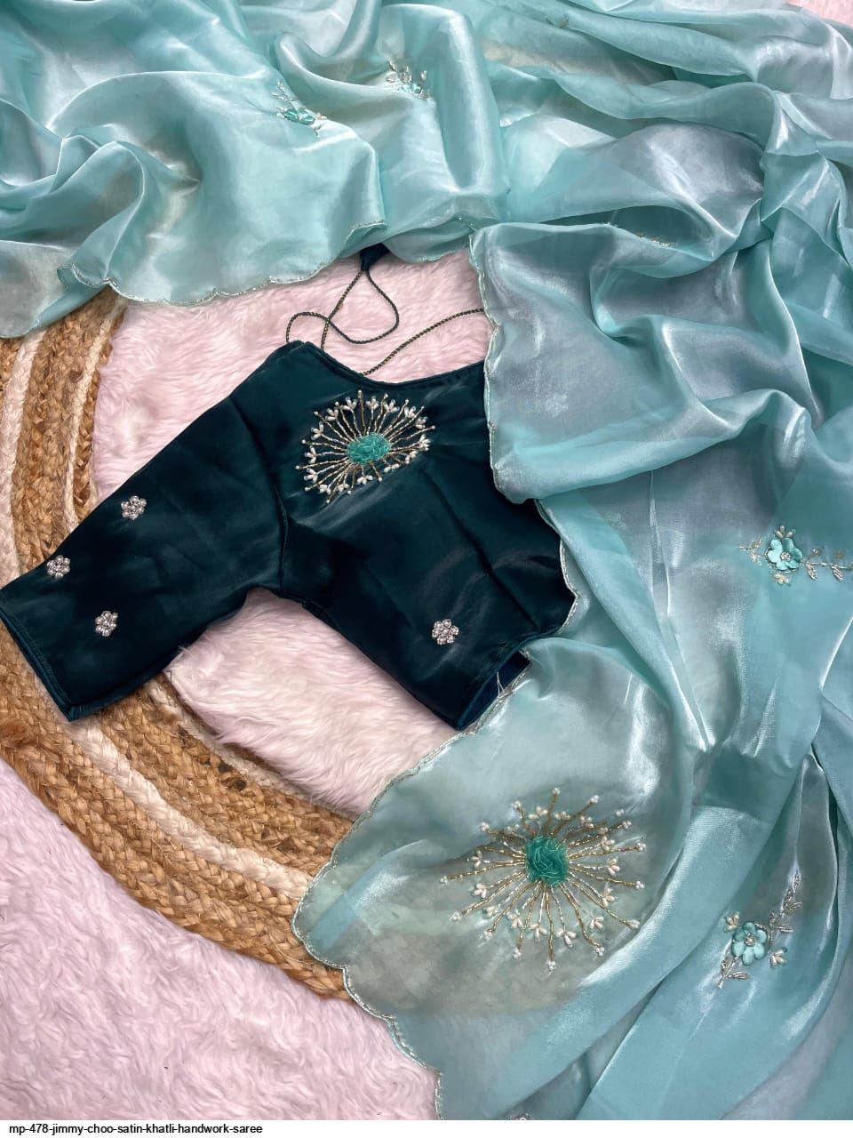 Blouse : Jimmy Choo satin Fabric With khatli Work ( Stitch blouse)
