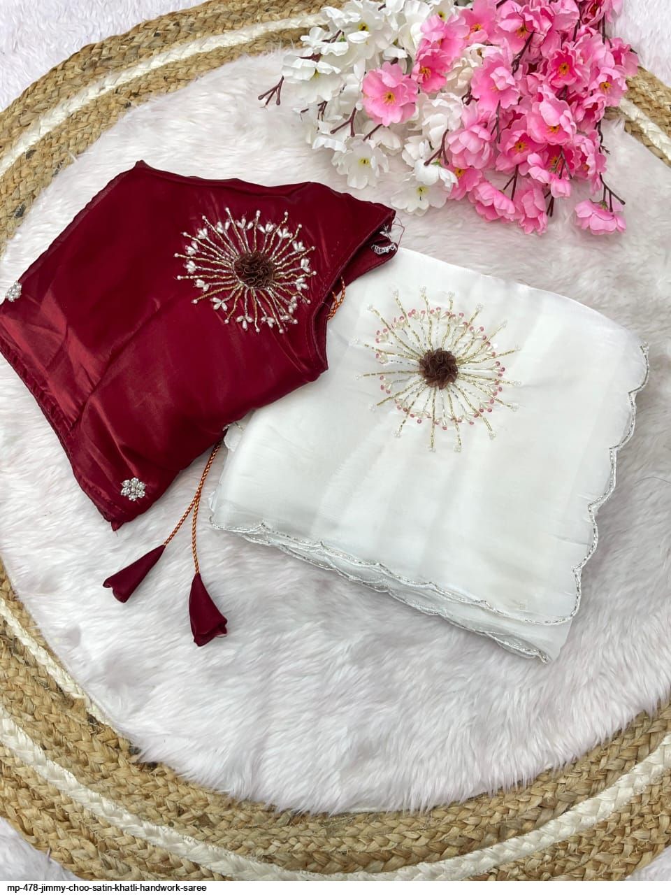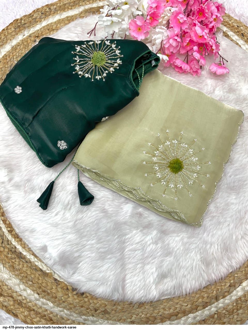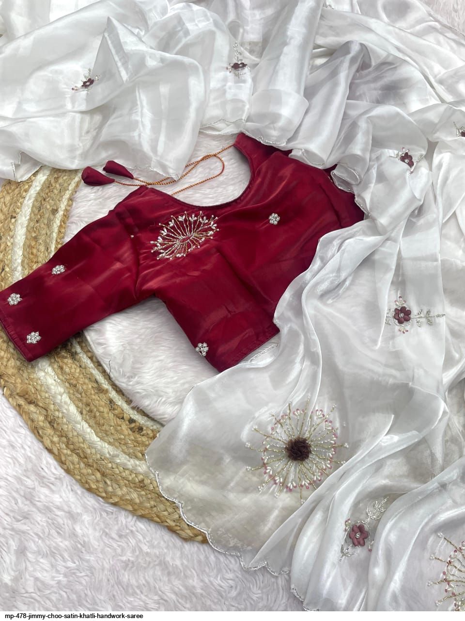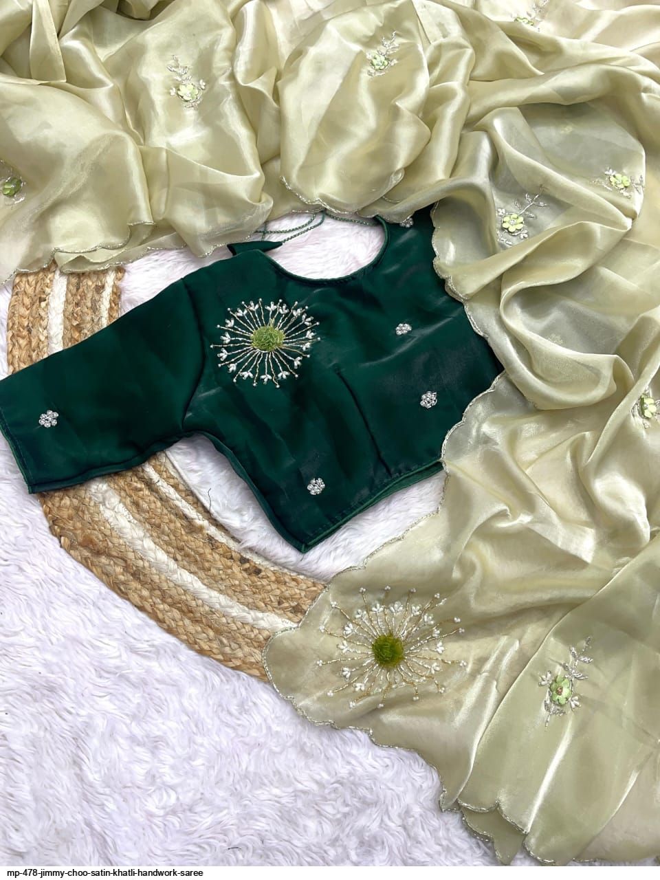 Blouse : Jimmy Choo satin Fabric With khatli Work ( Stitch blouse)