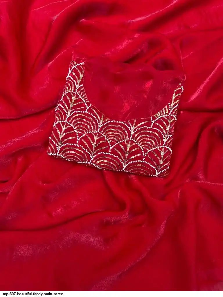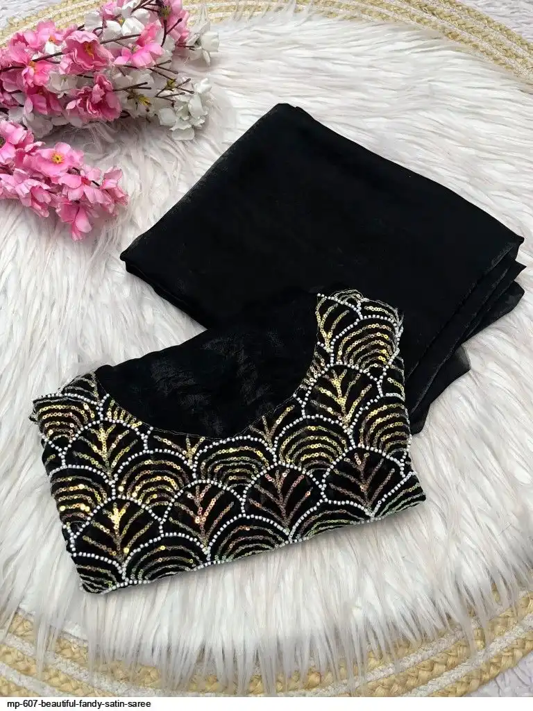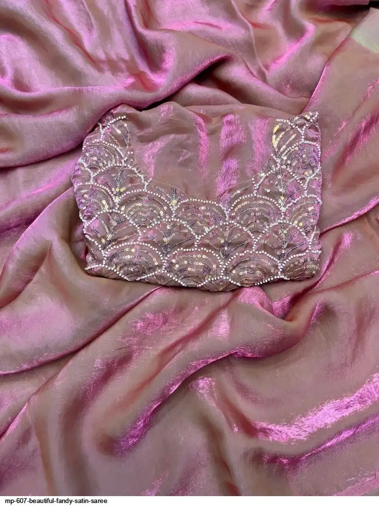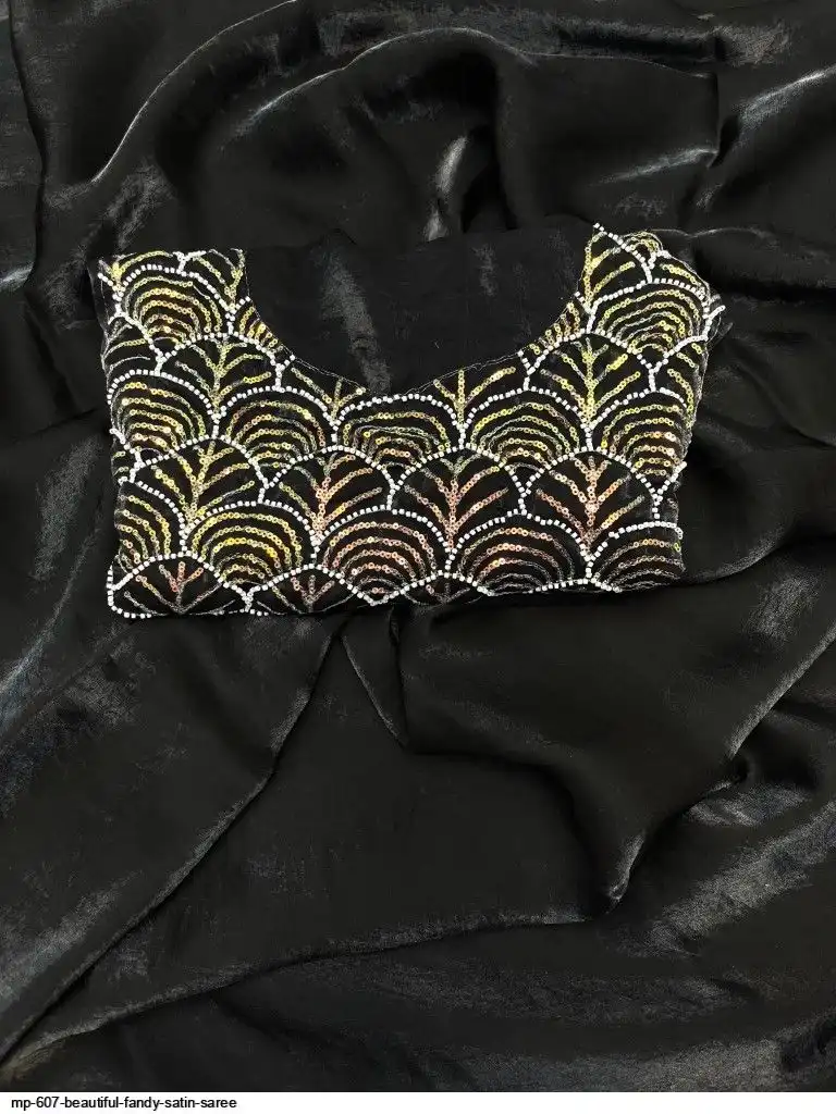 Blouse : Fandy sattin fabric with Designer Brits Cut dena Work With Sequence Work