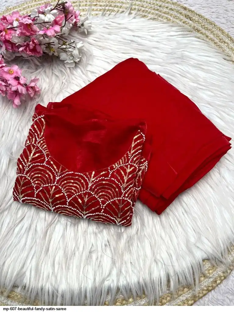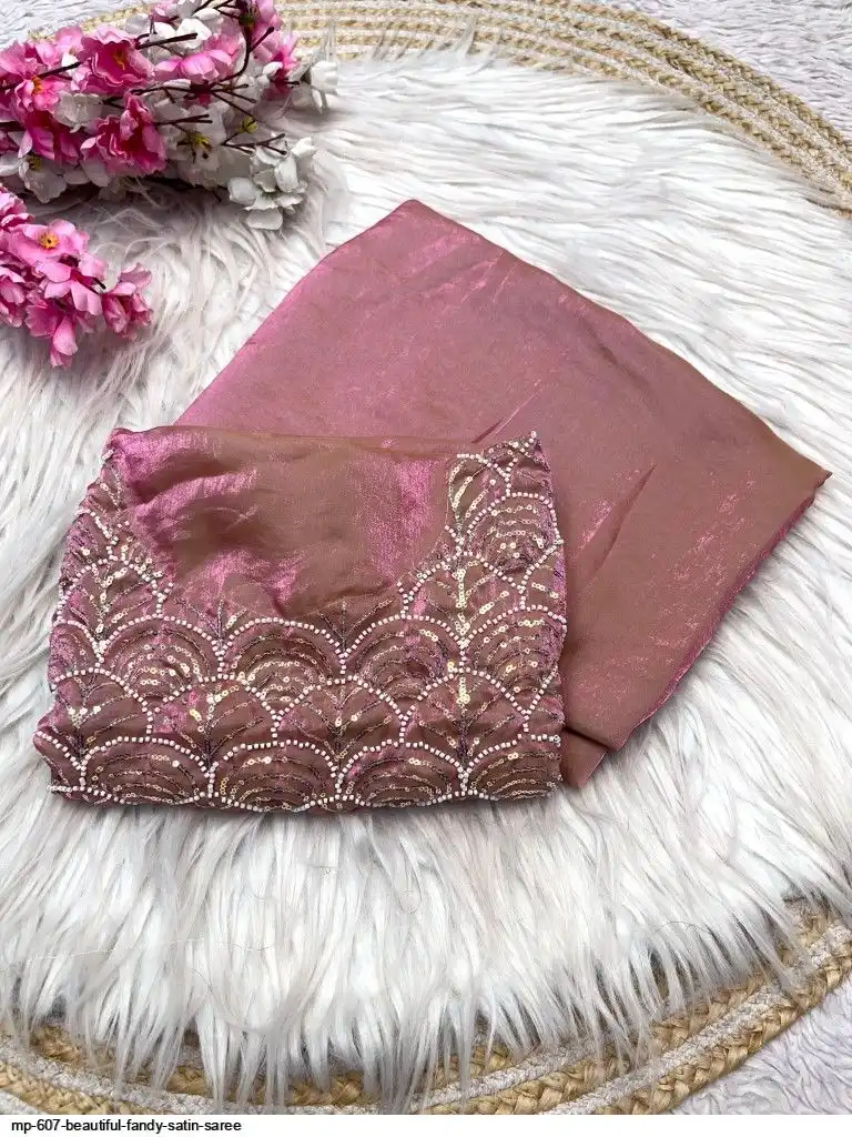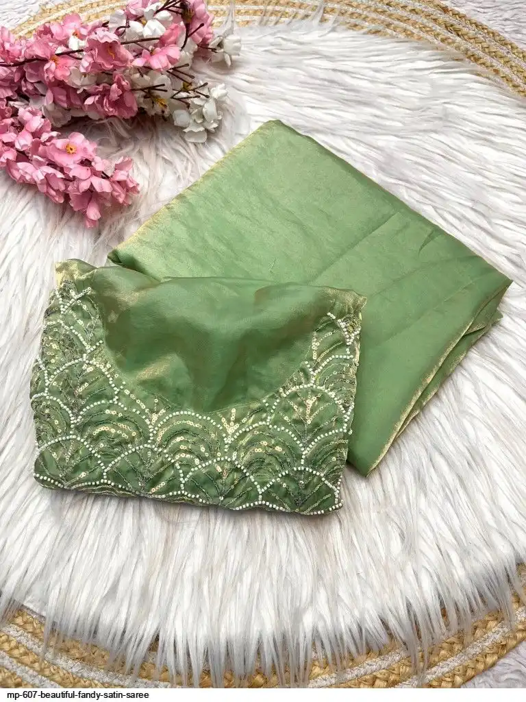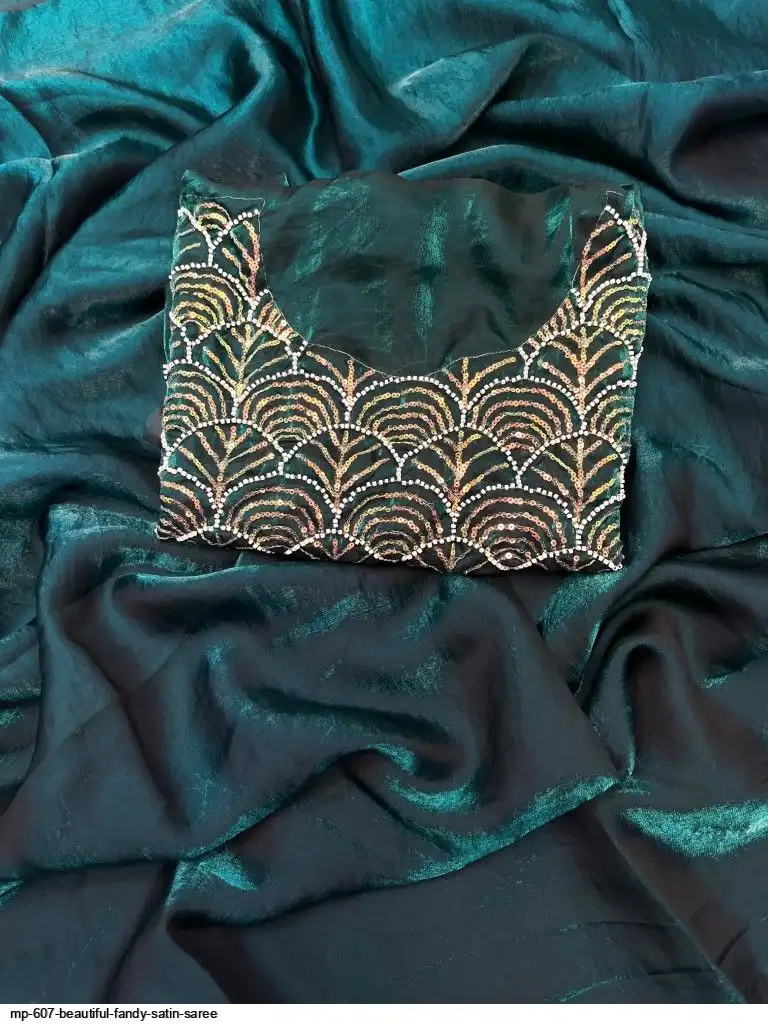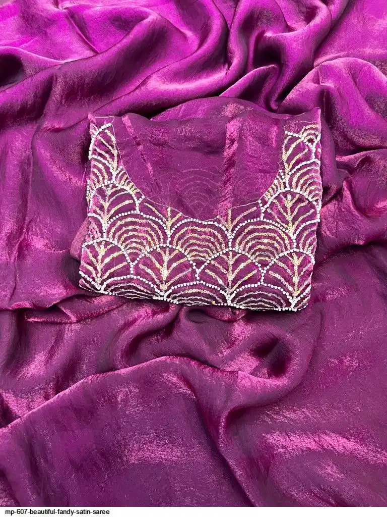Blouse : Fandy sattin fabric with Designer Brits Cut dena Work With Sequence Work