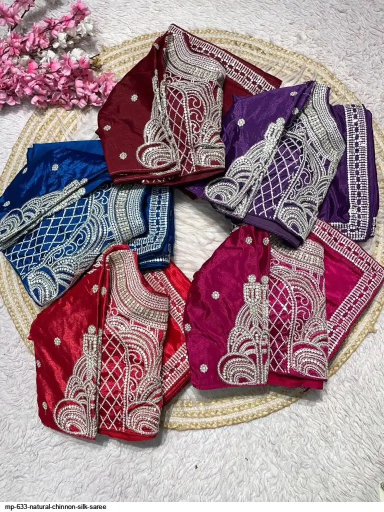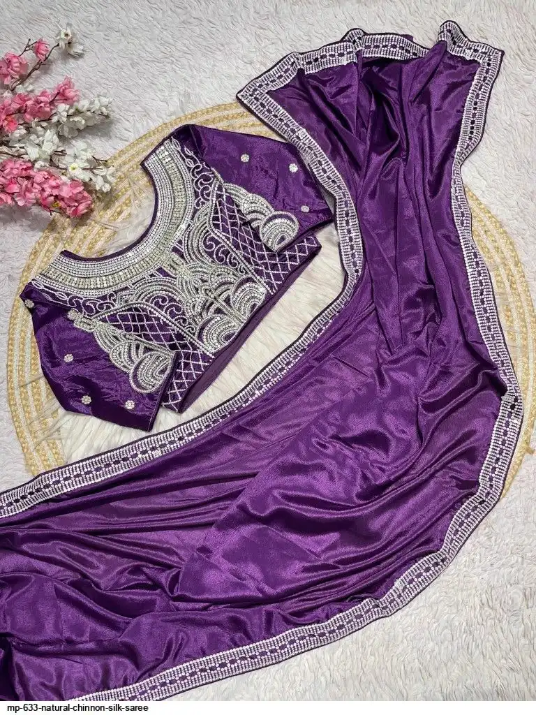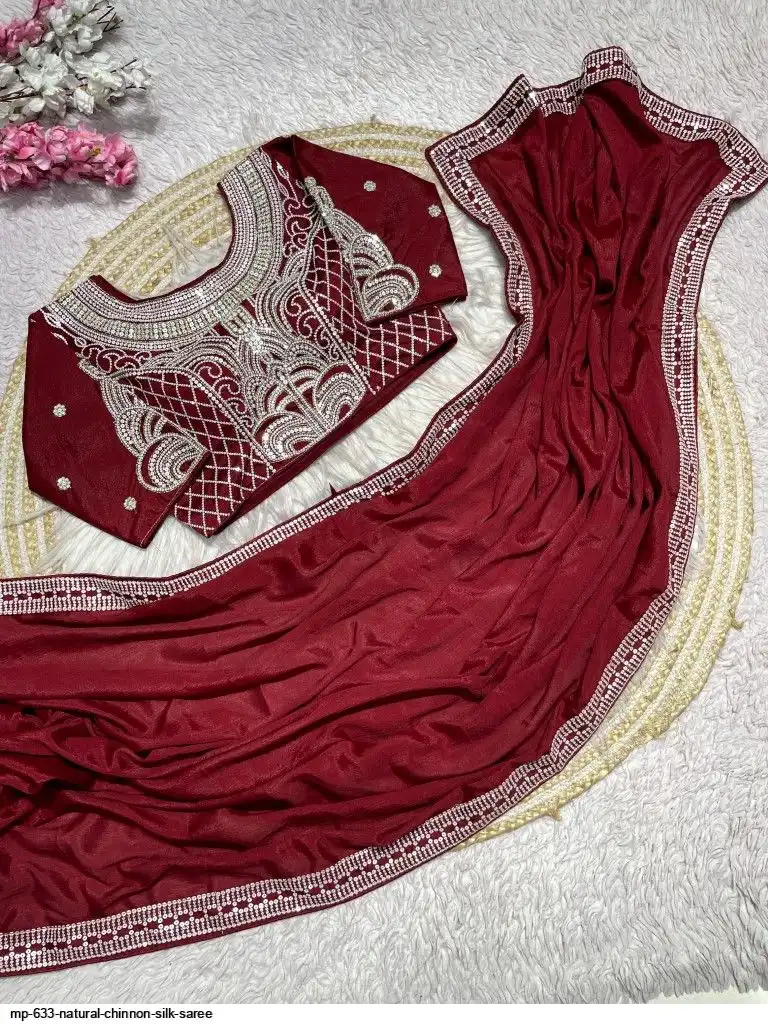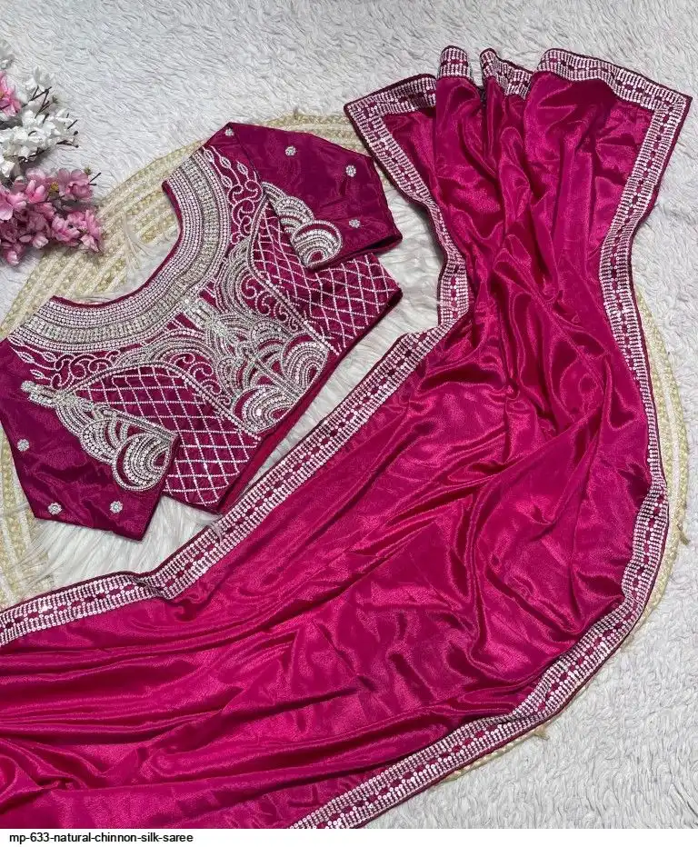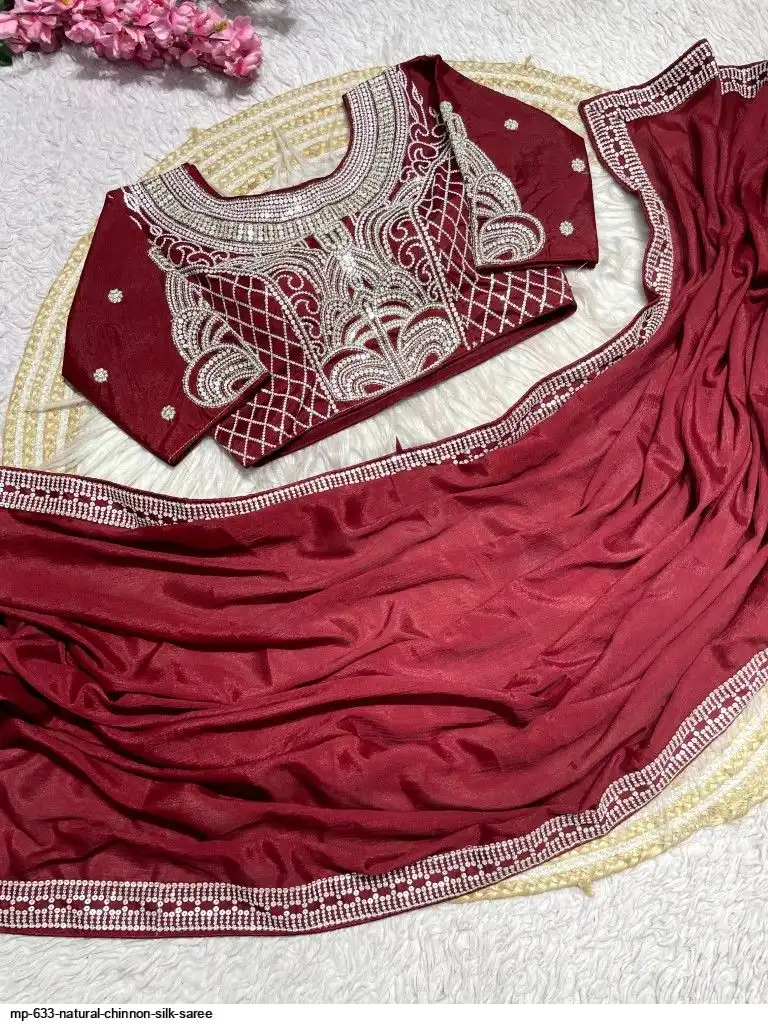 Pure NATURAL Chinon silk saree