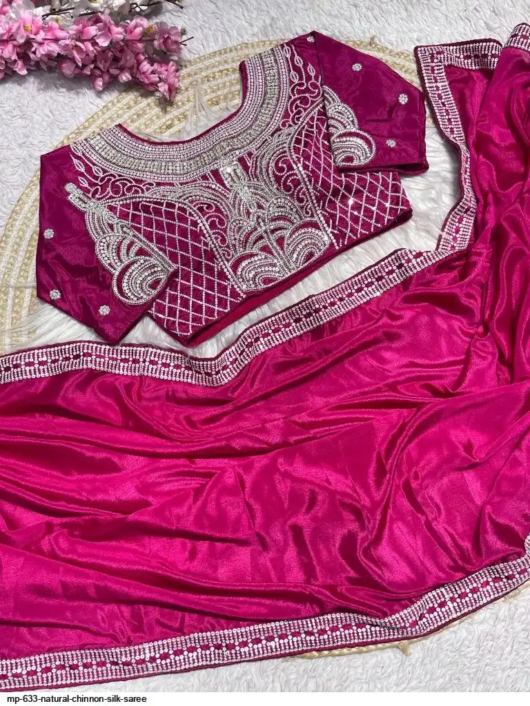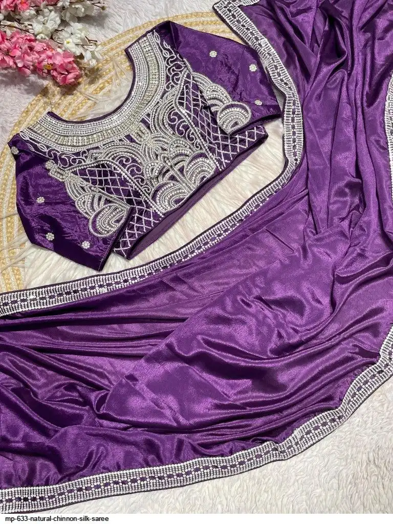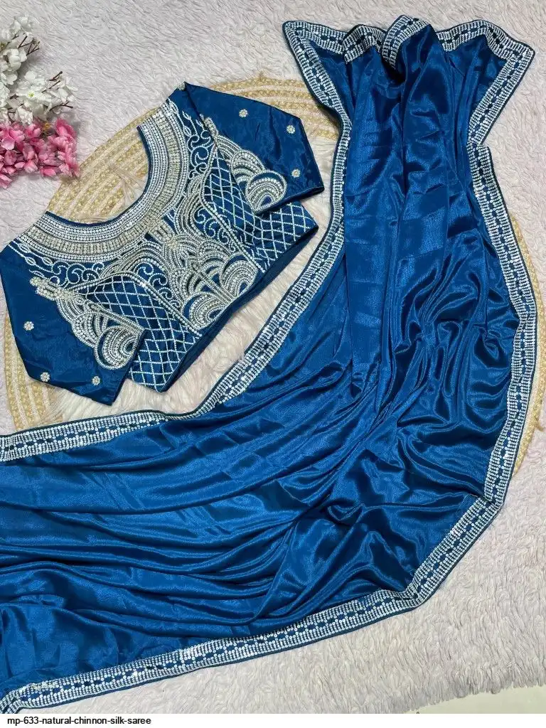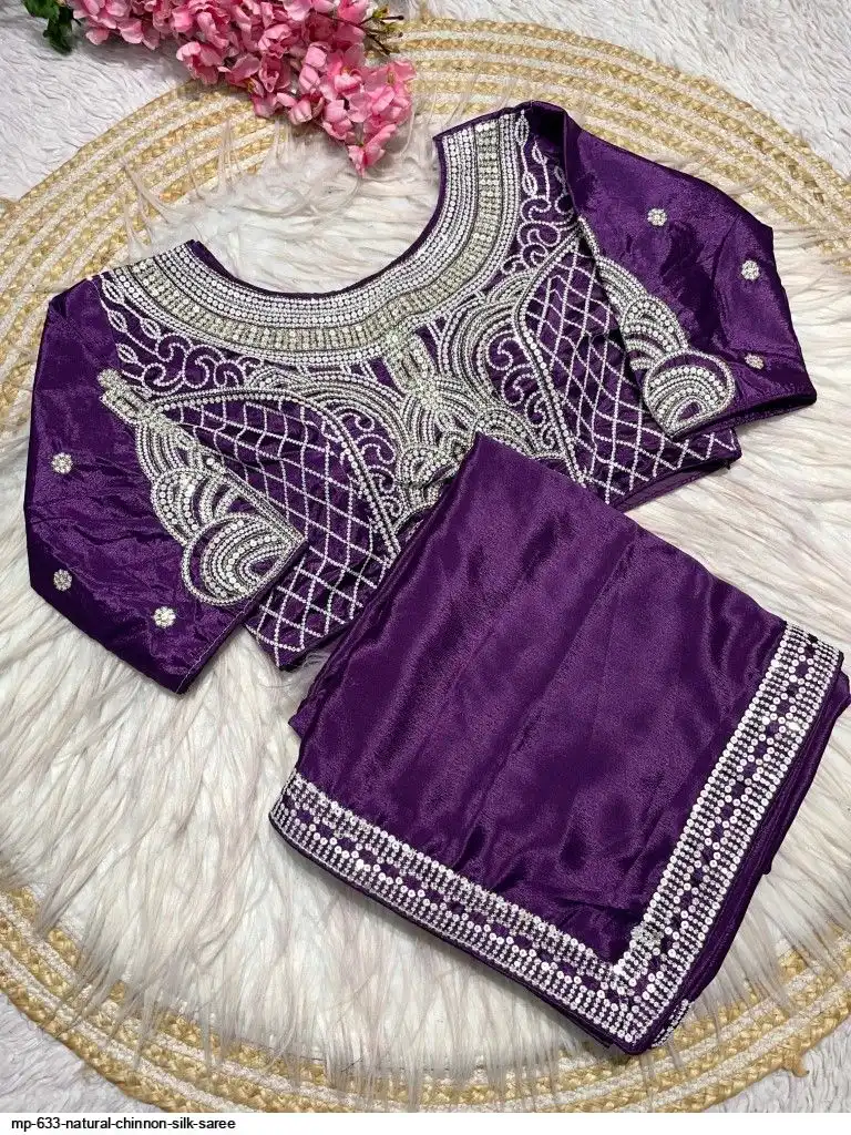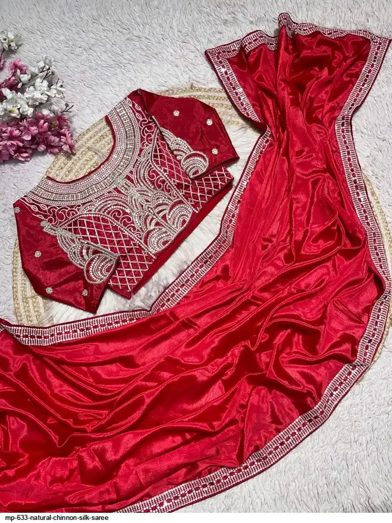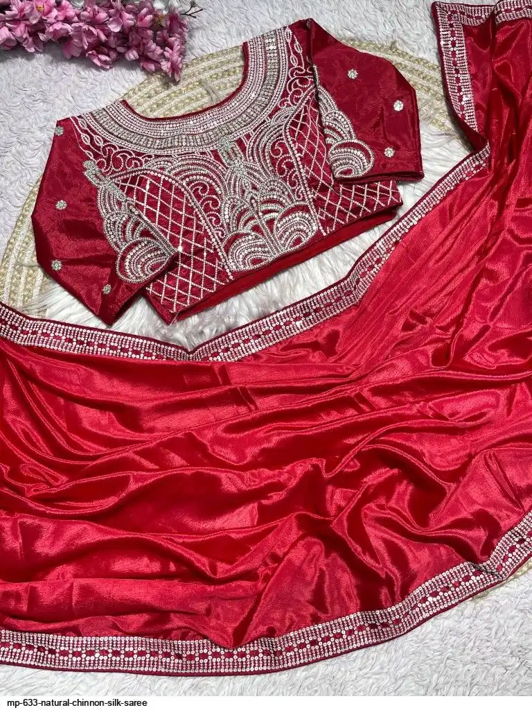 Pure NATURAL Chinon silk saree