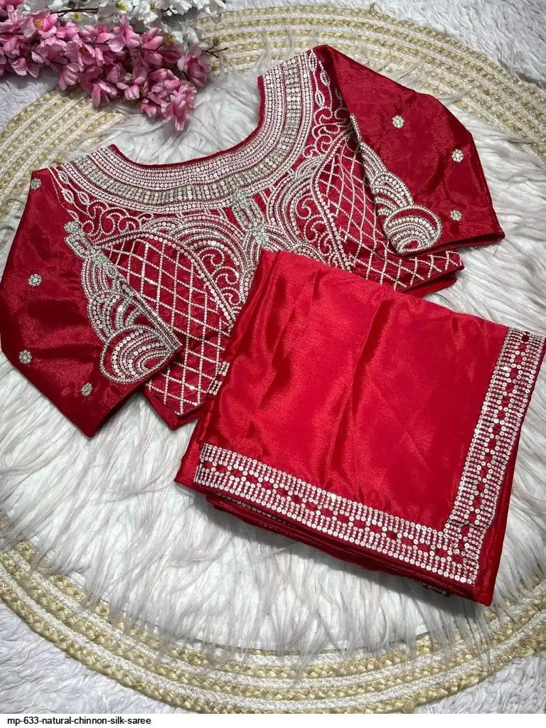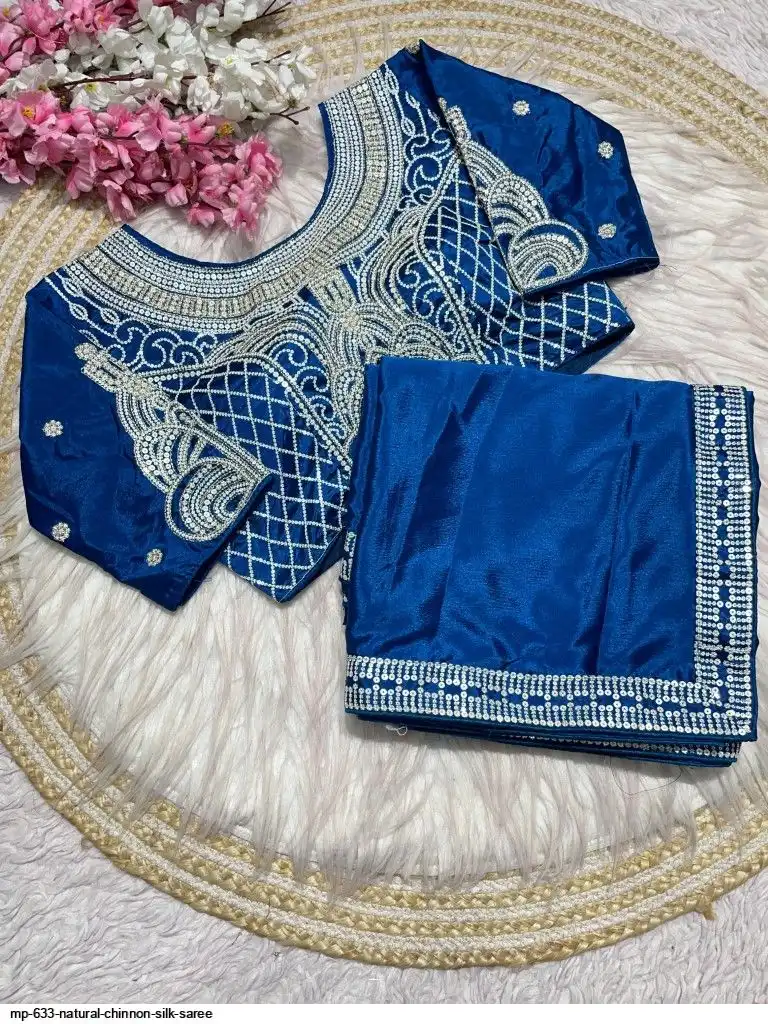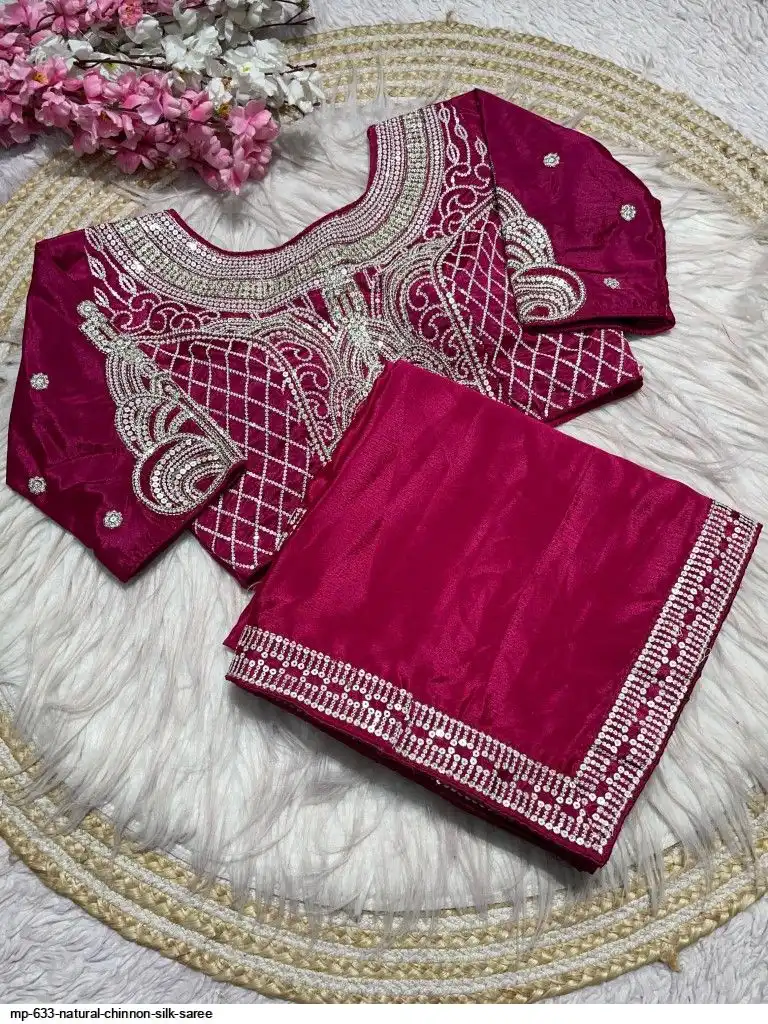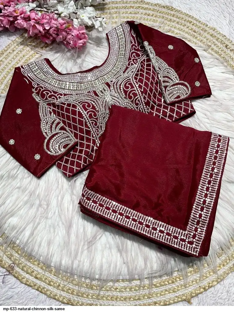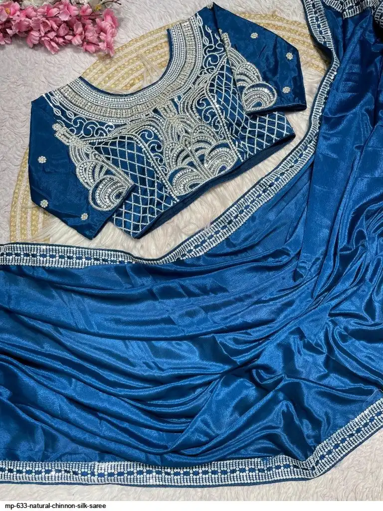 Pure NATURAL Chinon silk saree