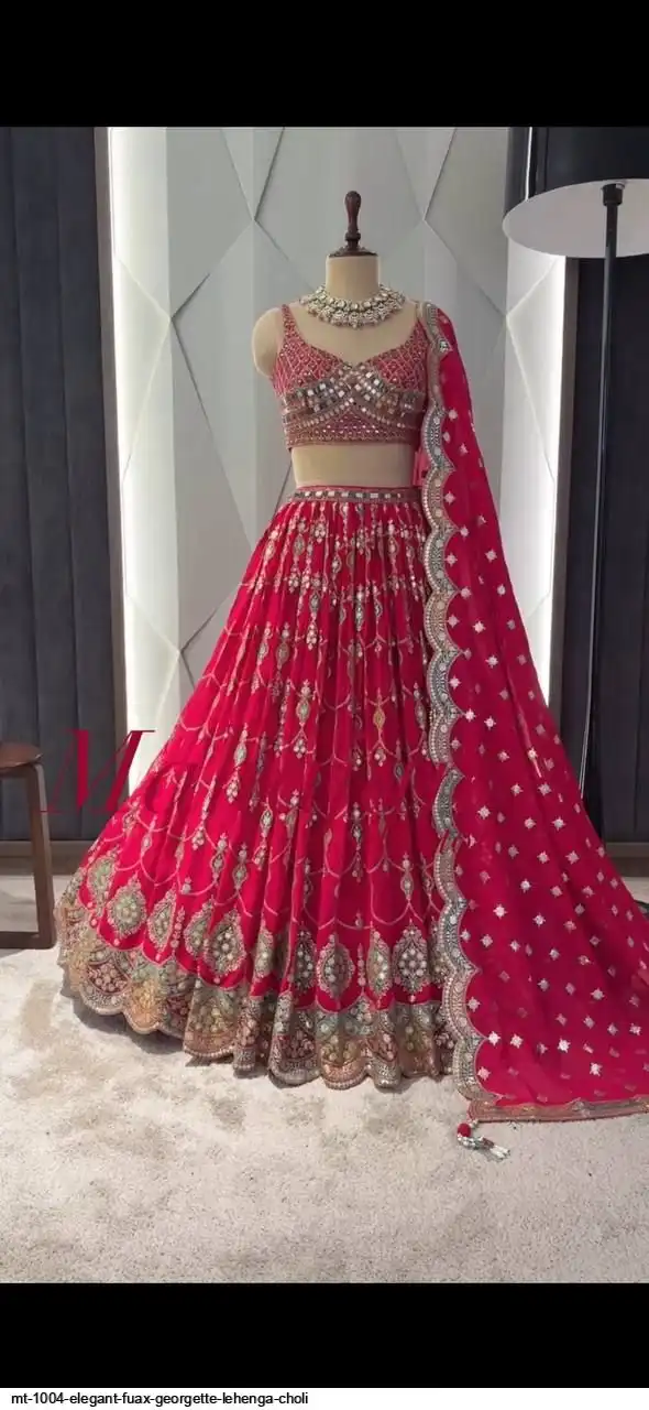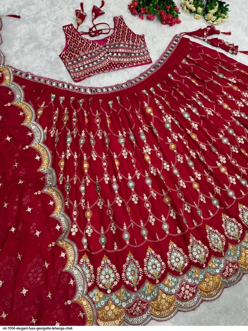 *BRIDAL WEAR HEAVY FUAX GEORGETTE EMBROIDERED SEQUENCE WITH REAL MIRROR WORK LEHENGAS CHOLI WITH DUPATTA*