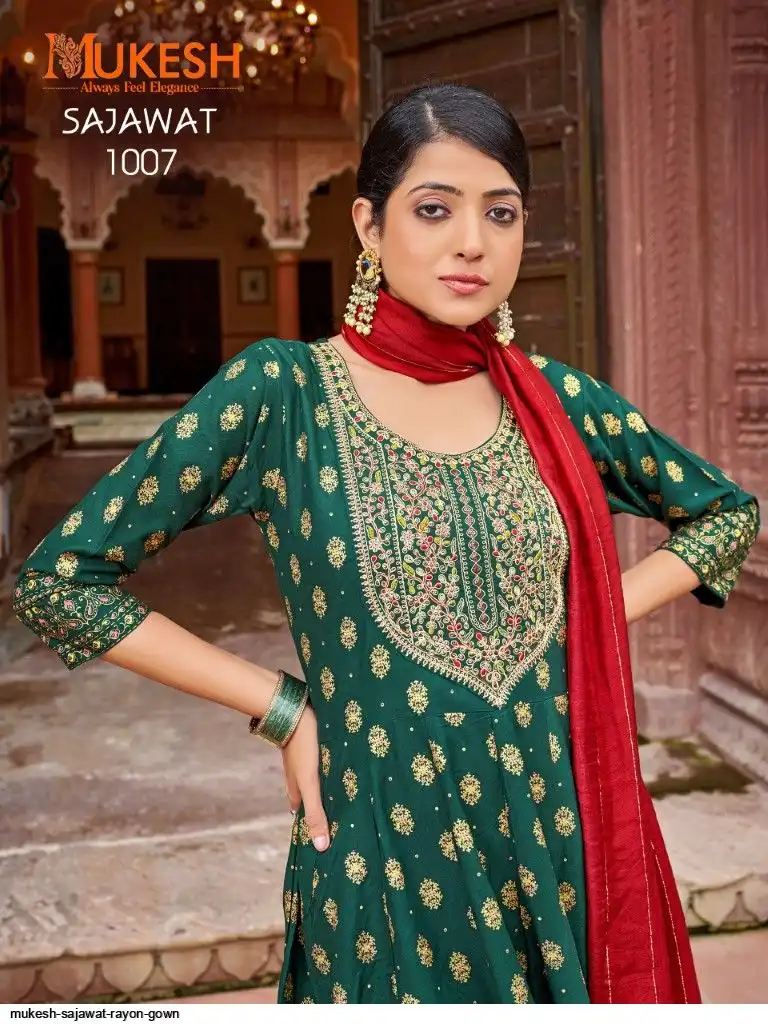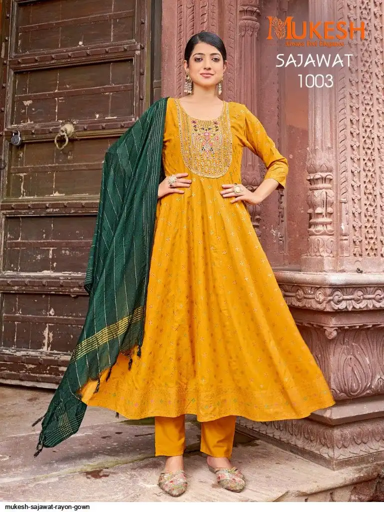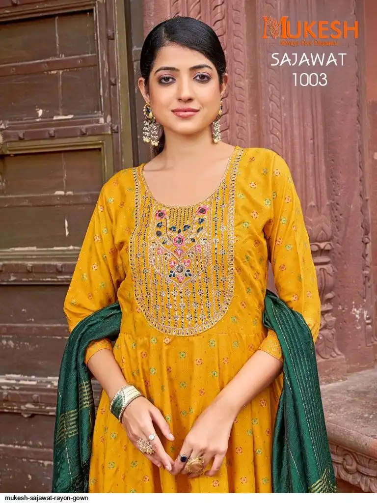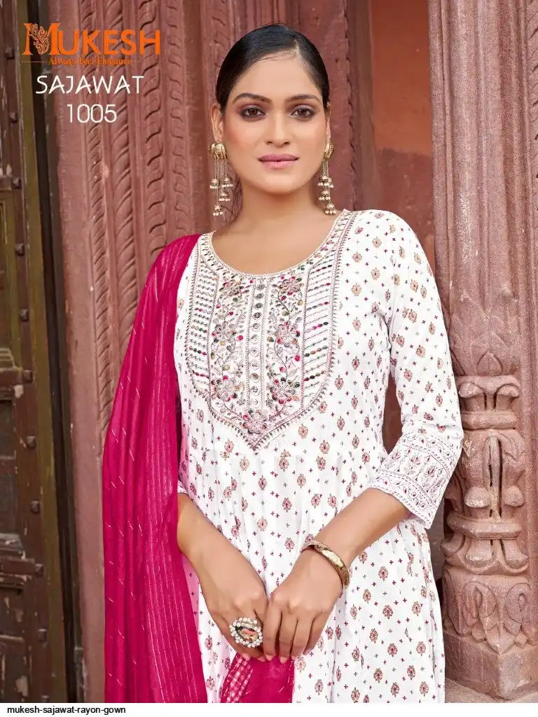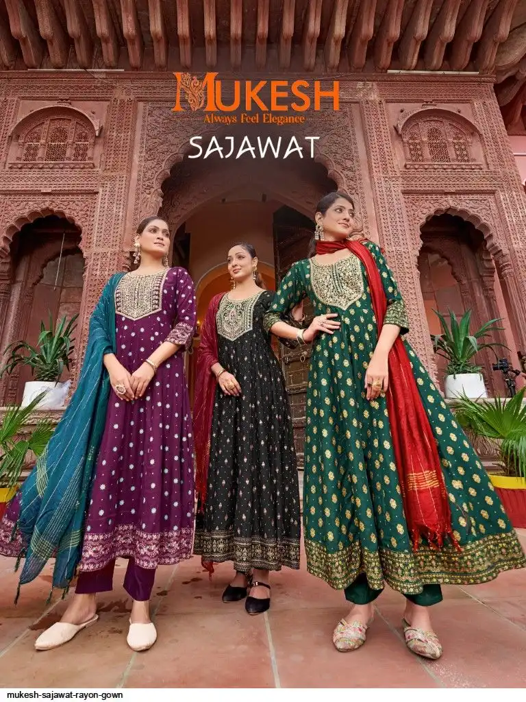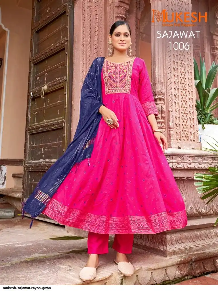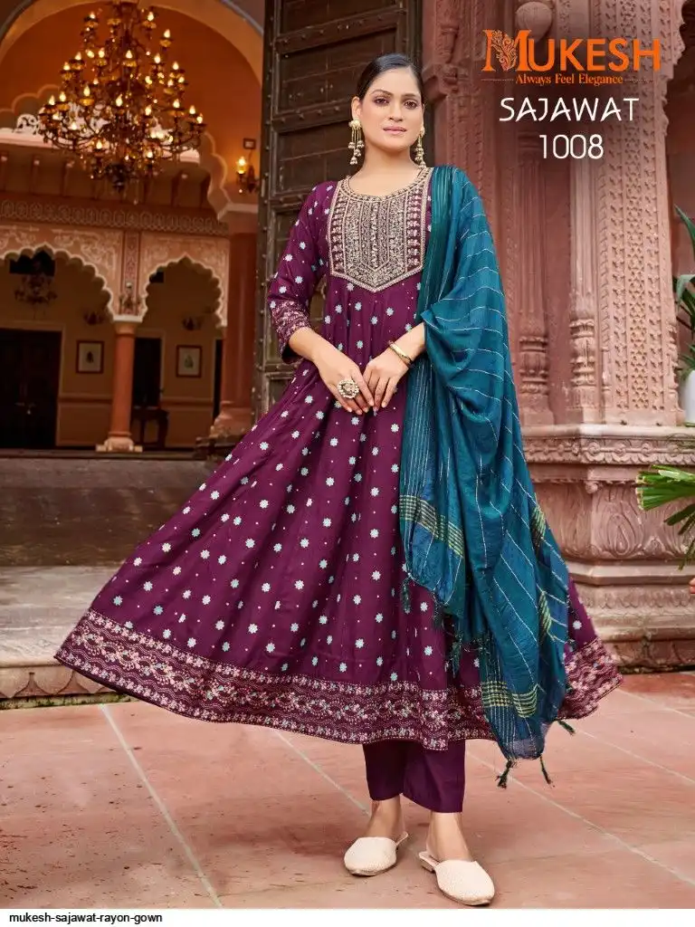 GOWN :- 14KG RAYON WITH HEAVY SEQUENCE EMBROIDERY QUARDING WORK WITH COLOR FOIL PRINT