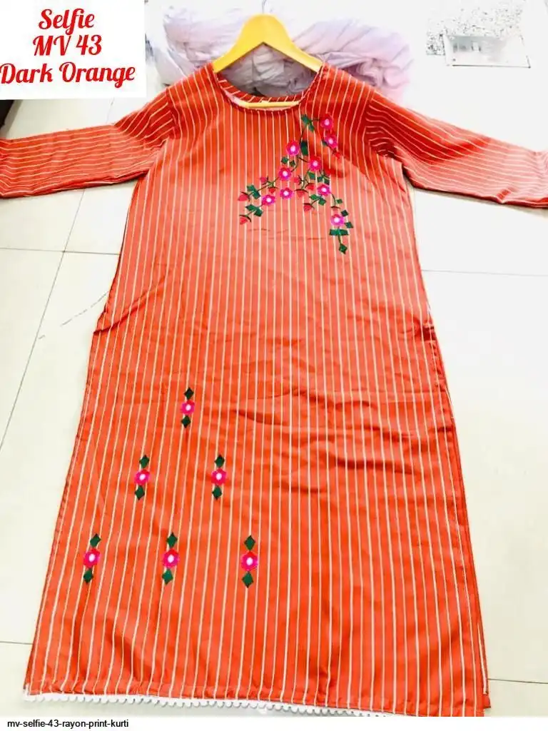 MV Selfie-43 Rayon Print Kurti with 14 kg Rayon Pent With Lace