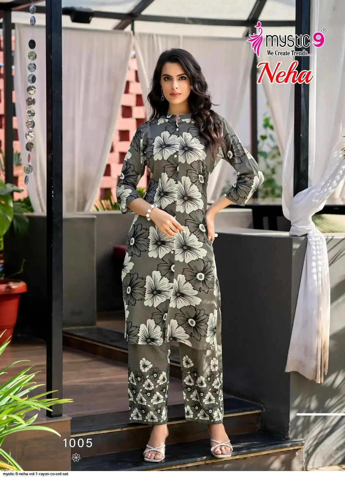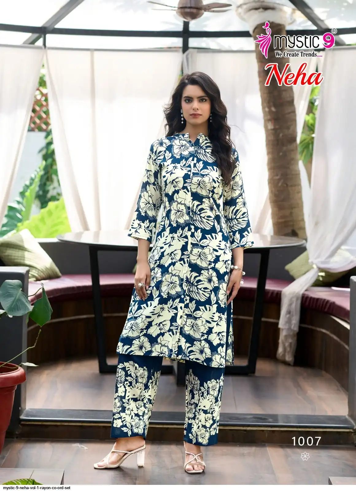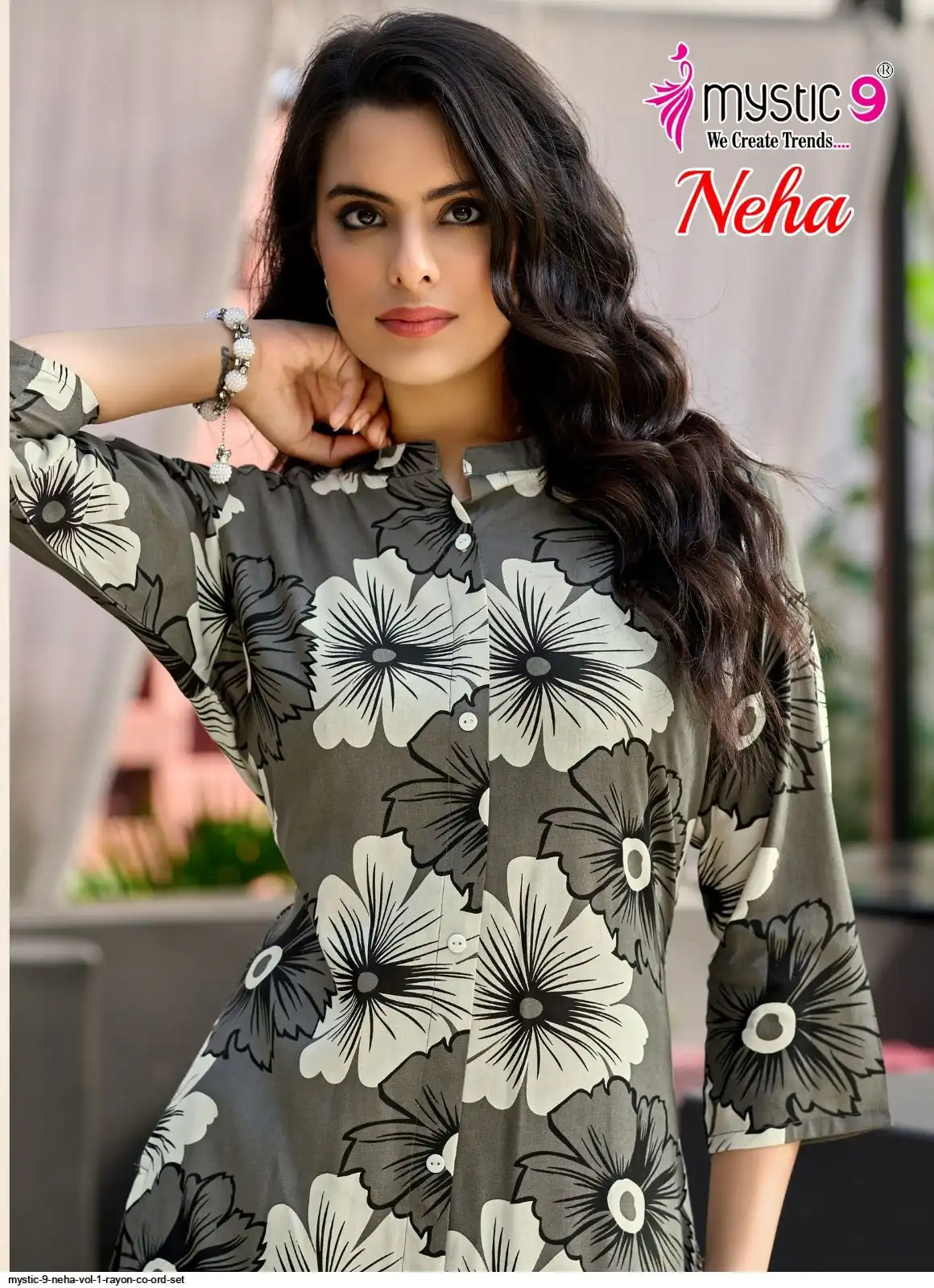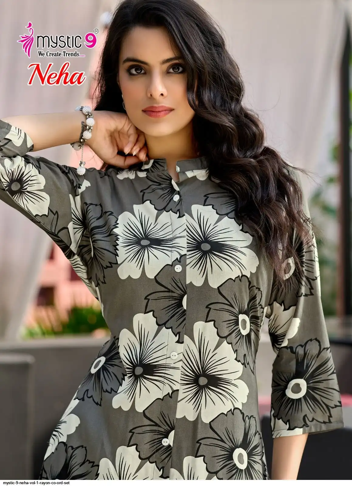 Top: Premium Rayon Print with Mandarin Collar, Sleeves Lock, and Buttons on front.