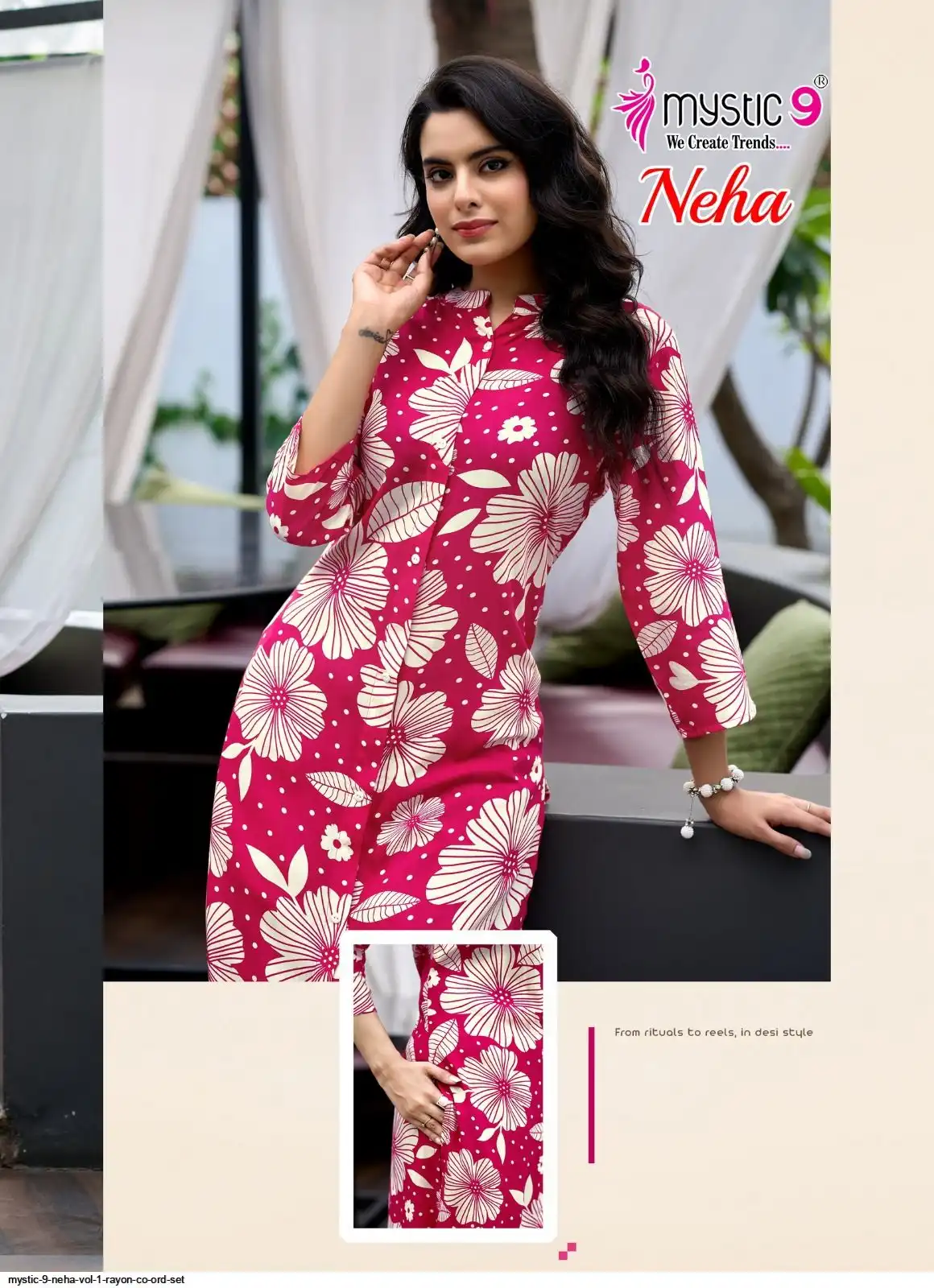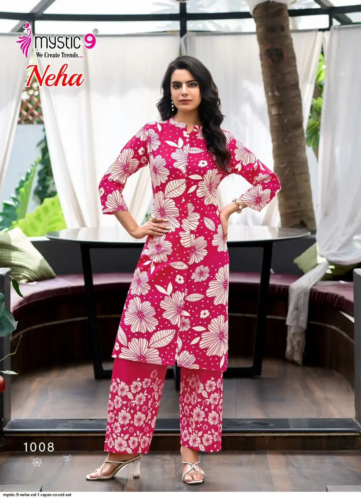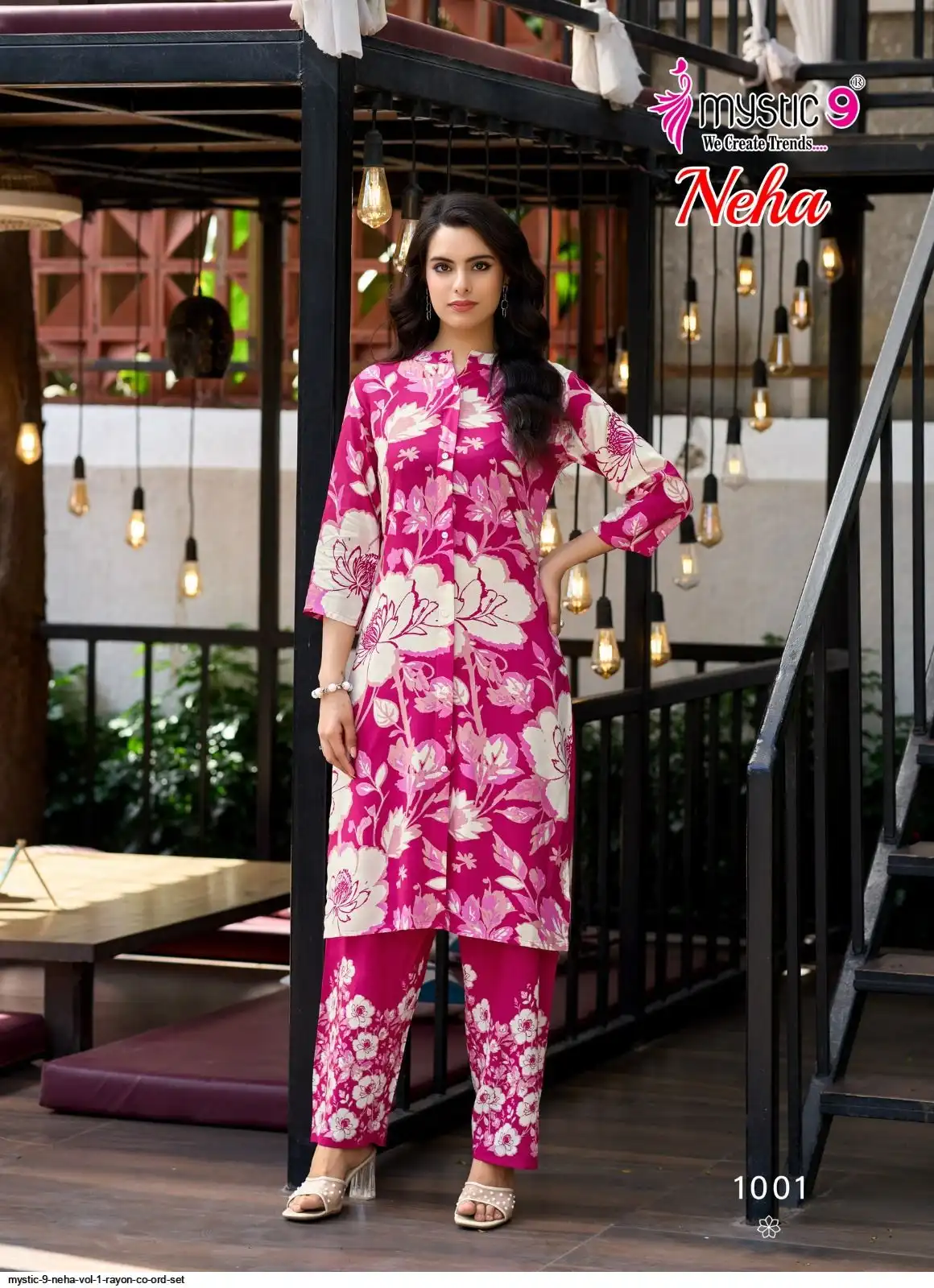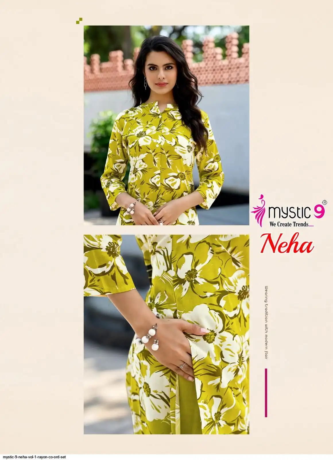 Top: Premium Rayon Print with Mandarin Collar, Sleeves Lock, and Buttons on front.