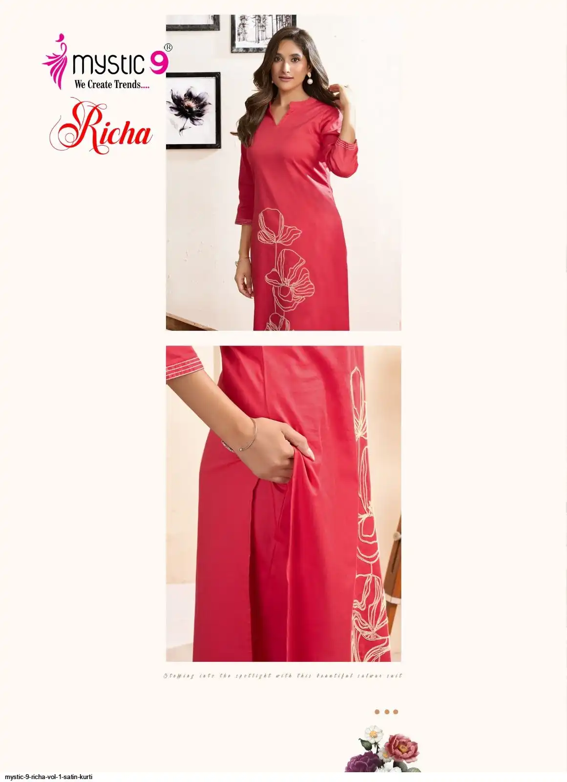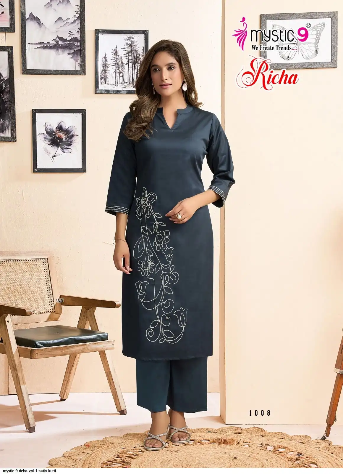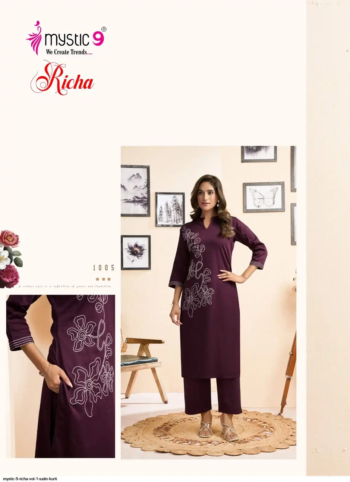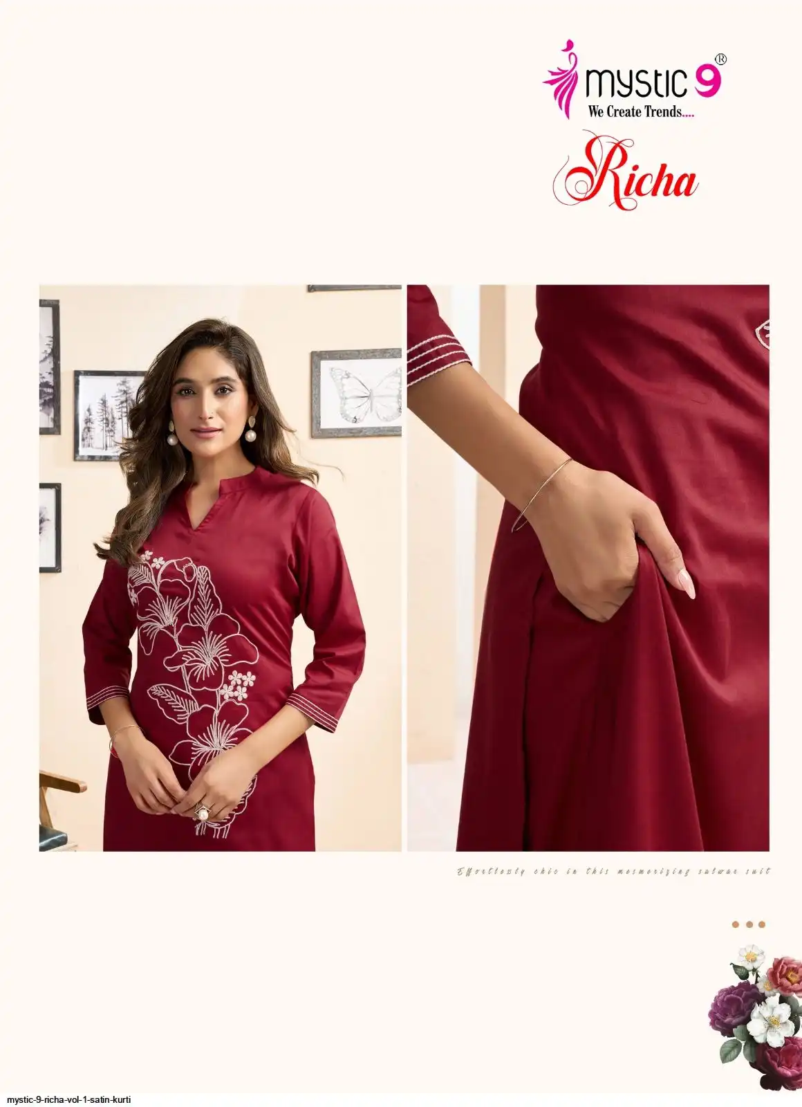 Bottom: Premium Satin Lycra Straight Pants with Interlock Finish and Exclusive Pocket Design.