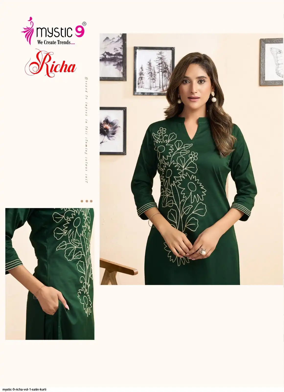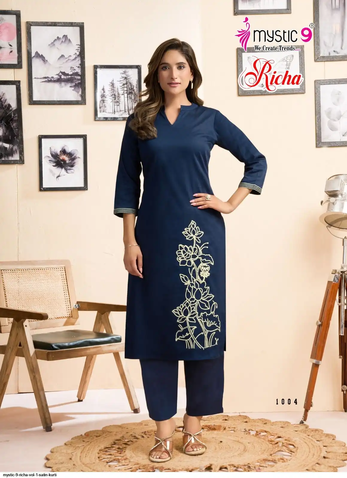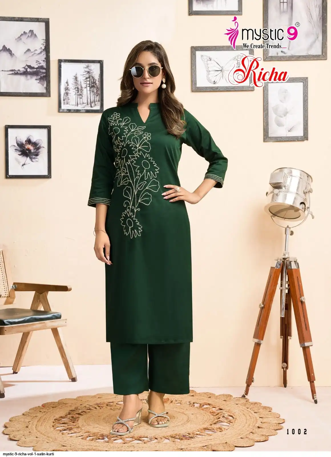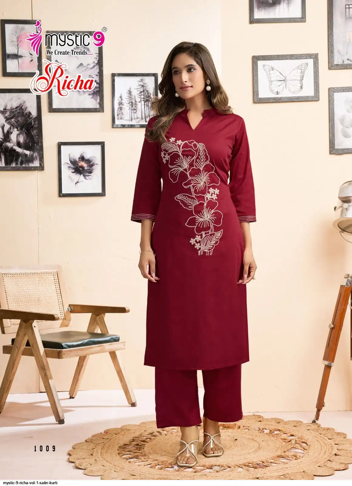 Bottom: Premium Satin Lycra Straight Pants with Interlock Finish and Exclusive Pocket Design.