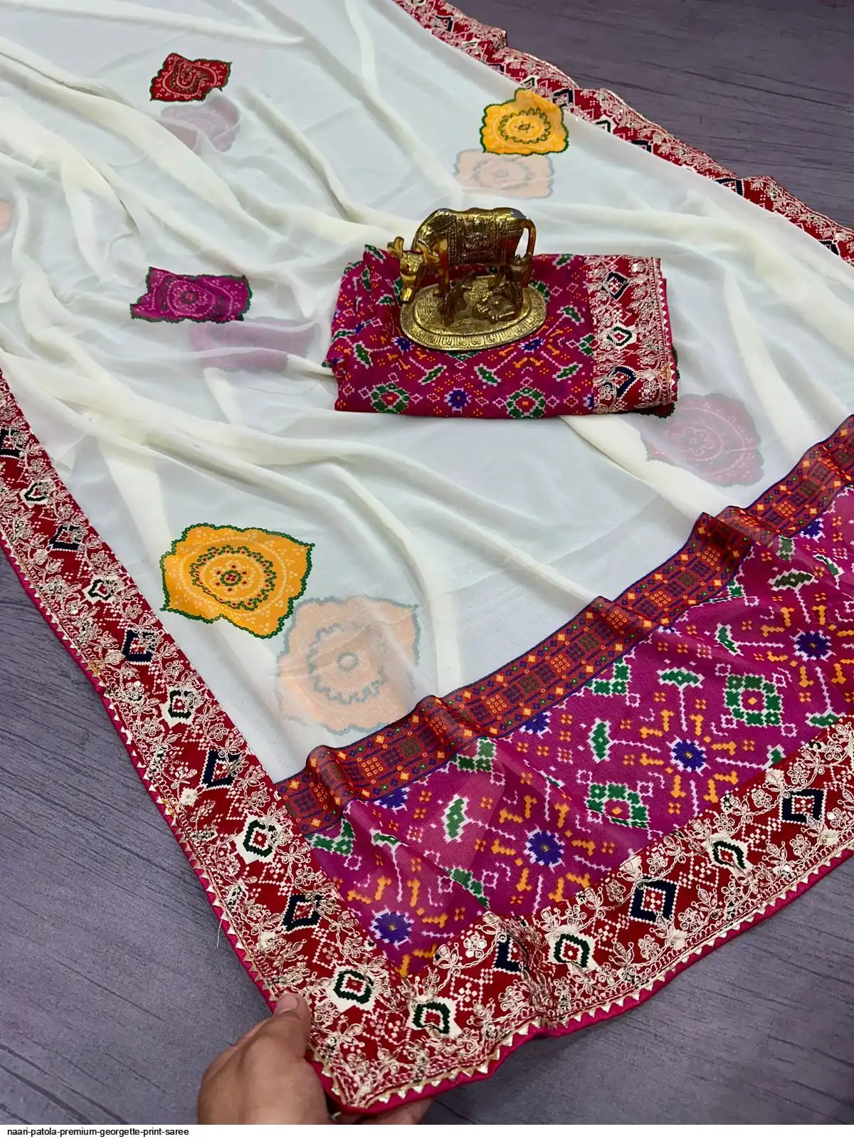 Saree :~ Pure n Premium Georgette high Quality with Patola Print Saree lace Border