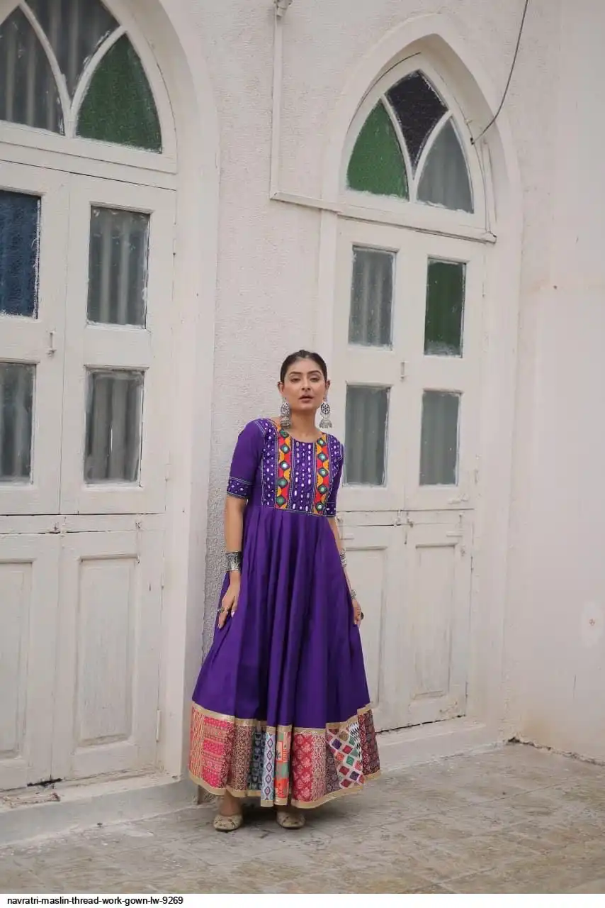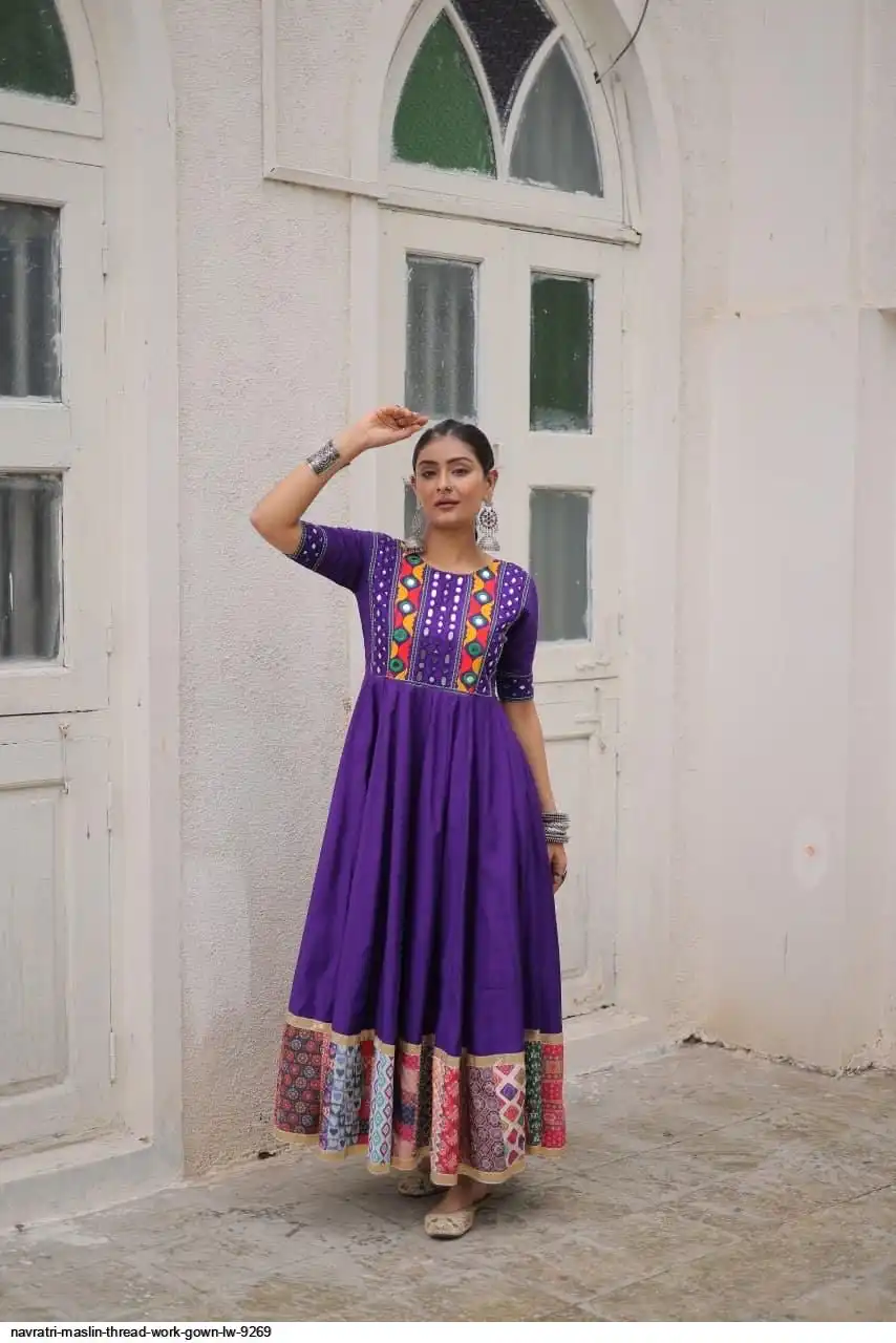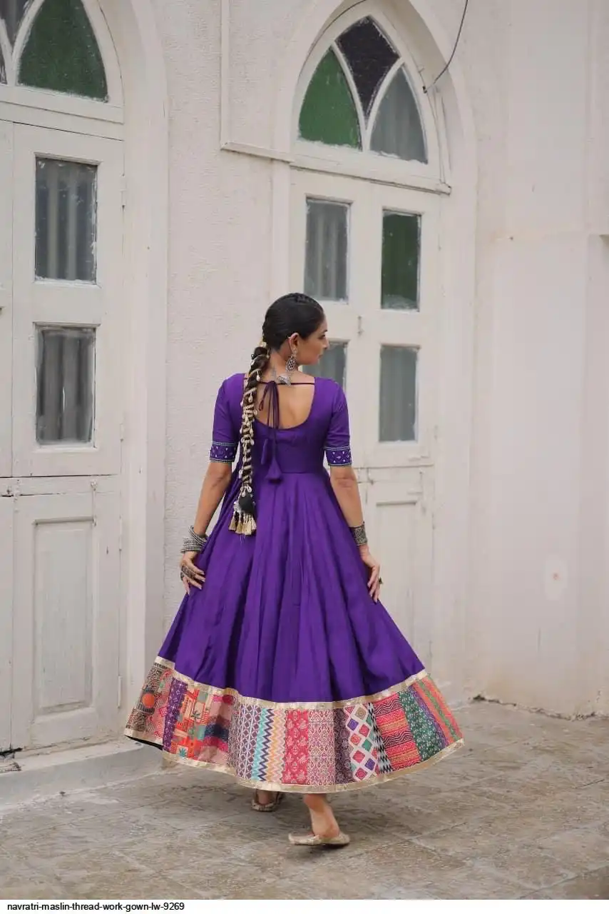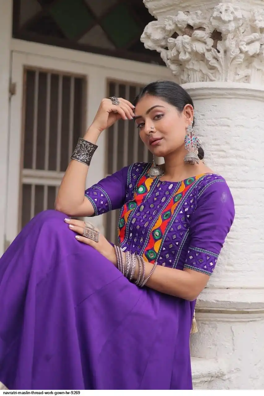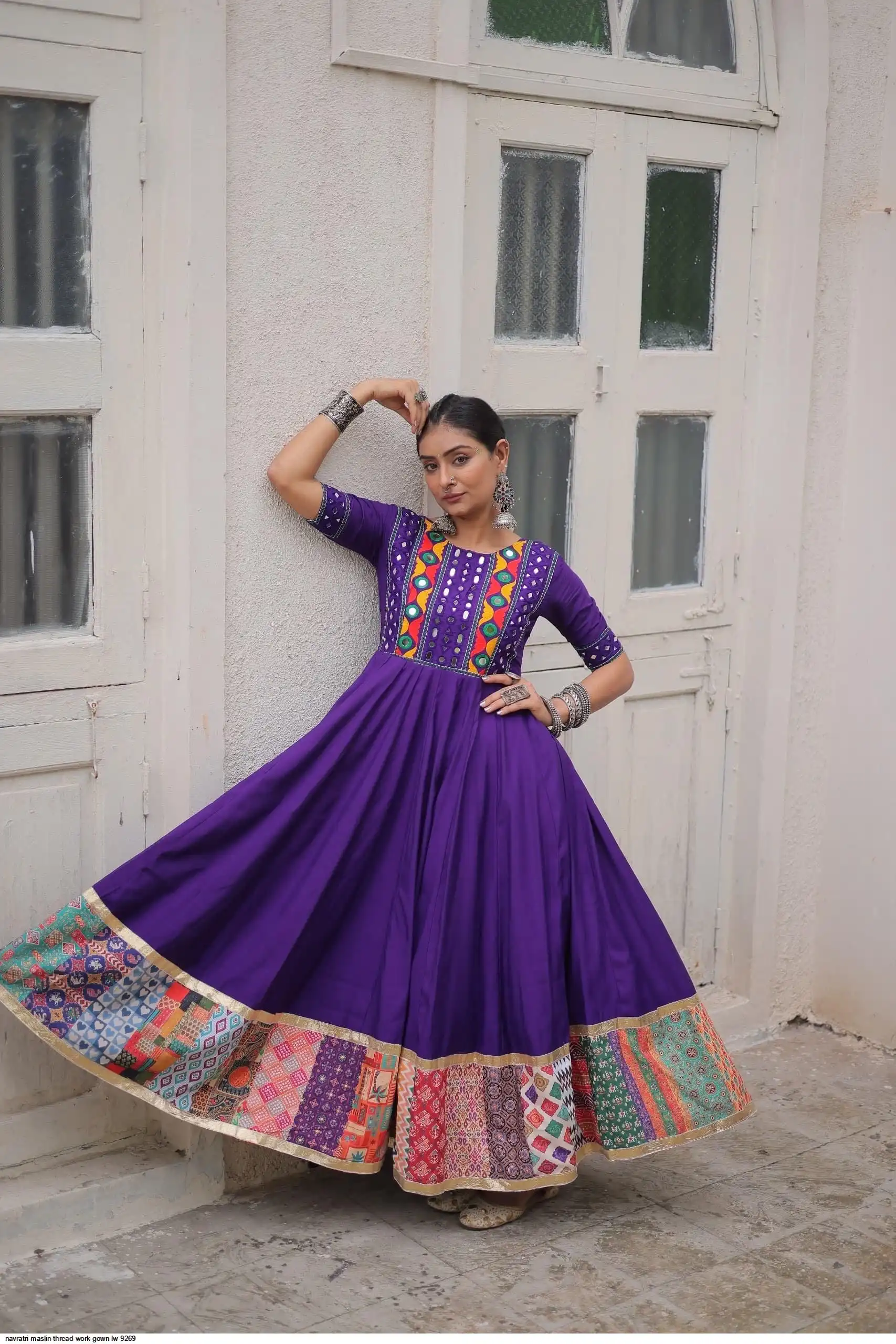 FABRICS & WORK :- Roman With multicolor Thread with mirror work & Maslin Crochet Print Work
