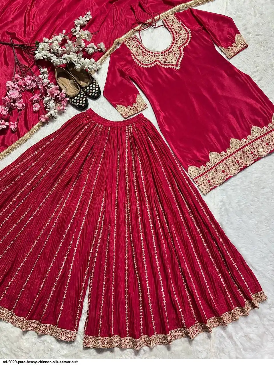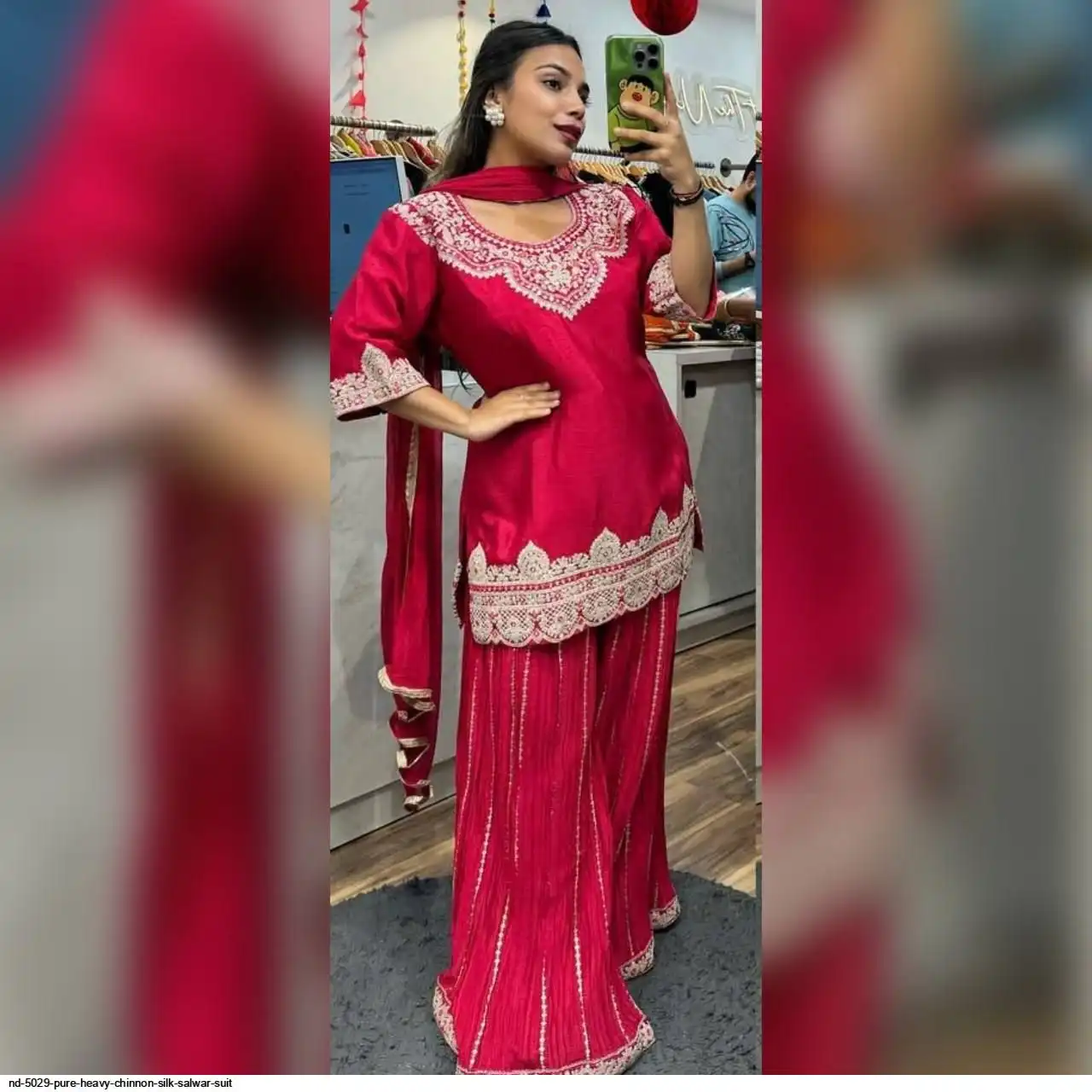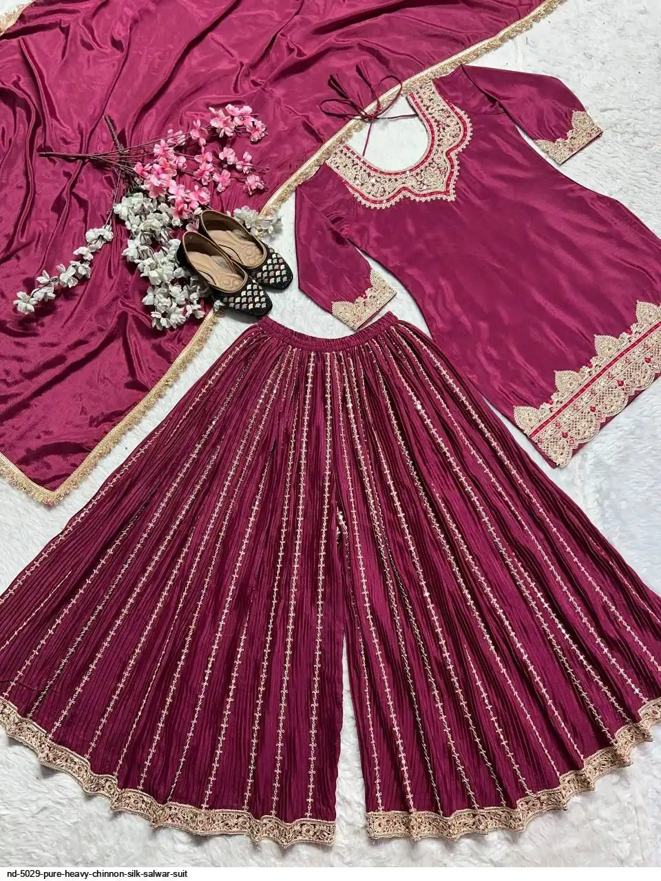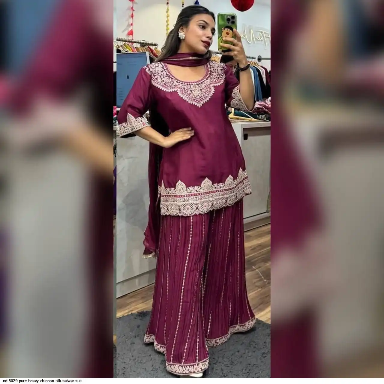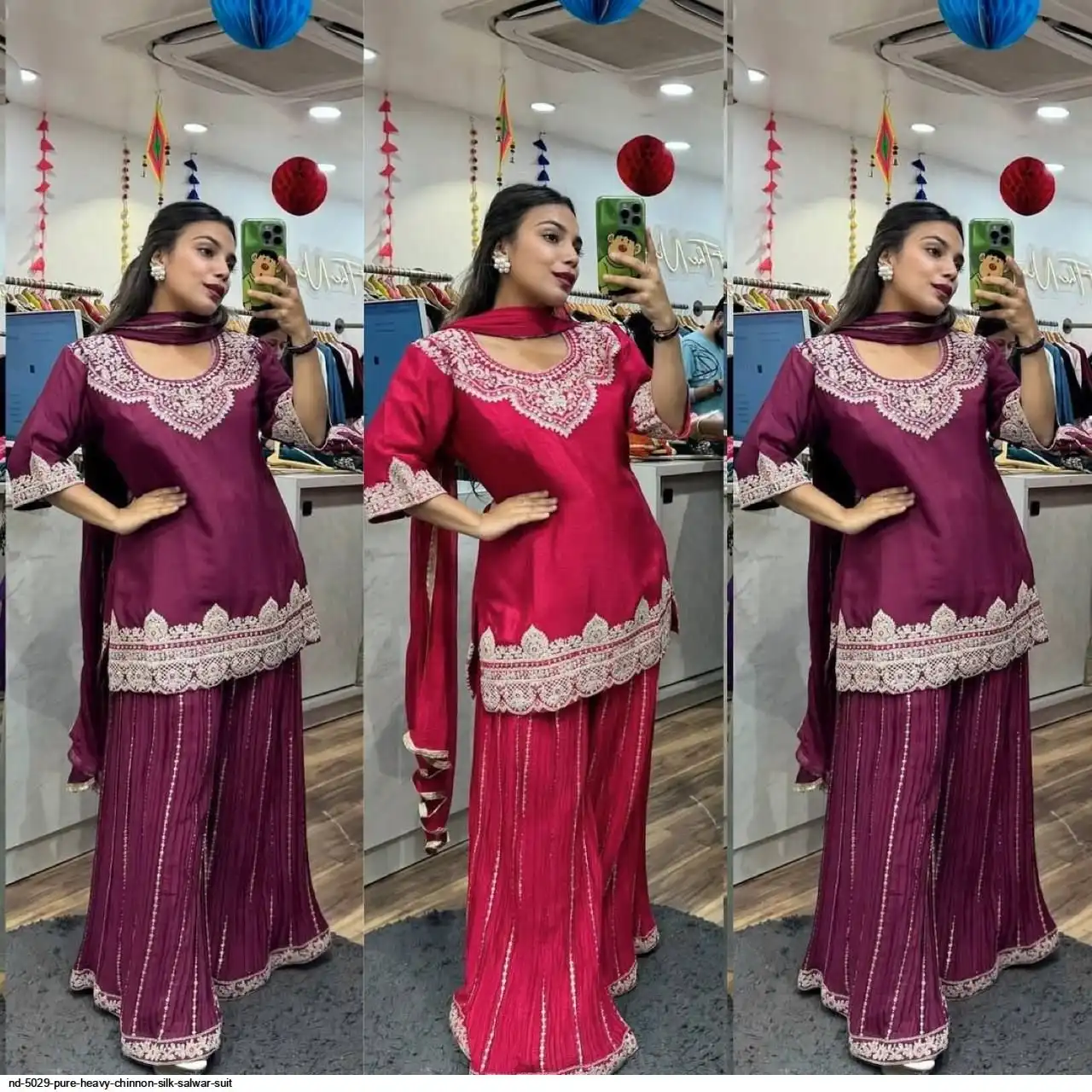 *Sharara fabric* :Pure Heavy Chinnon Silk With Heavy Embroidery Coding Sequence Work *(Fully Stitched)*