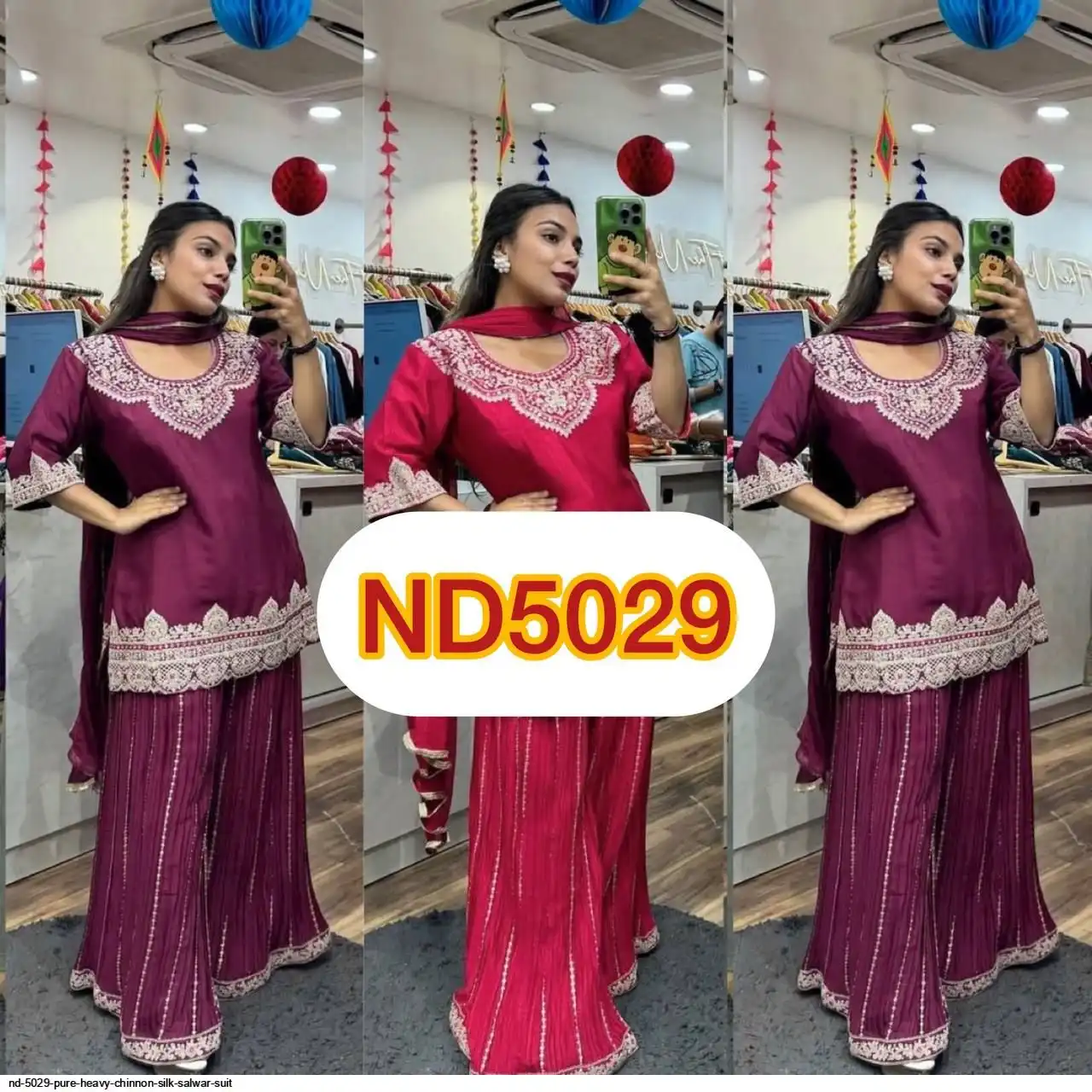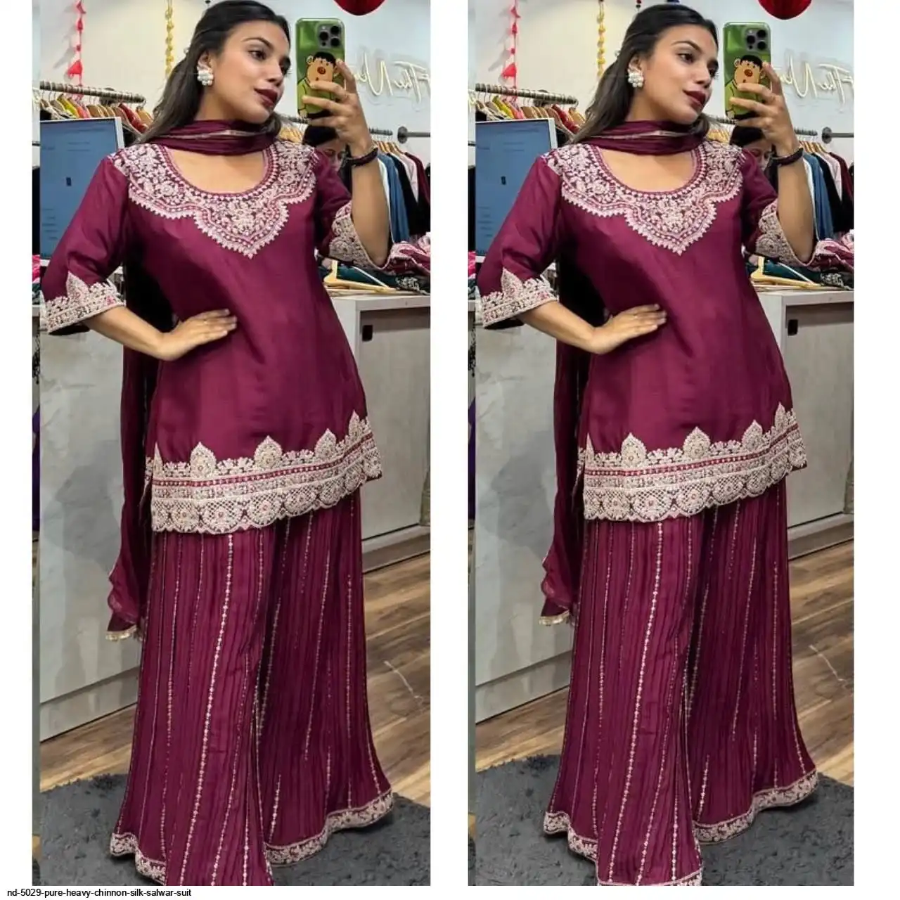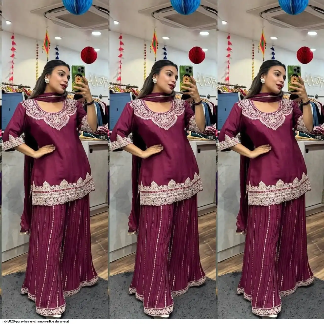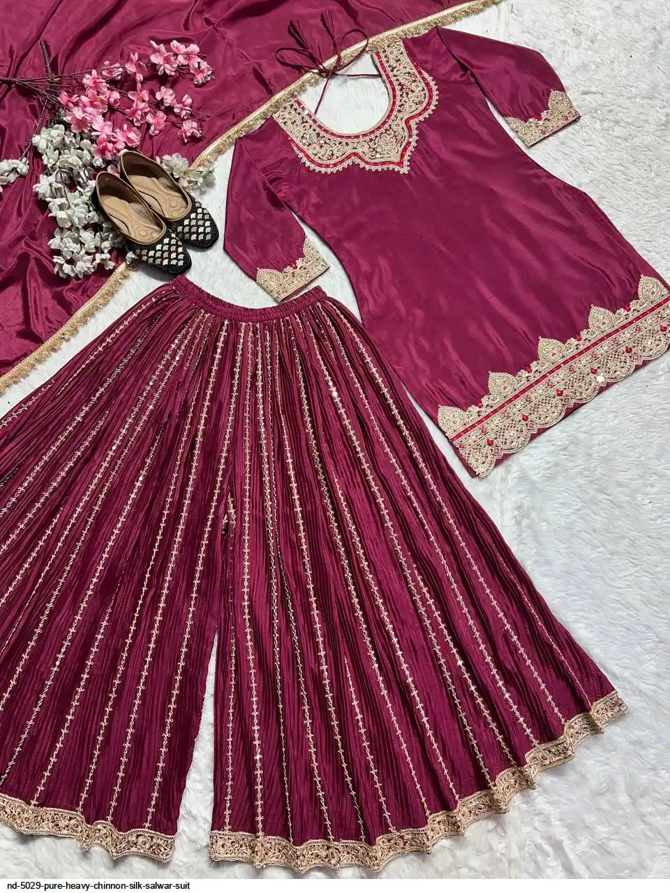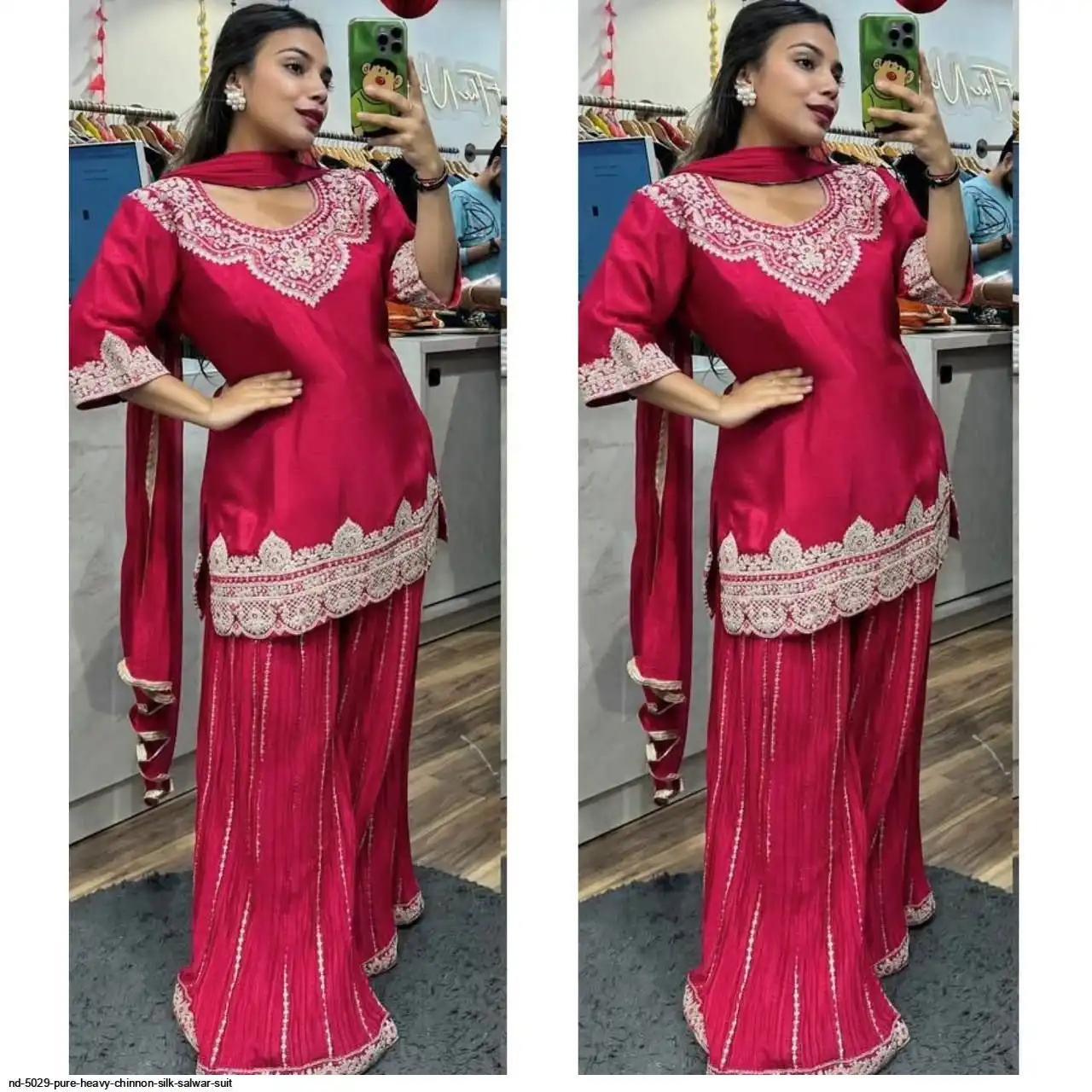 *Sharara fabric* :Pure Heavy Chinnon Silk With Heavy Embroidery Coding Sequence Work *(Fully Stitched)*