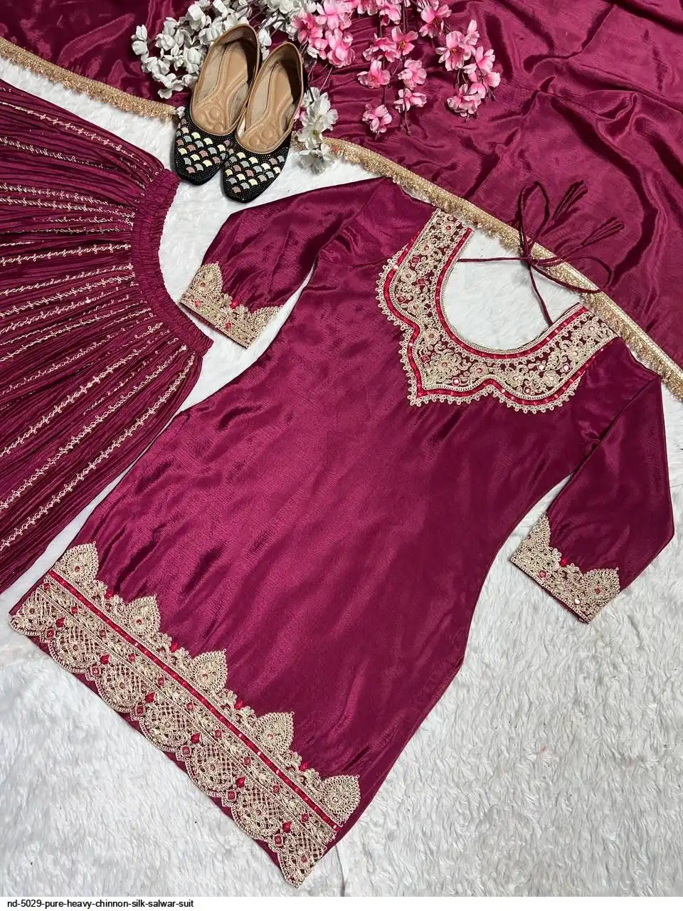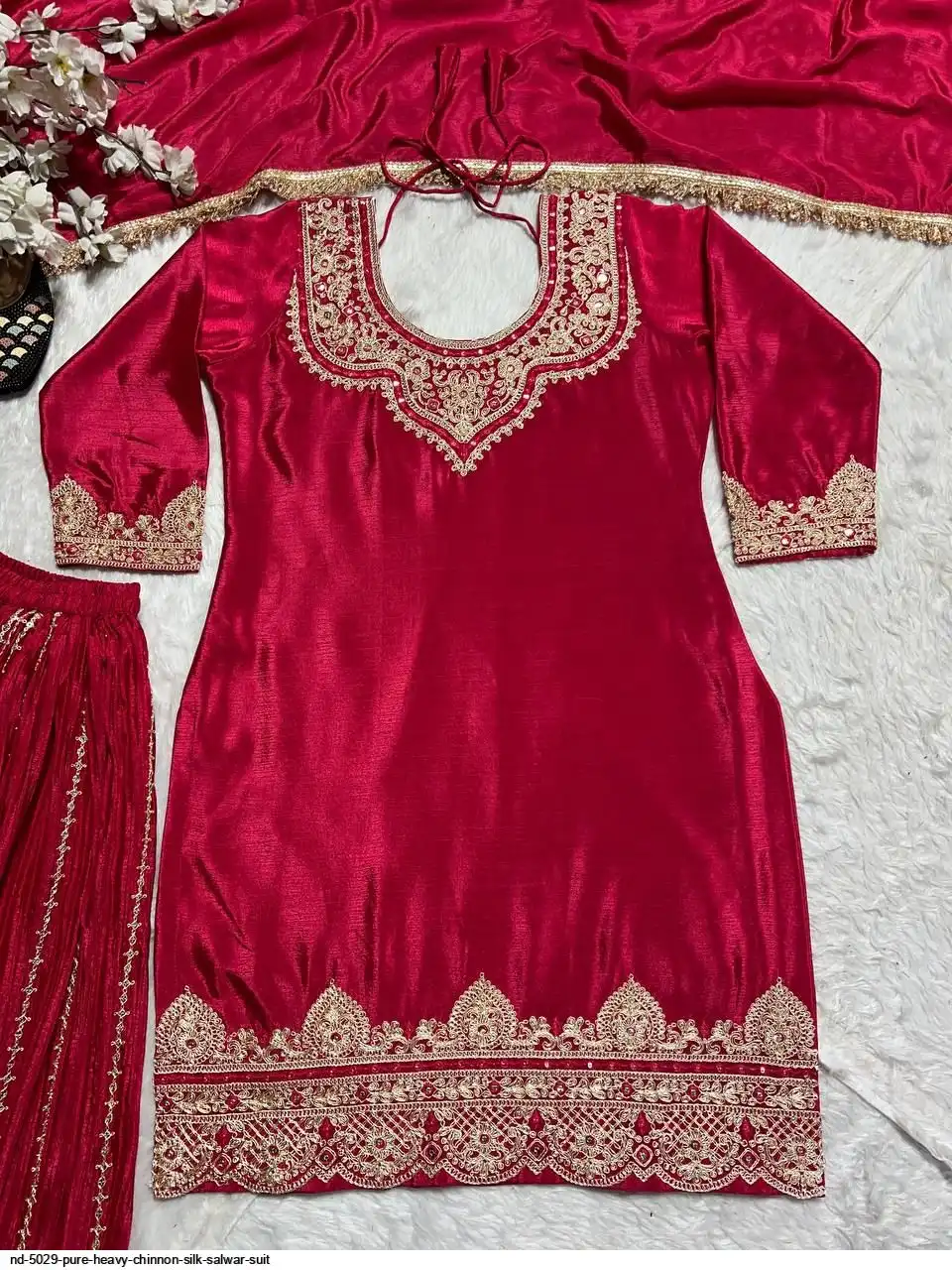 Top Fabric* :Pure Heavy Chinnon Silk With *Heavy Embroidery Coding Sequence Work* With Full Embroidery Sleeve
