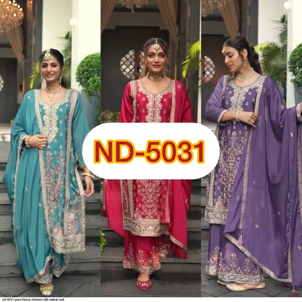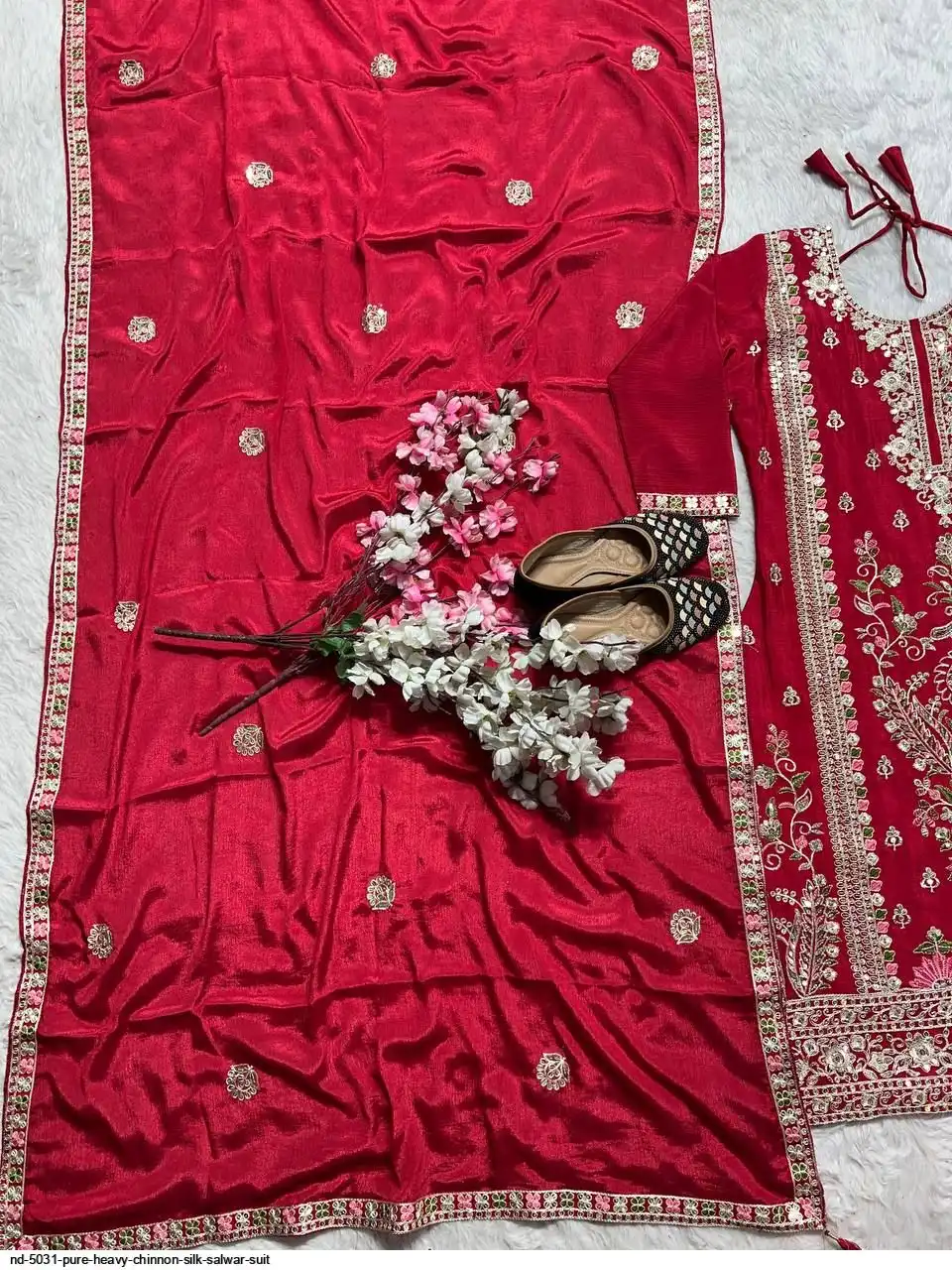 *Dupatta Fabric* : Pure Heavy Chinnon Silk With *Embroidery Coding Sequence Work* Four Side Lace Border