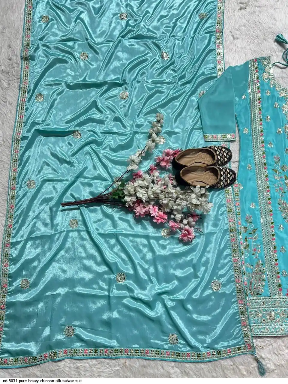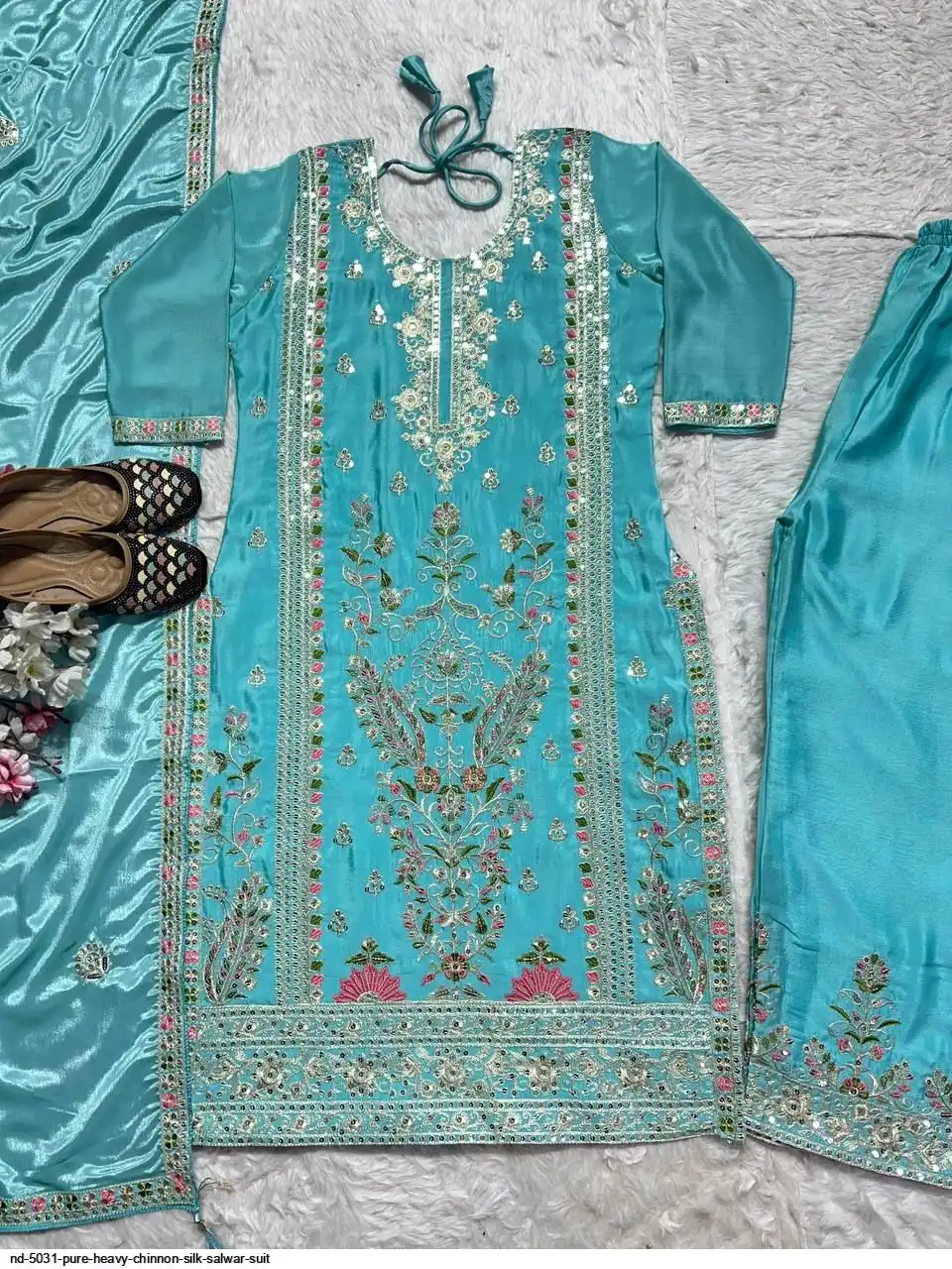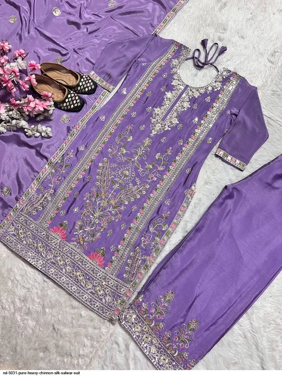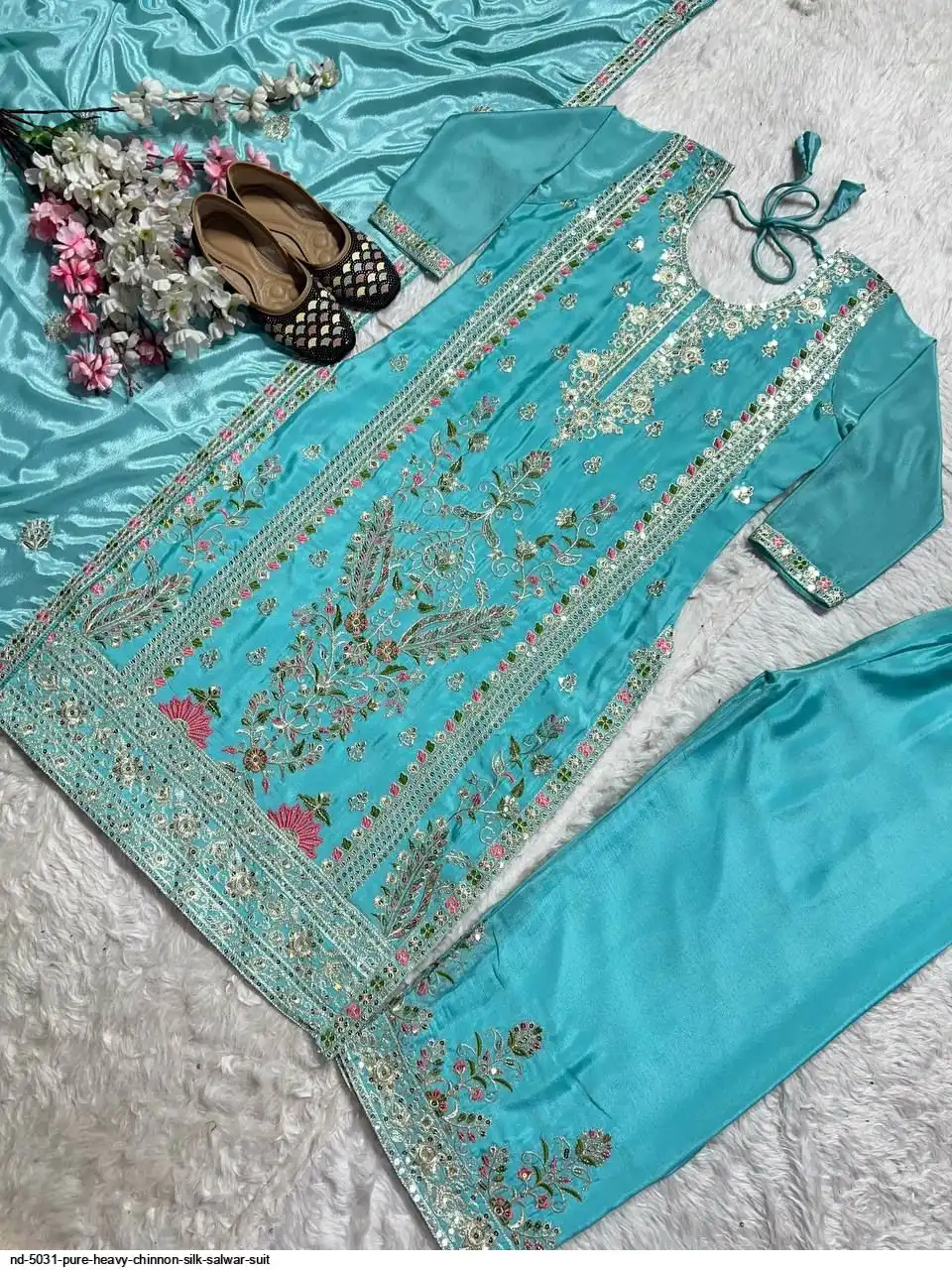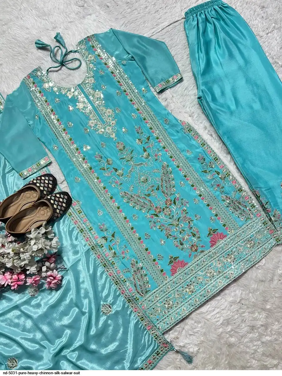 *Plazzo fabric* :Pure Heavy Chinnon Silk With Heavy Embroidery Coding Sequence Work *(Fully Stitched)*