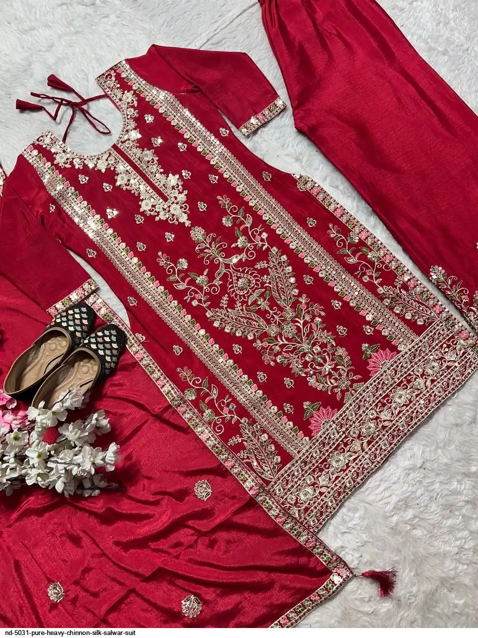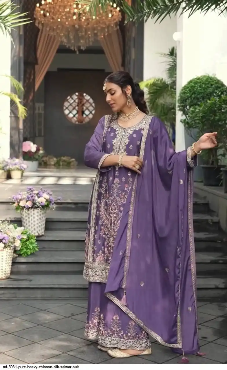 Top Fabric: Pure Heavy Chinnon Silk With Heavy Embroidery Coding Sequence Work With Full Embroidery Sleeve