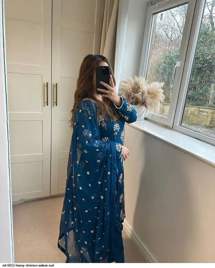 *Long Top Fabric* :- Hevay Chinon Fabric With Heavy Embroidery 5mm Sequence Work With Moti Latkan Work Less . *(Fully Sleeve’s)*