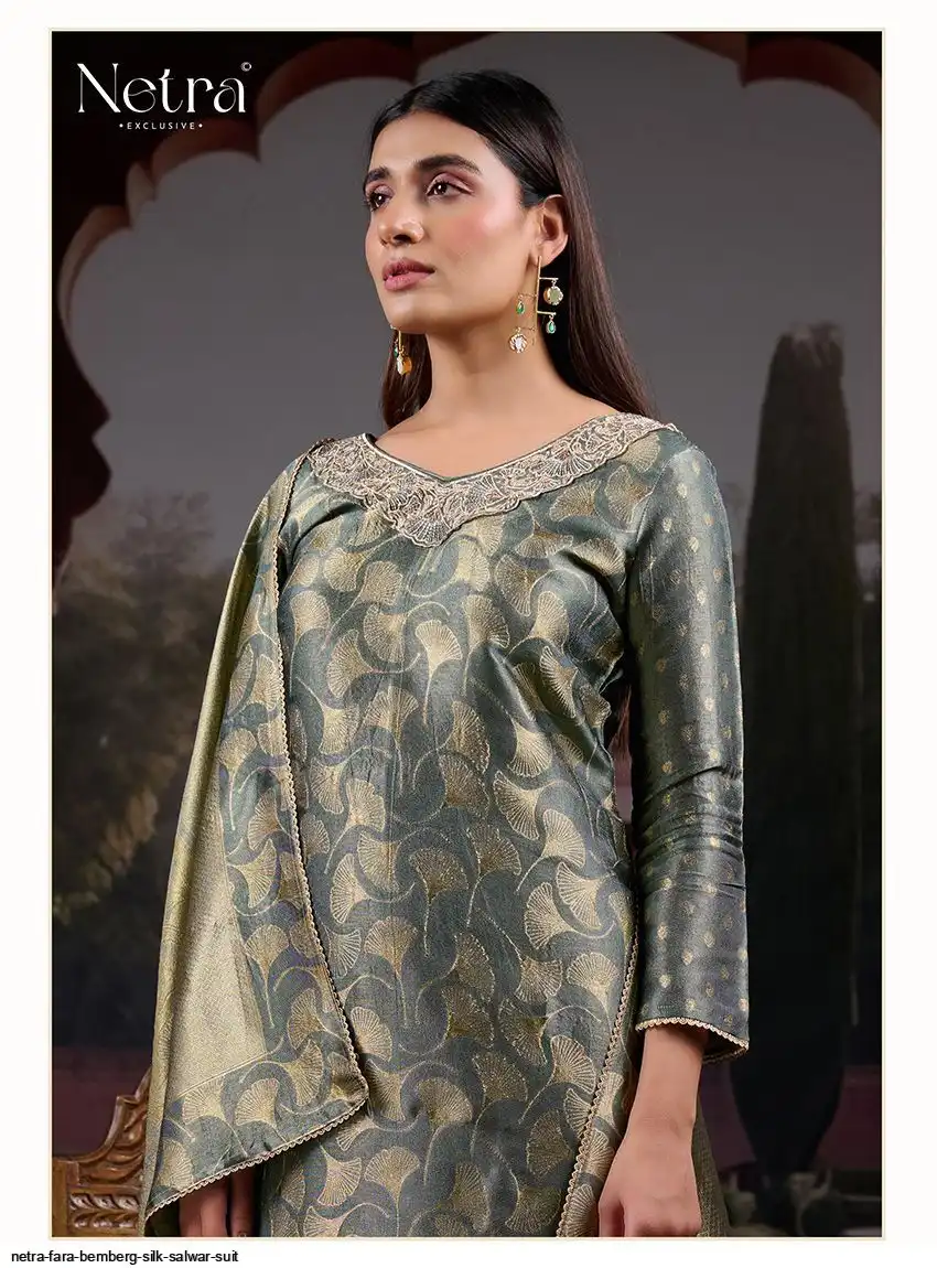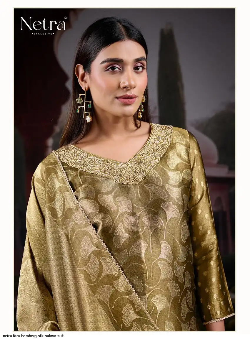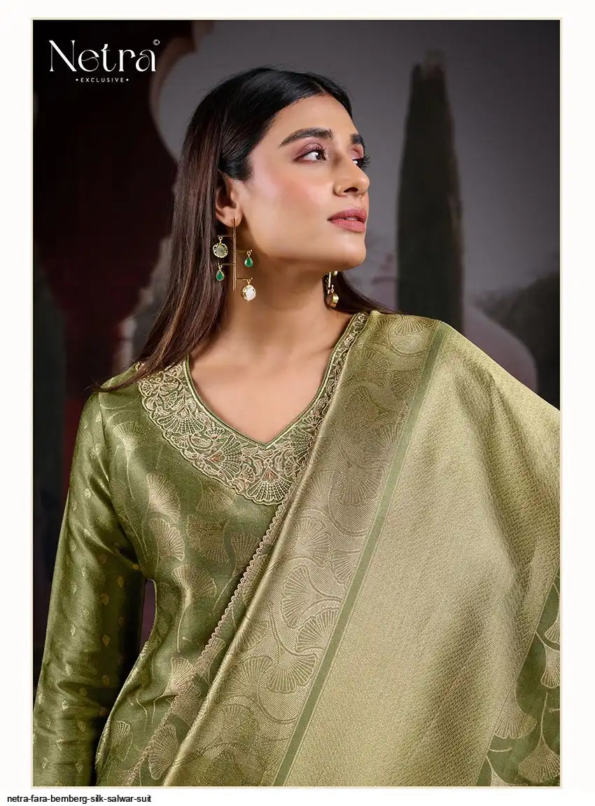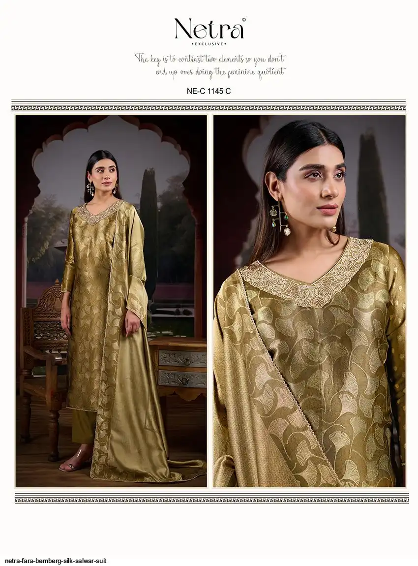 PREMIUM BEMBERG SILK JIRAFFE JACQUARD SOLID COLOUR WITH EMBROIDERY HAND WORK AND JARI LACE FOR DAMAN & SLEEVE