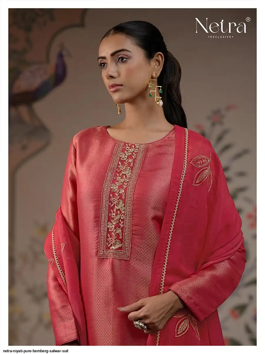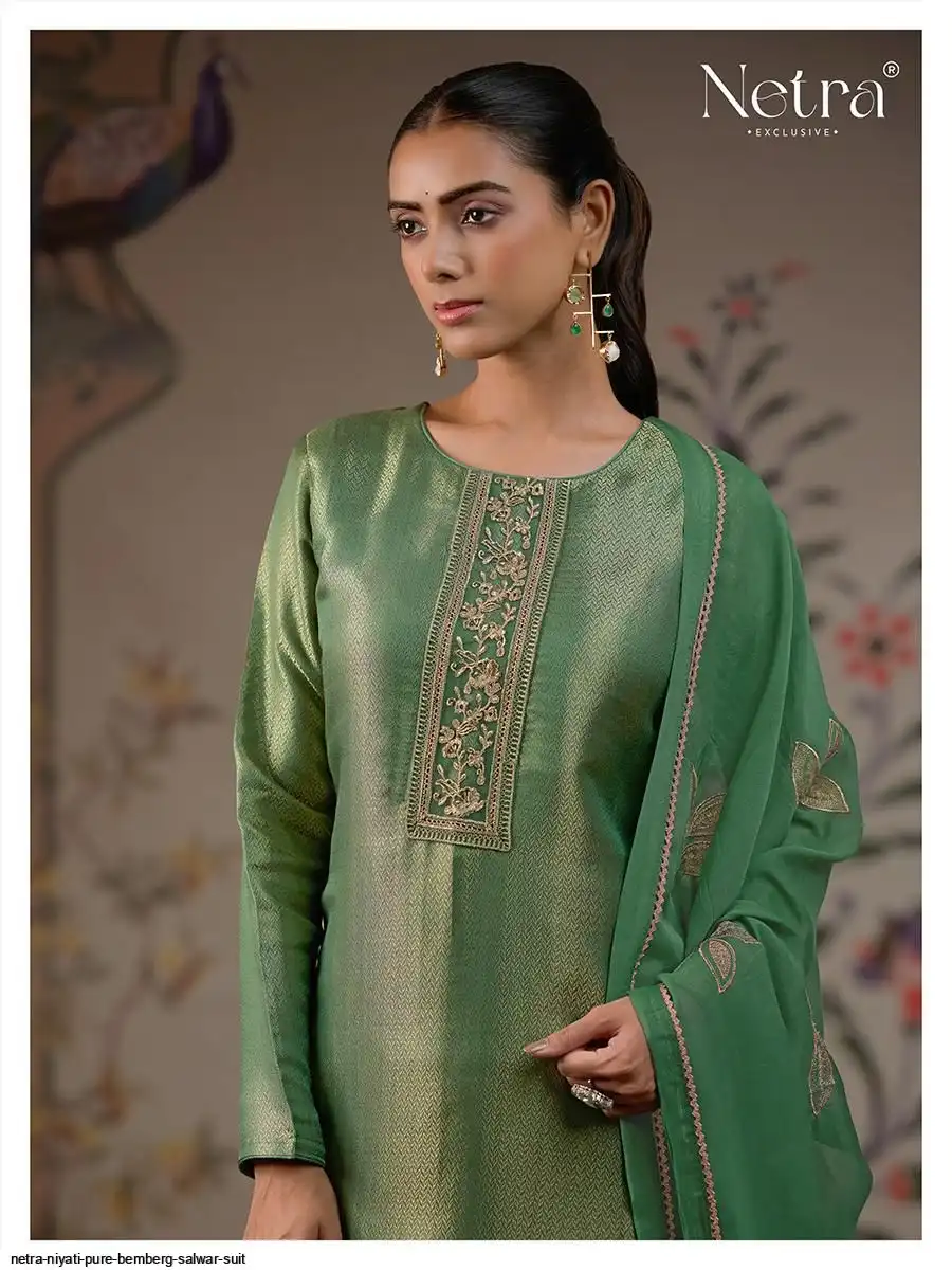 PREMIUM PURE BEMBERG SILK JACQUARD SOLID COLOR WITH EMBROIDERY & HAND WORK , JARI LACE FOR DAMAN