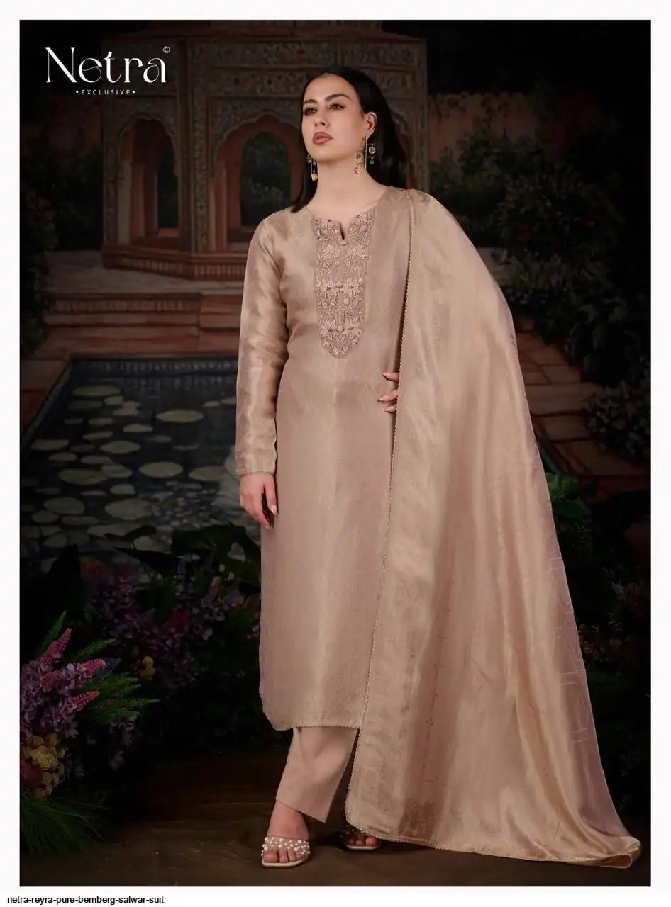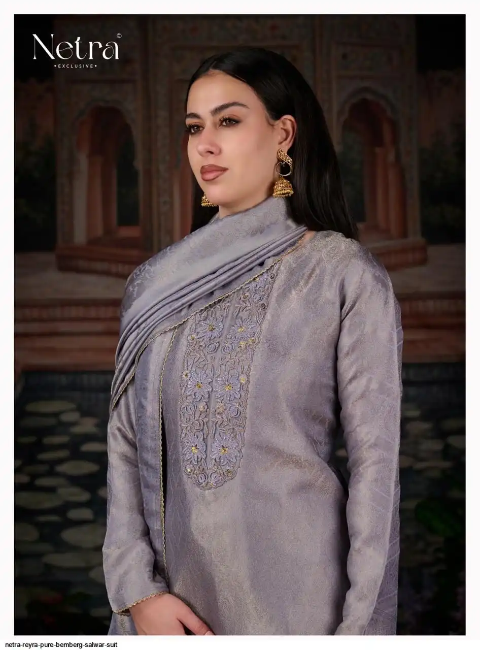 PREMIUM PURE BEMBERG KHIMKHAB JACQUARD WITH EMBROIDERY WORK & JARI LACE ON DAMAN