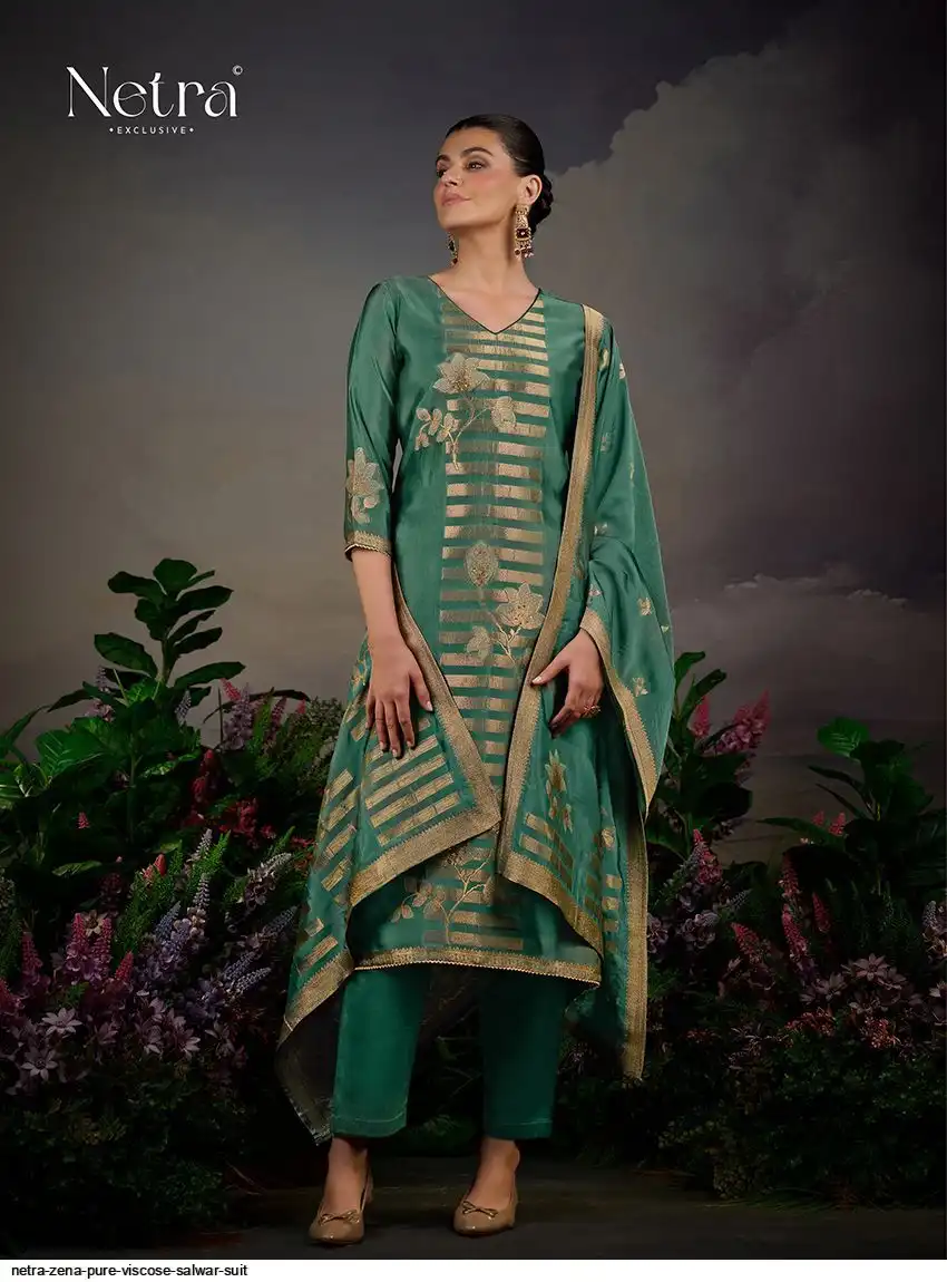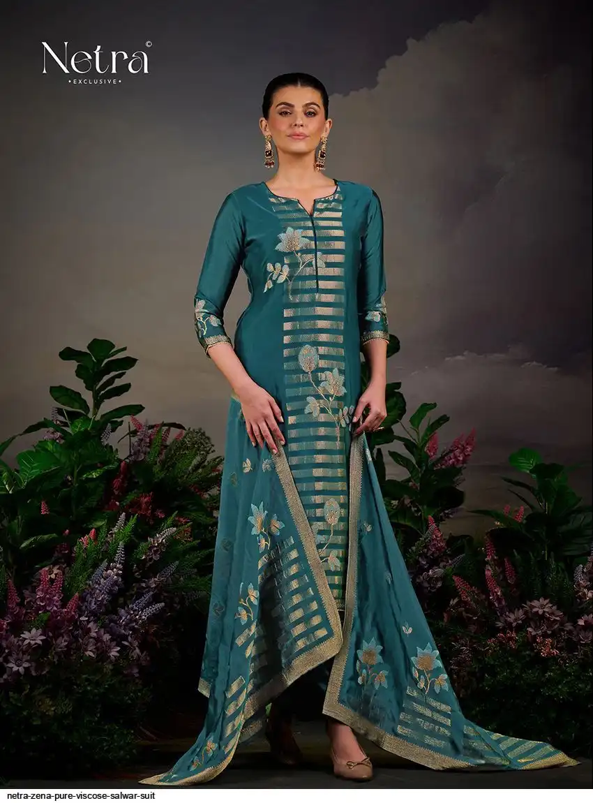 PREMIUM PURE VISCOSE WOVEN SILK JACQUARD SOLID COLOUR WITH HAND WORK & READY LACE FOR DAMAN