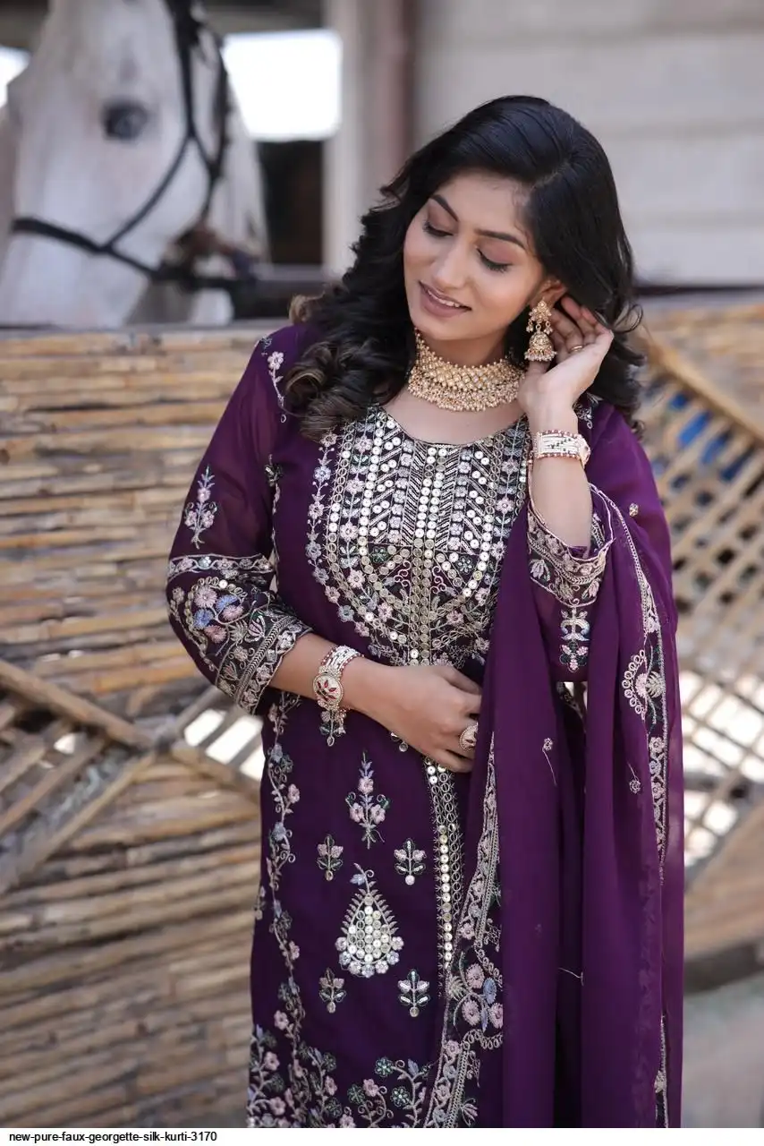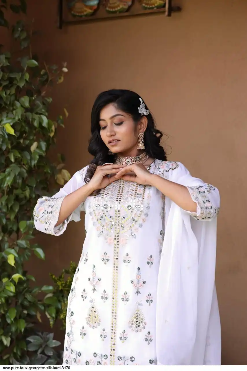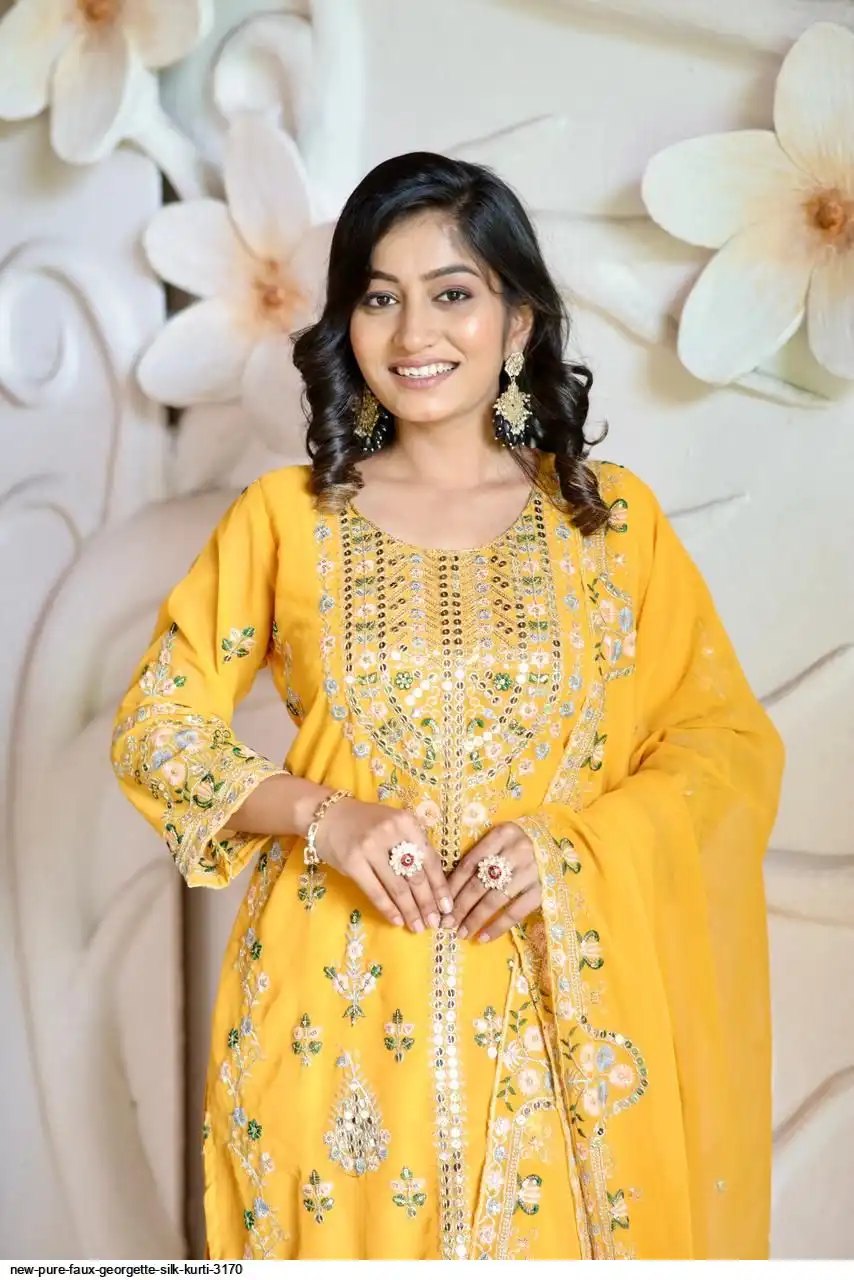 💃 Kurti Fabric :- Pure Faux gorgette Silk Fabric With Micro silk inner (Fully stitched)