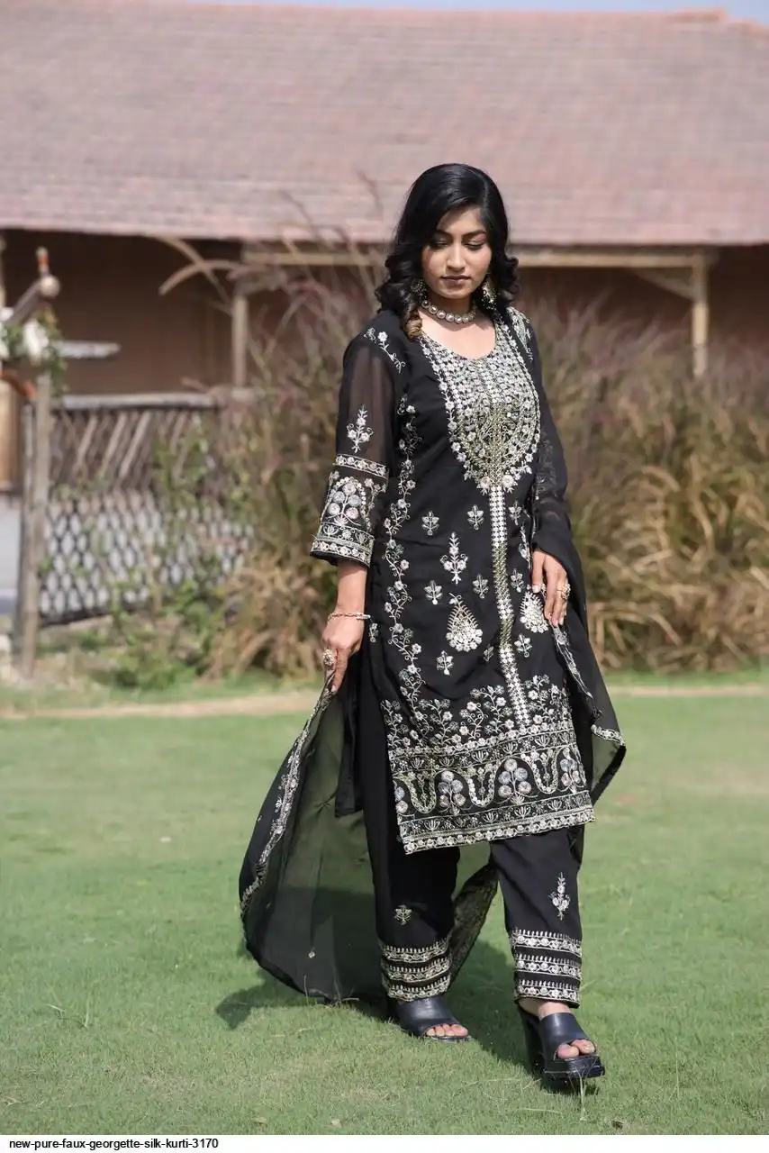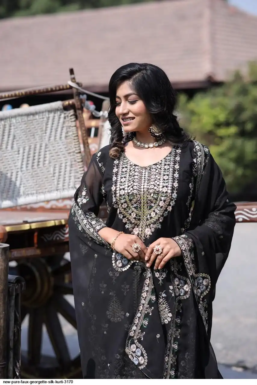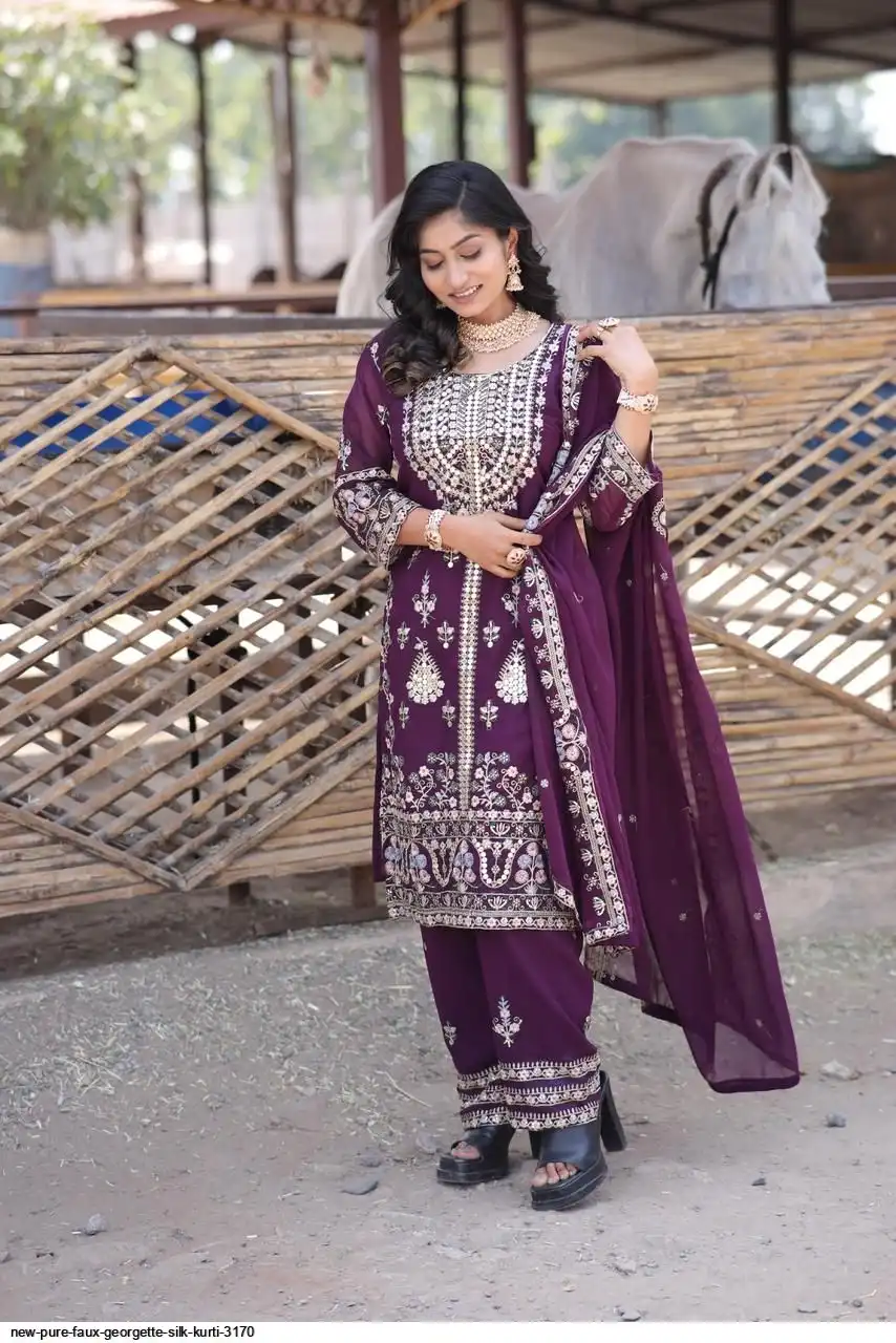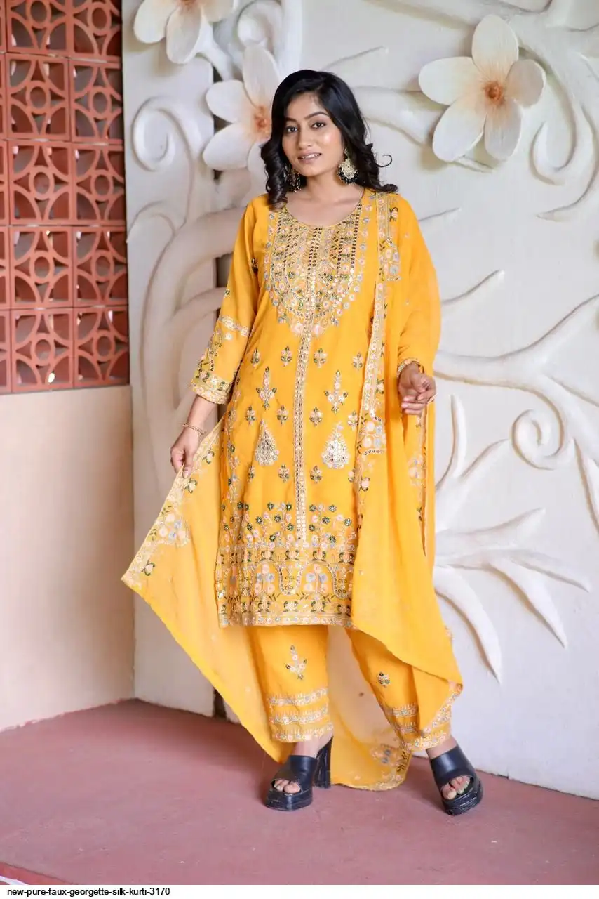 💃 Kurti Fabric :- Pure Faux gorgette Silk Fabric With Micro silk inner (Fully stitched)