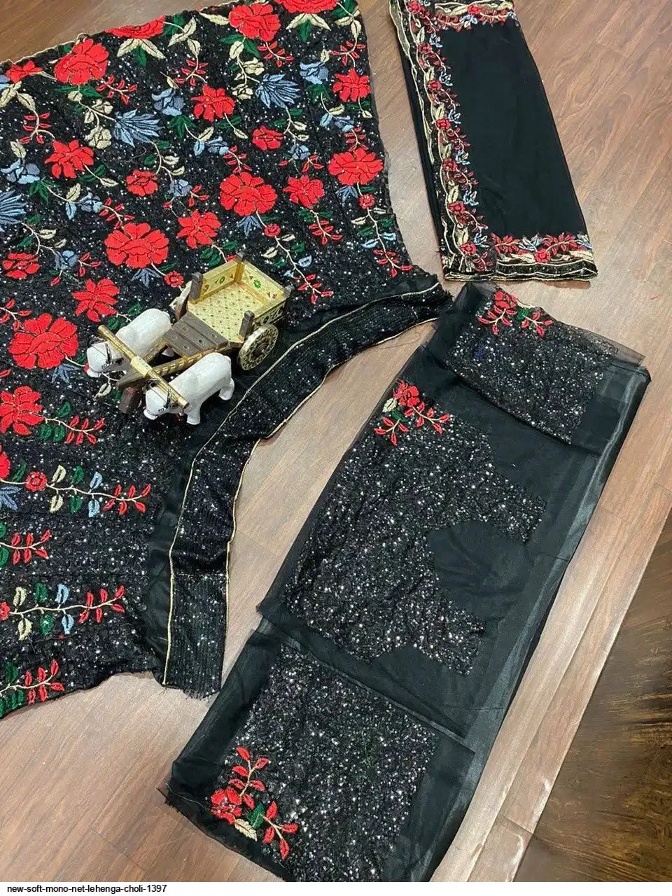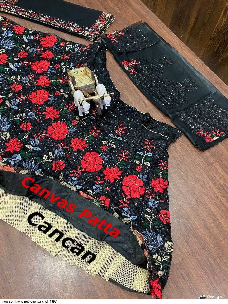 👉Lehenga work- Sequins Embroidered Work With Cancan & Canvas Patta