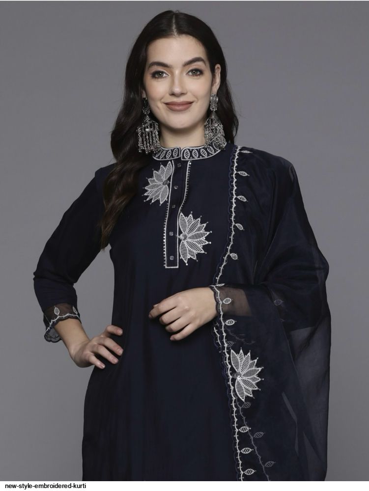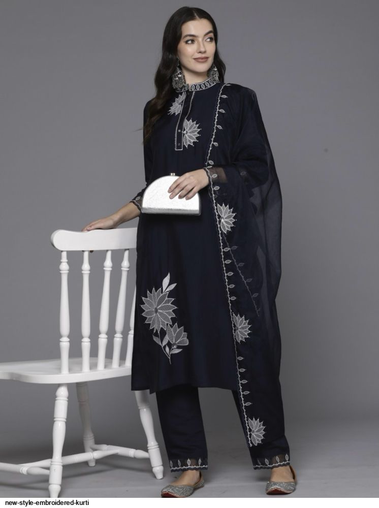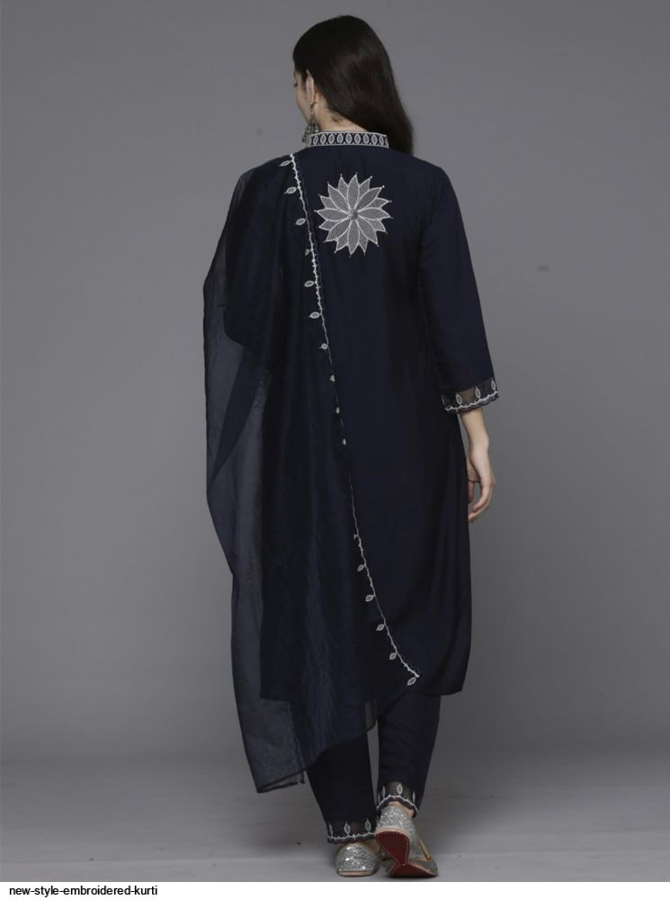 Navy blue embroidered Kurta with Trousers with dupatta