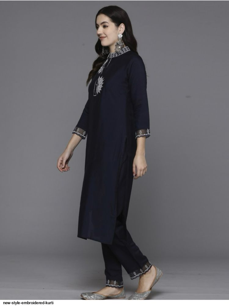 Kurta design: • Solid embroidered
