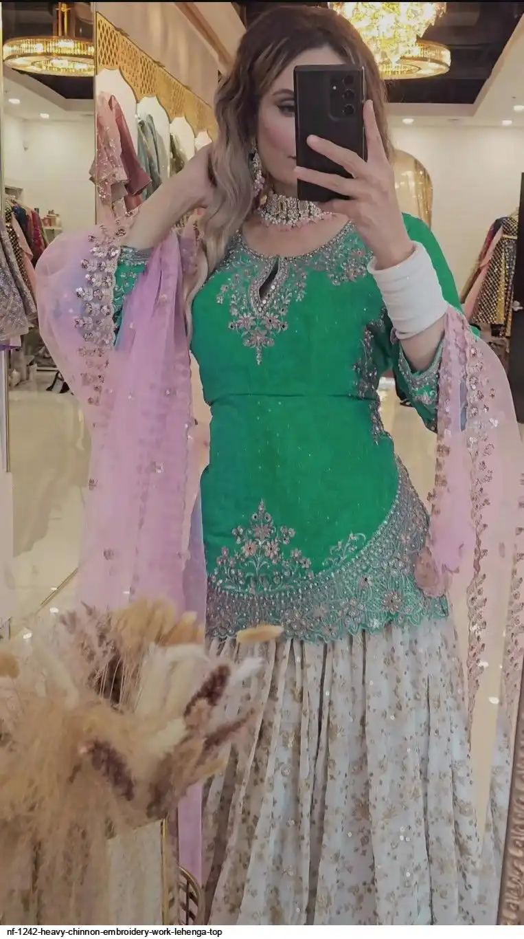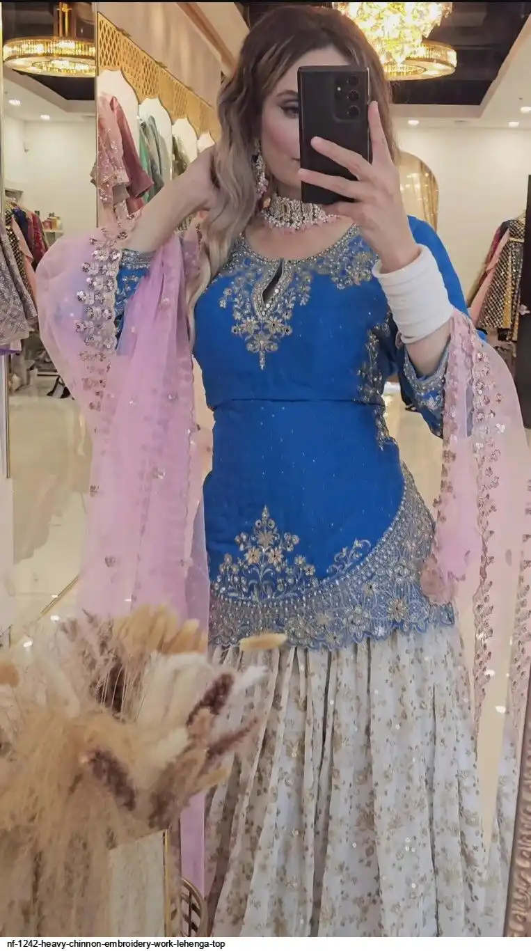 Top Fabric: Heavy chinon silk and 5mm Sequence Embroidery Work