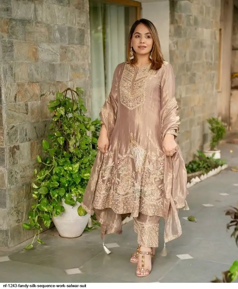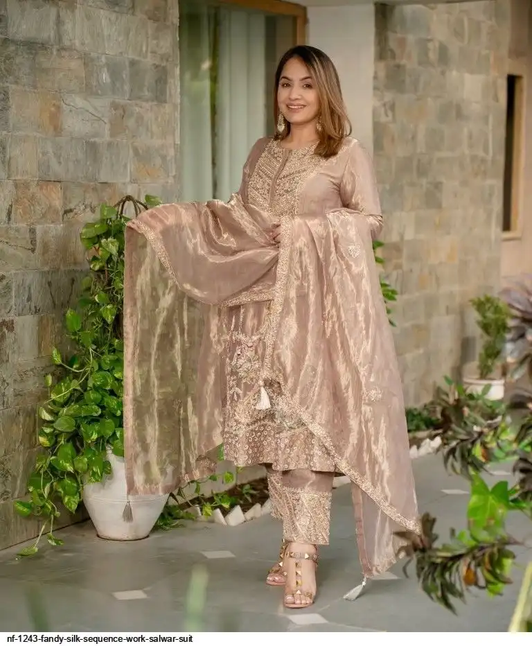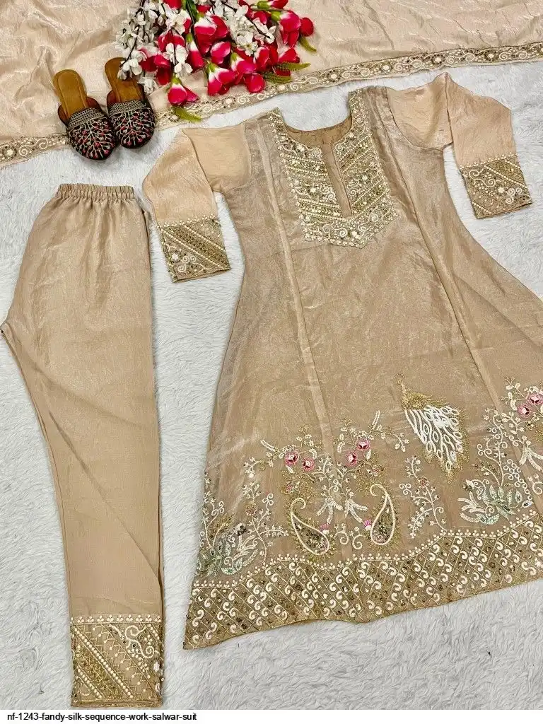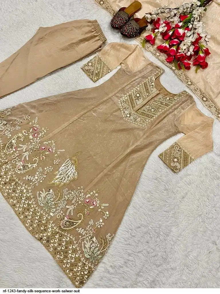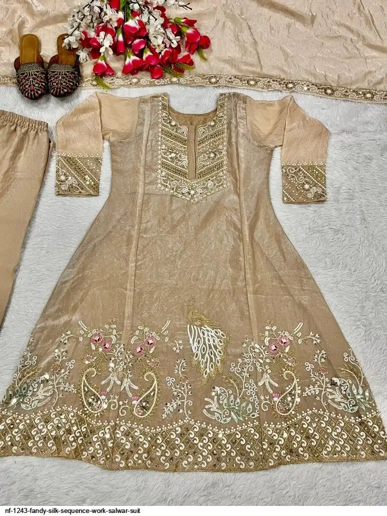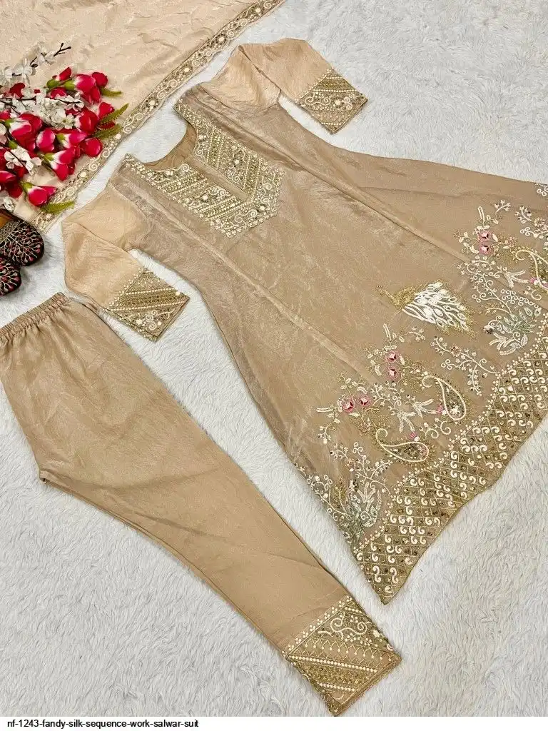 Pant fabric :Fandy Silk With Heavy Embroidery Sequence Work (FullyStitched)