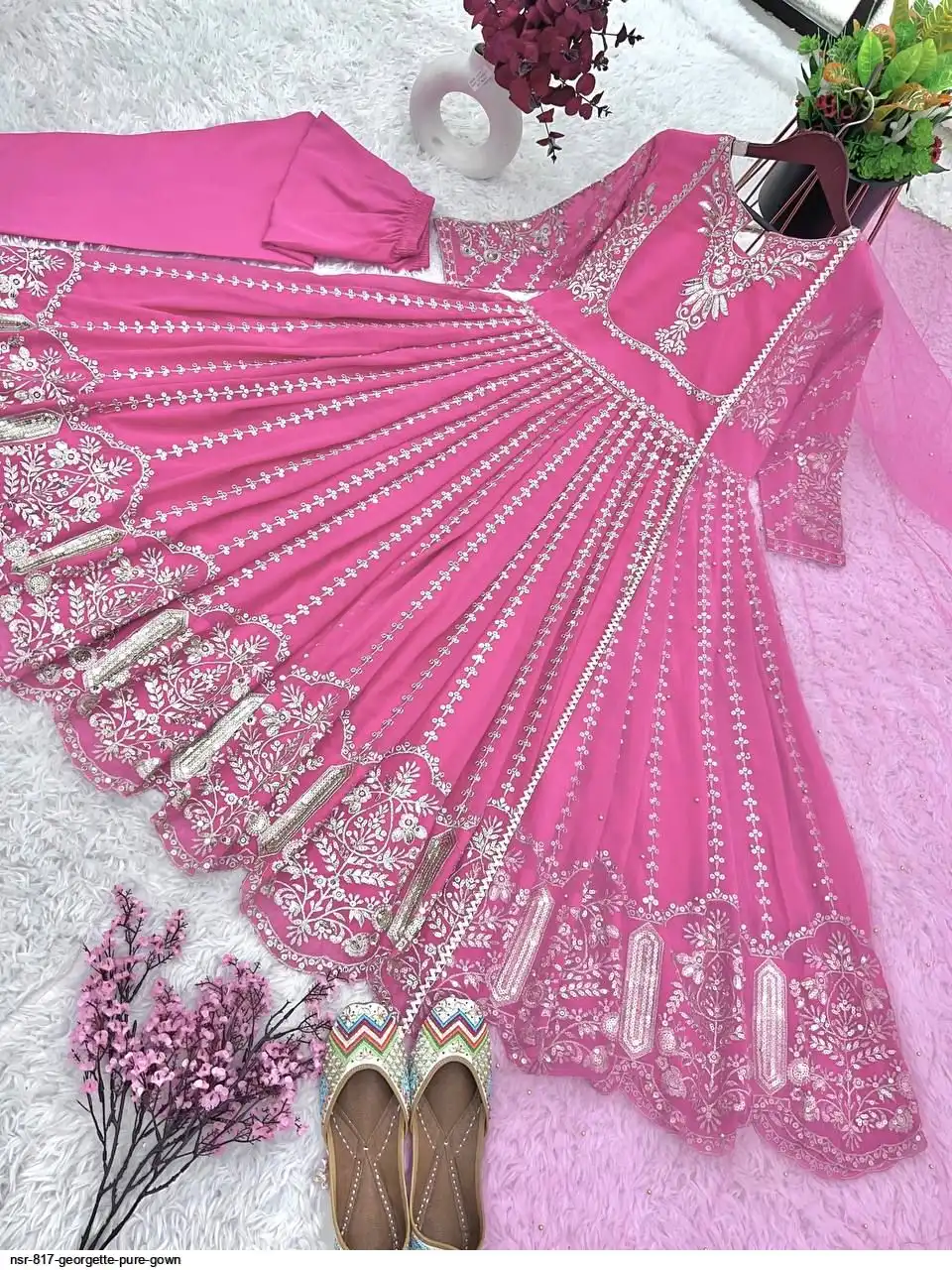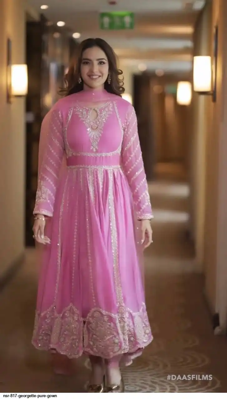 *Gown Fabric* :Faux Georgette With *Full Heavy Embroidery Sequence Work* with Sleeve*