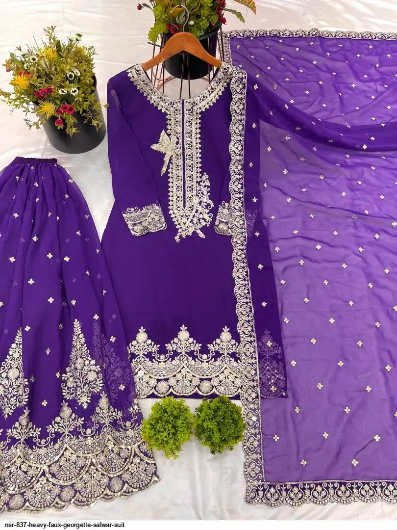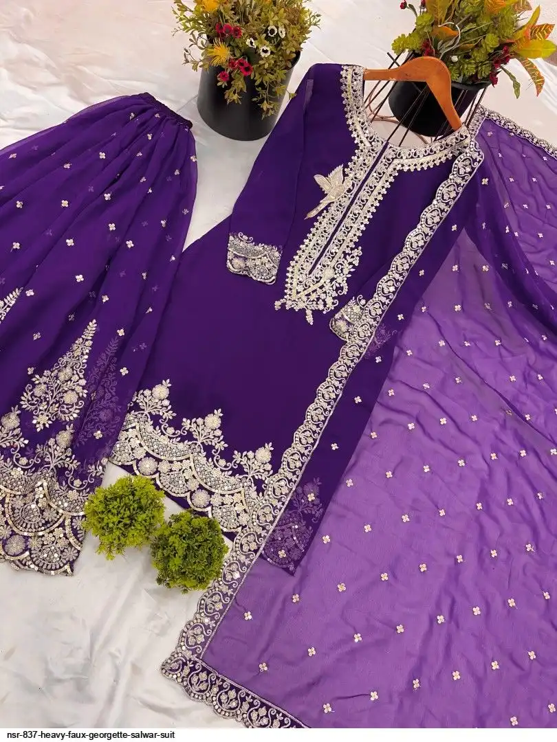 Top Fabric :Pure Heavy faux georgette With Embroidery And 5mm Sequence Work With Full Sleeves
