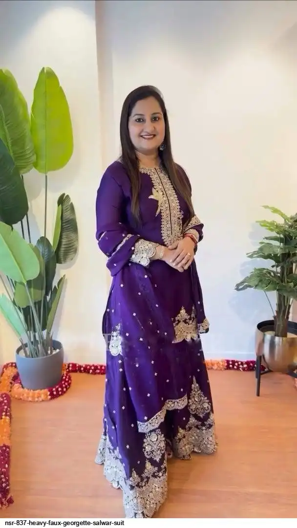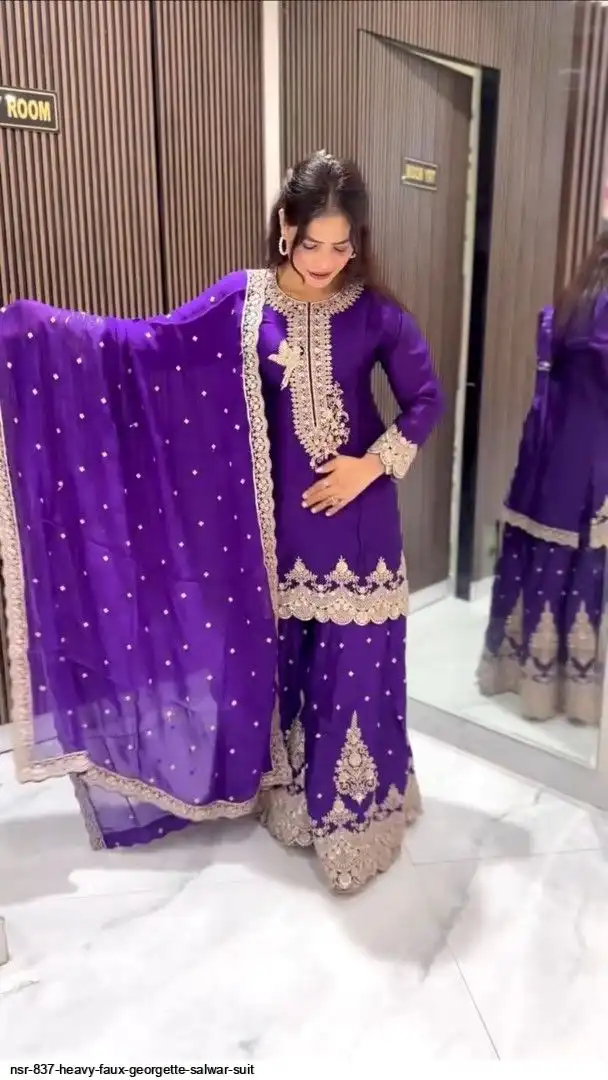 Sharara Plazo Fabrics : Heavy faux georgette With 5mm Embroidery Sequence Work With Fully Flair