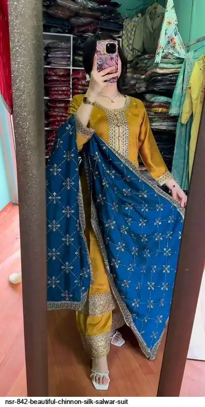 Presenting New Festival Collection In Chinnon And Heavy Embroidery Sequence Work Top-Bottom And Dupatta Set Fully Stitched Ready To Wear