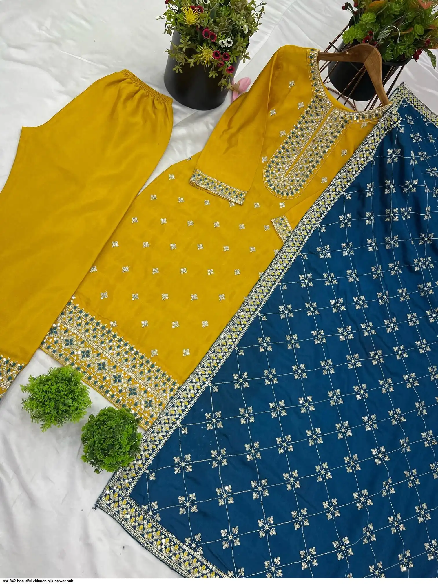NSR 842 BEAUTIFUL CHINNON SILK SALWAR SUIT B