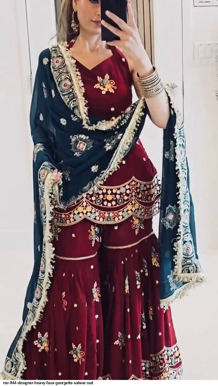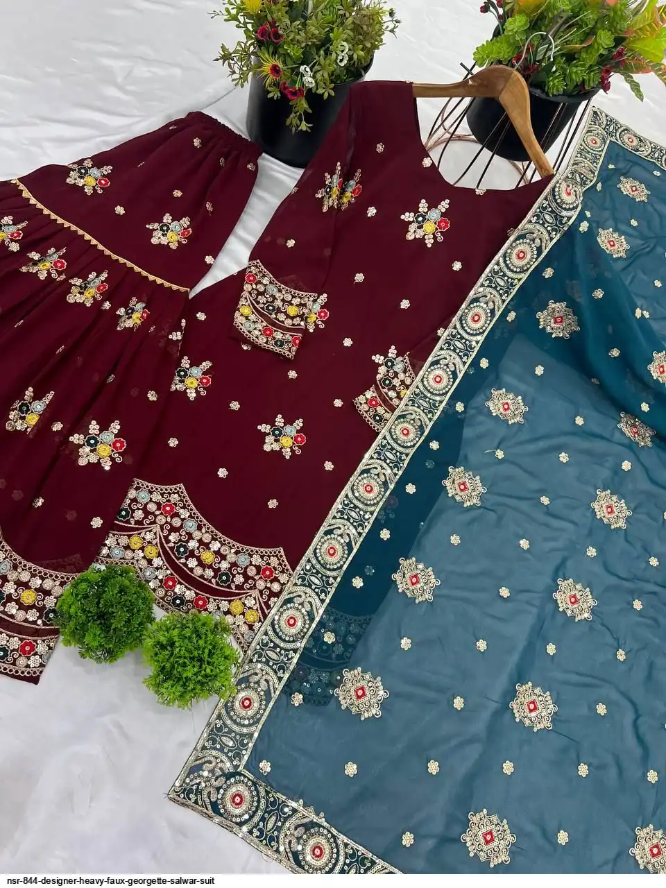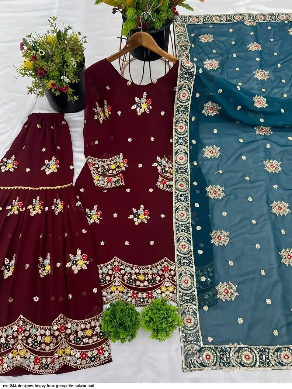 Plazzo Fabrics* :Heavy Faux Georgette With 5mm Embroidery Sequence With Fully Flair